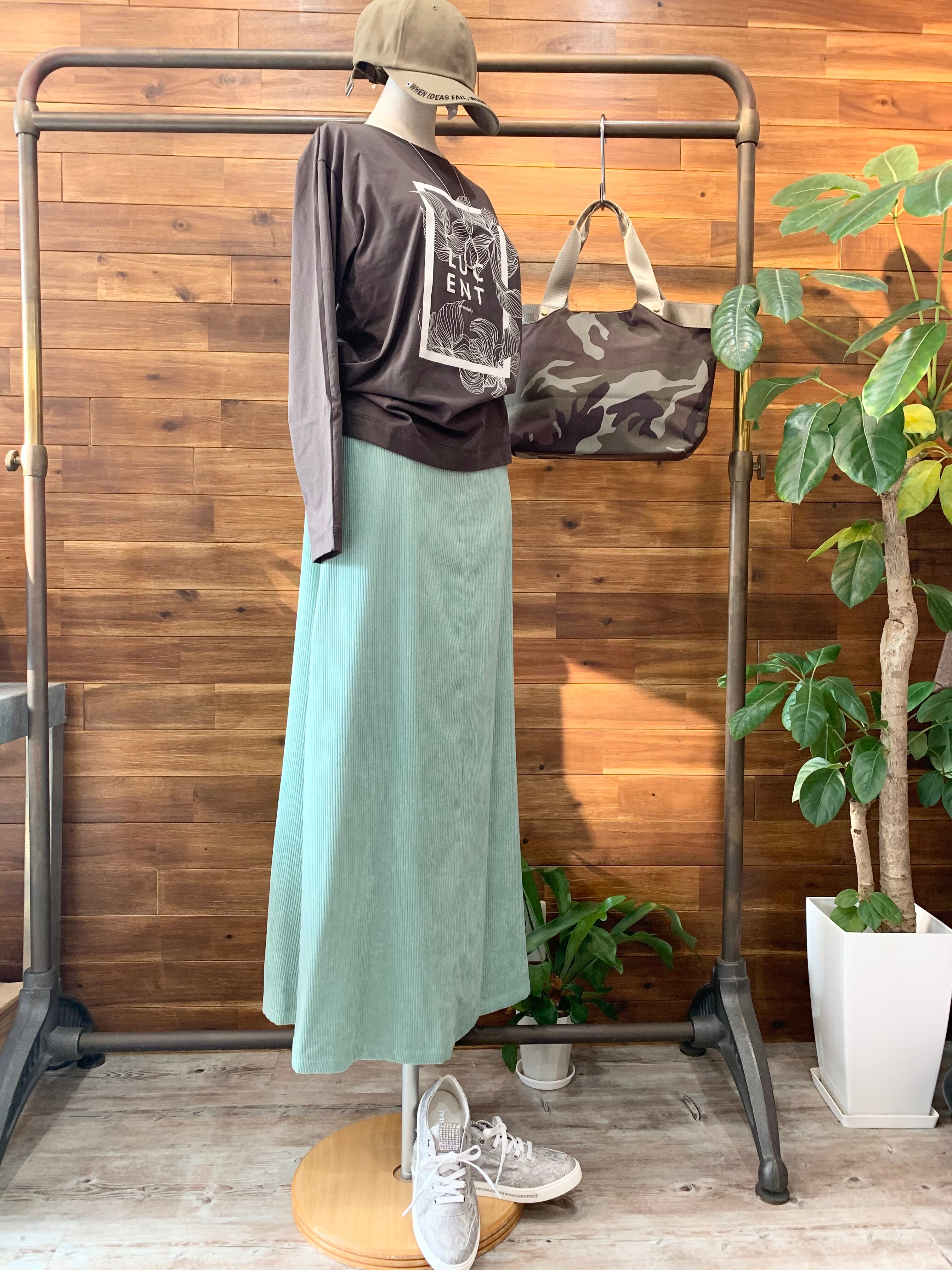 薄手で柔らかな細畝のコーデュロイのマキシスカート♫