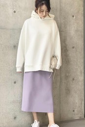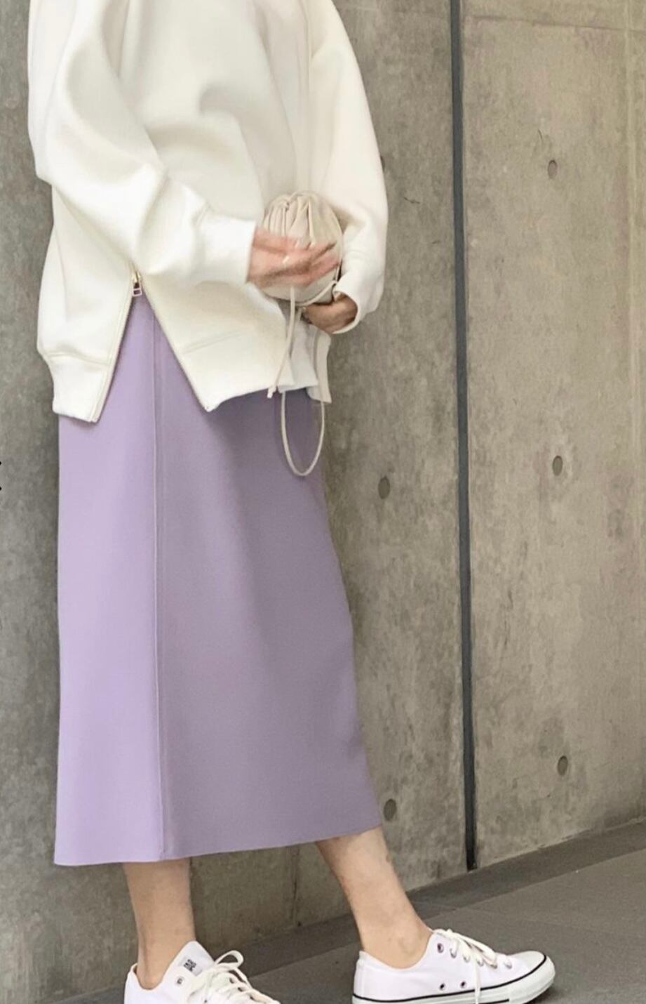 パンプスやブーツ合わせでキレイ目に、スニーカー合わせでカジュアルにと、シンプルなデザインなので、着回し力抜群のオススメスカートです‼︎