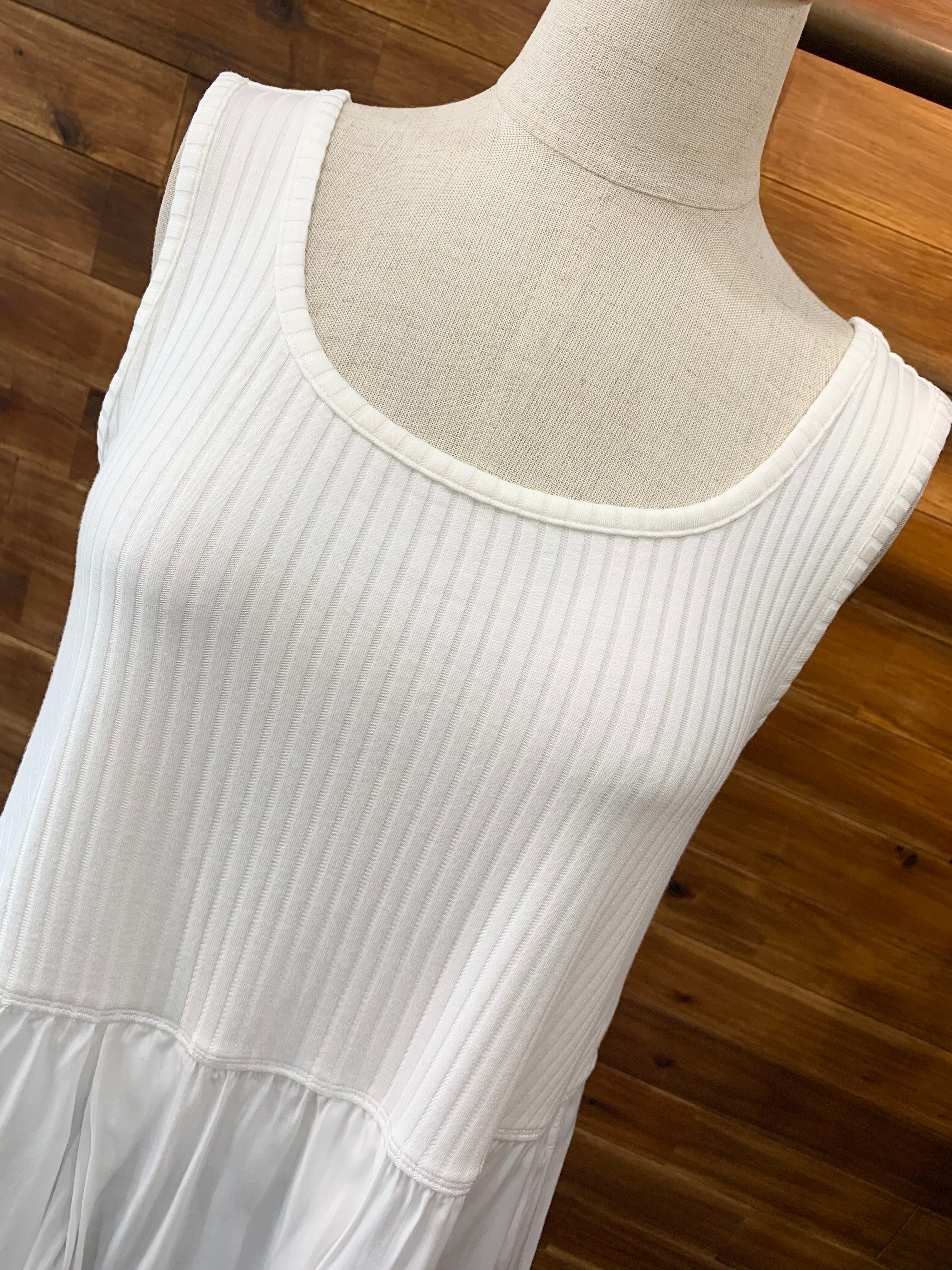とっても柔らかなリブ風タンクトップに、しなやかなレーヨン×ポリエステルの布帛が切り替えになったインナータンク♪