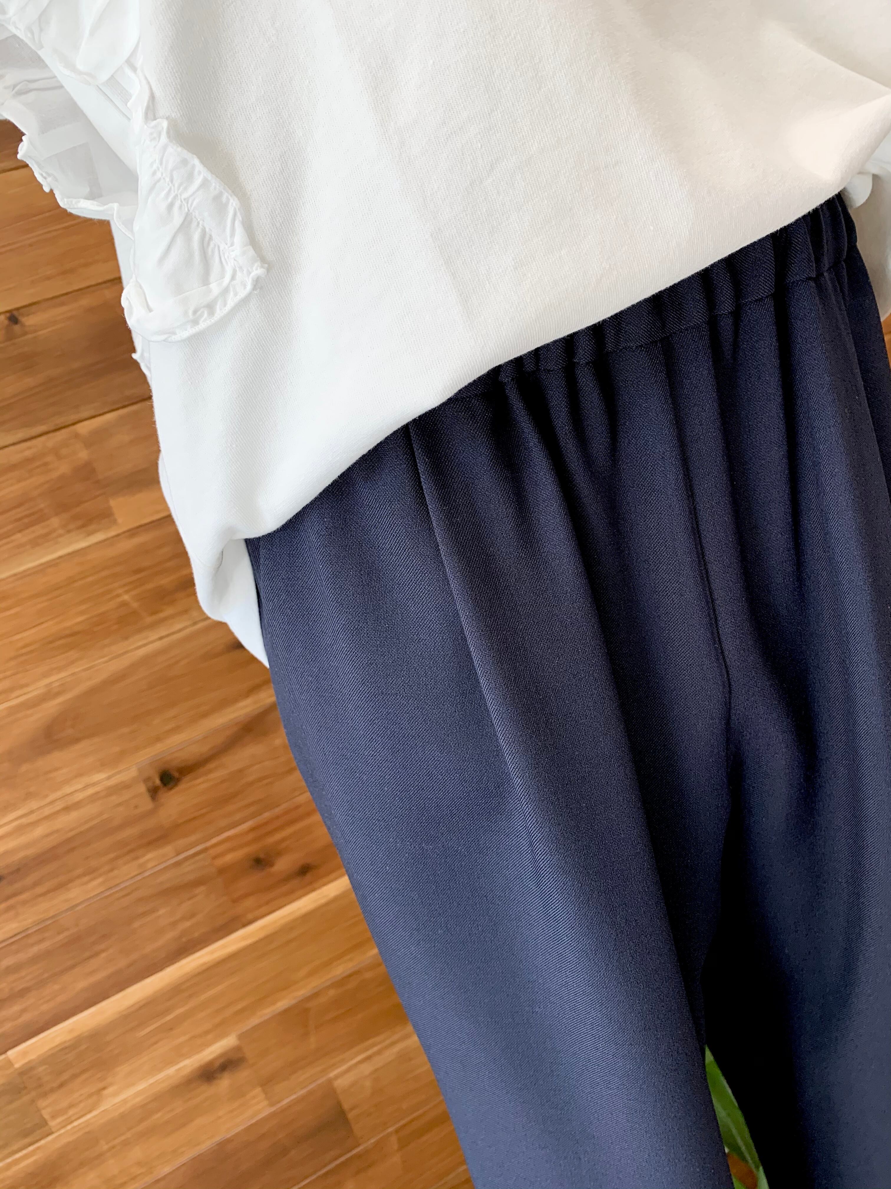 ウエストタックでゆったり感がありながらテーパードのシルエットがすっきりと見えます。