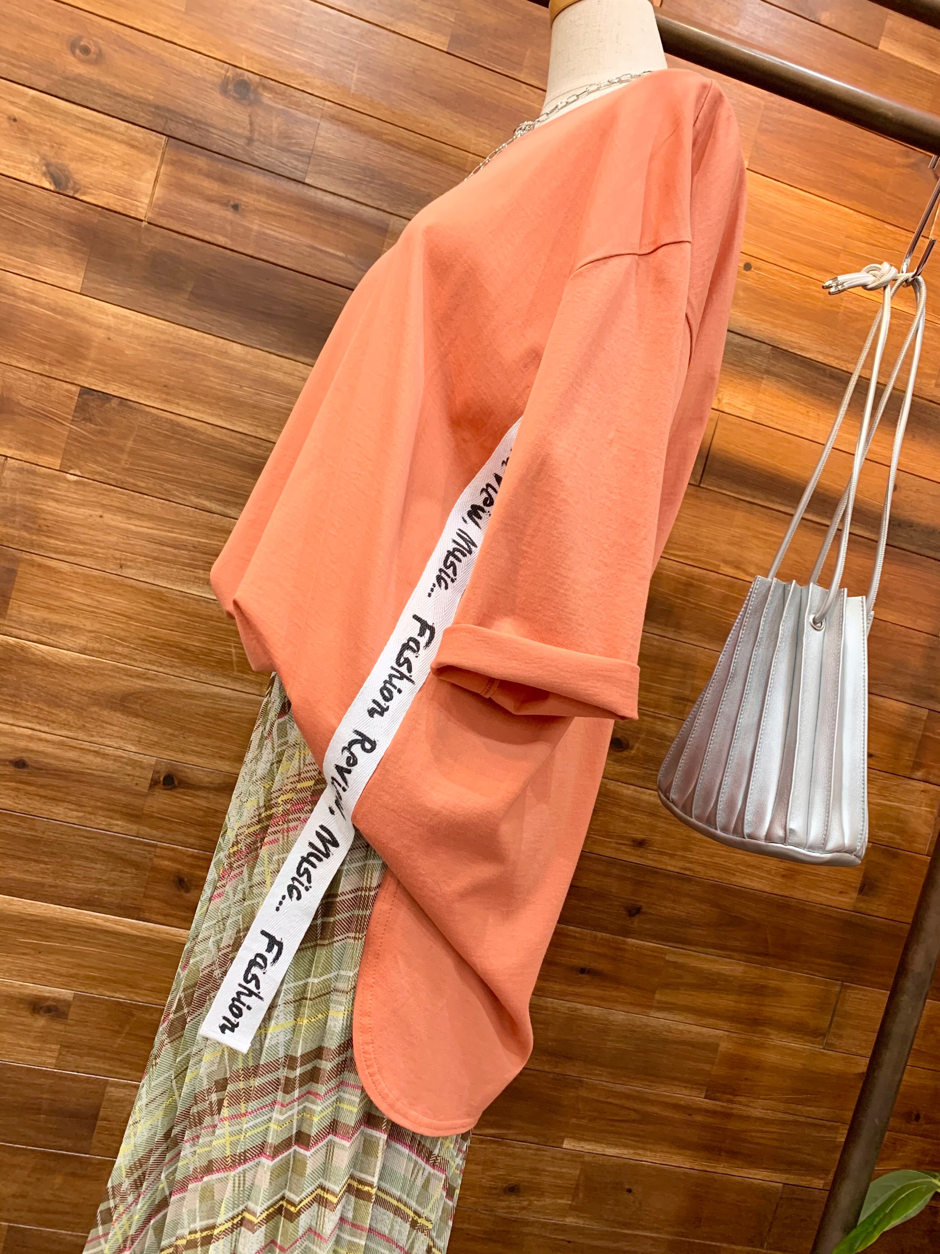 少し前後差のあるラウンドした裾のデザインに、サイドテープの下はフラしになってますので、インして着ても、違った雰囲気を楽しめます♡