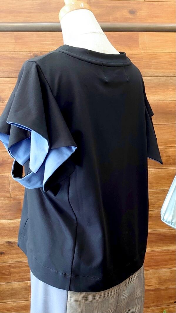 チラッと覗くバイカラーが可愛い、フリル袖がポイントのカットソー♪
