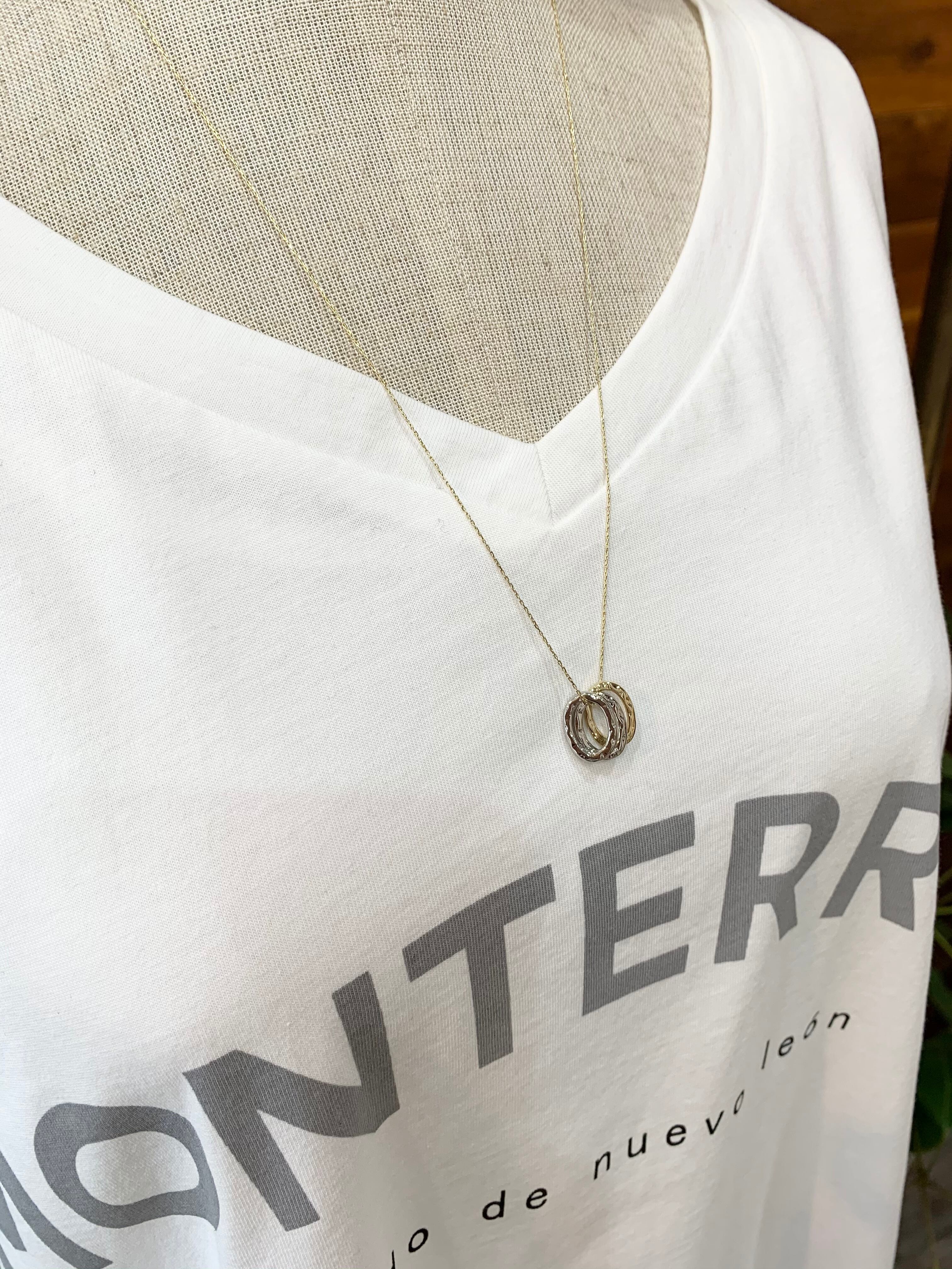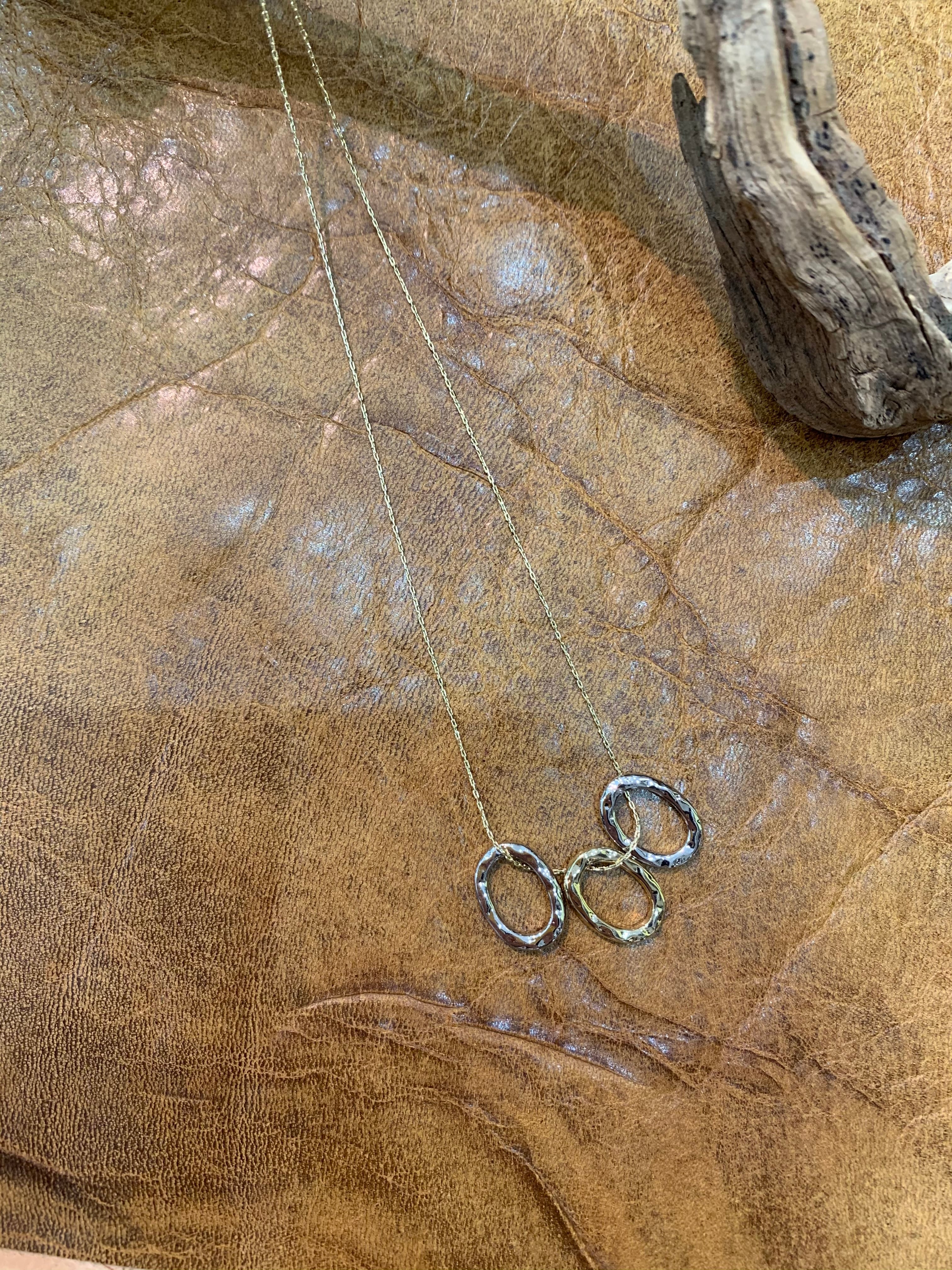 ゴールドチェーンに、シルバーリングが2つ、ゴールドリング1つのトップが可愛いネックレス☆