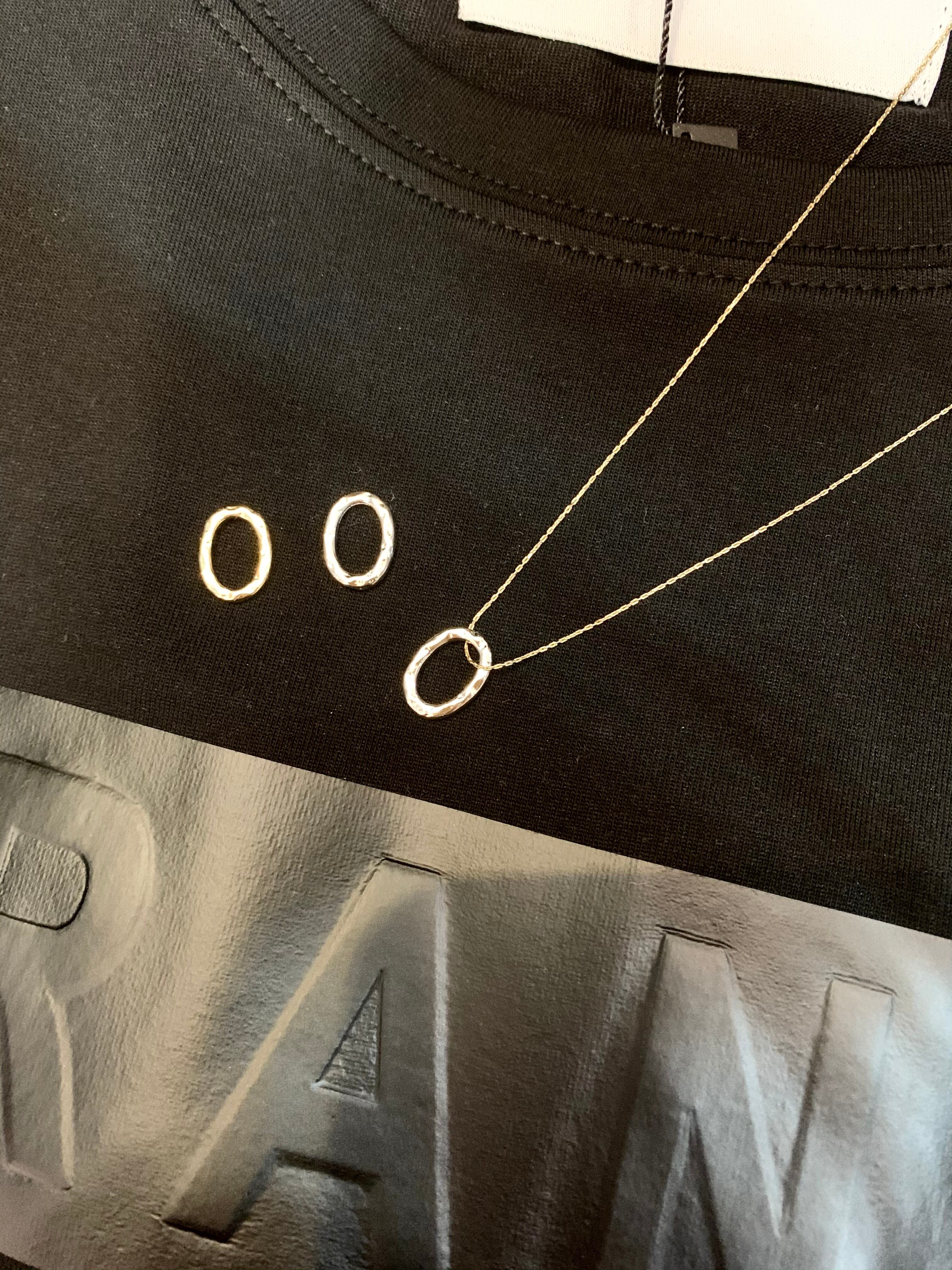 肌になじみやすいゴールドの華奢なチェーンが上品で女性らしく、トップのリングは表面に凹凸のある質感で、小ぶりながら存在感とトレンド感がたっぷりなデザインです♡