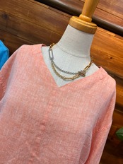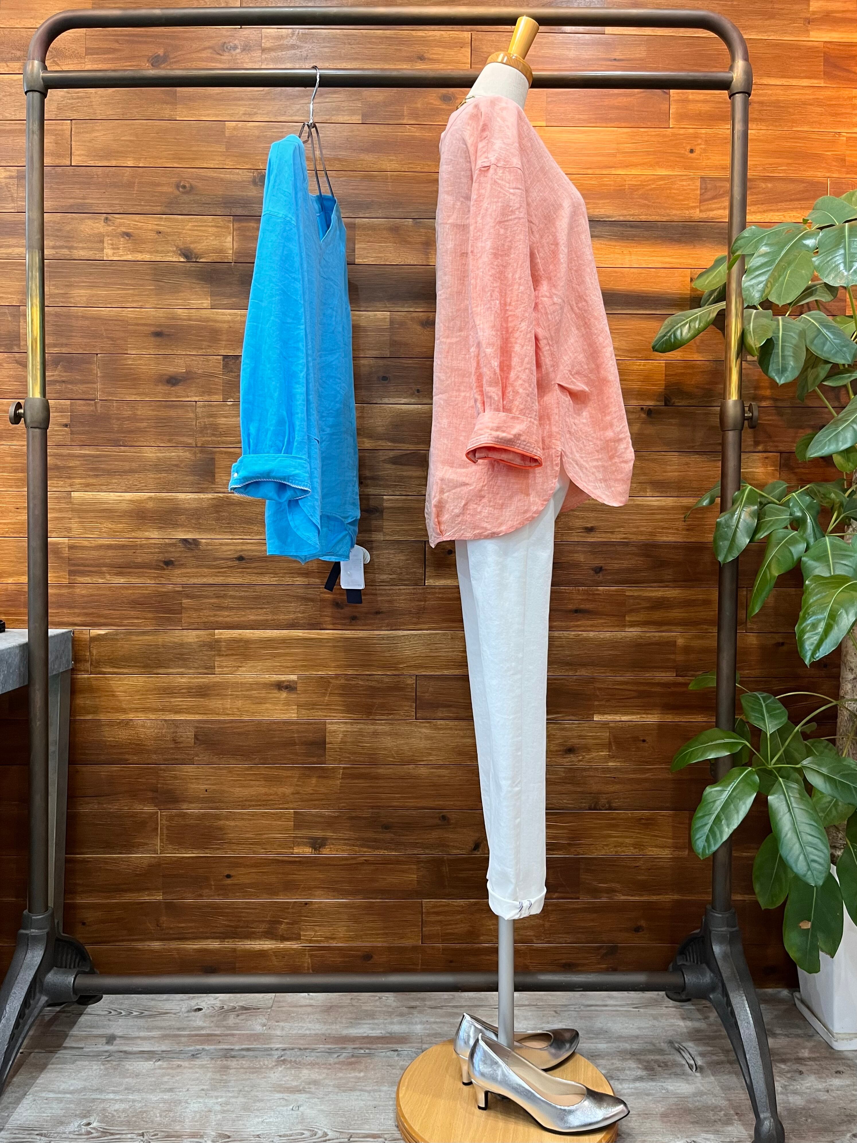 素材はフレンチリネン100%、シャリ感と柔らかさを合わせ持つ最上級の生地で、着るほどに肌に馴染むのが特徴です♪