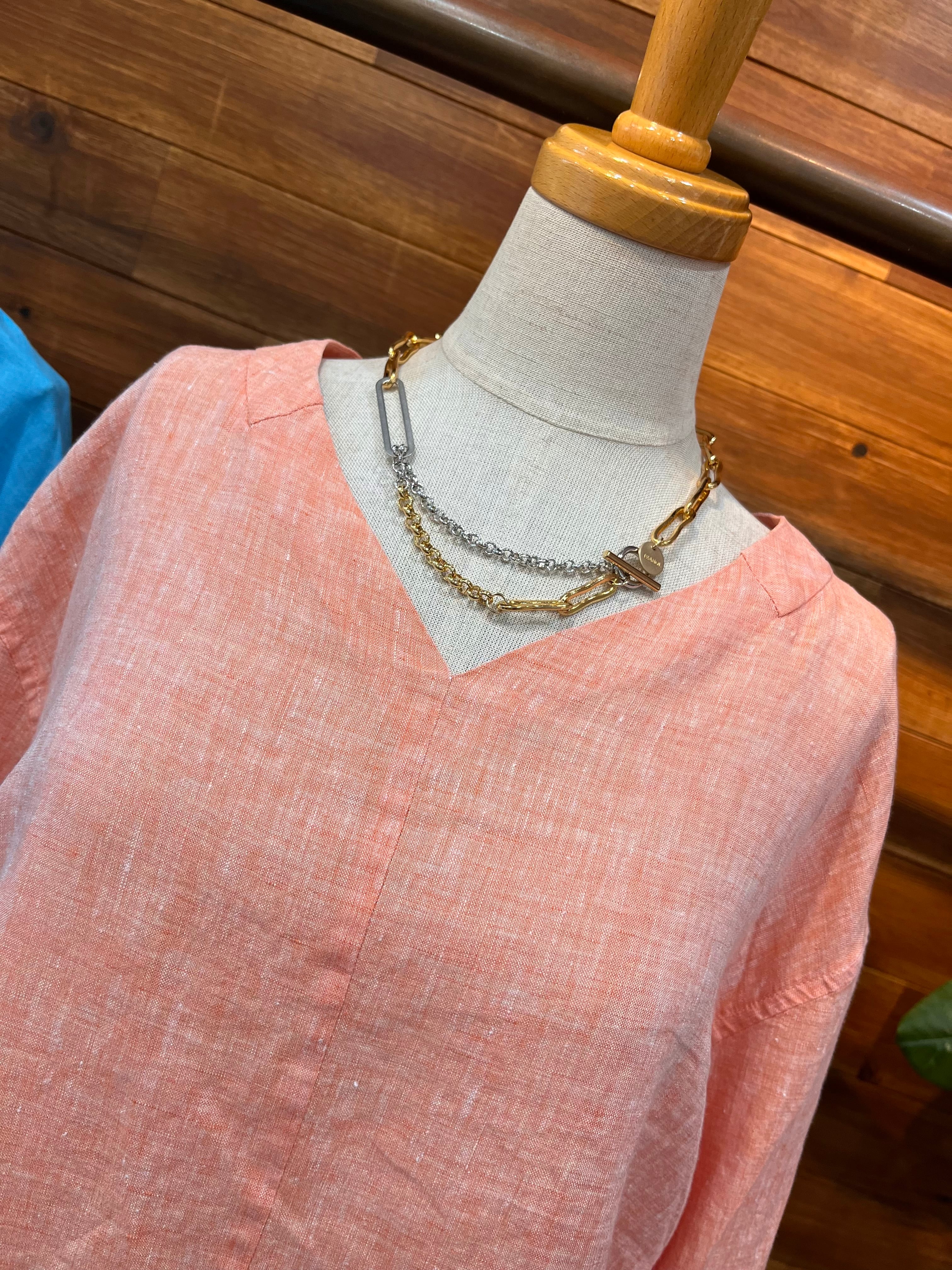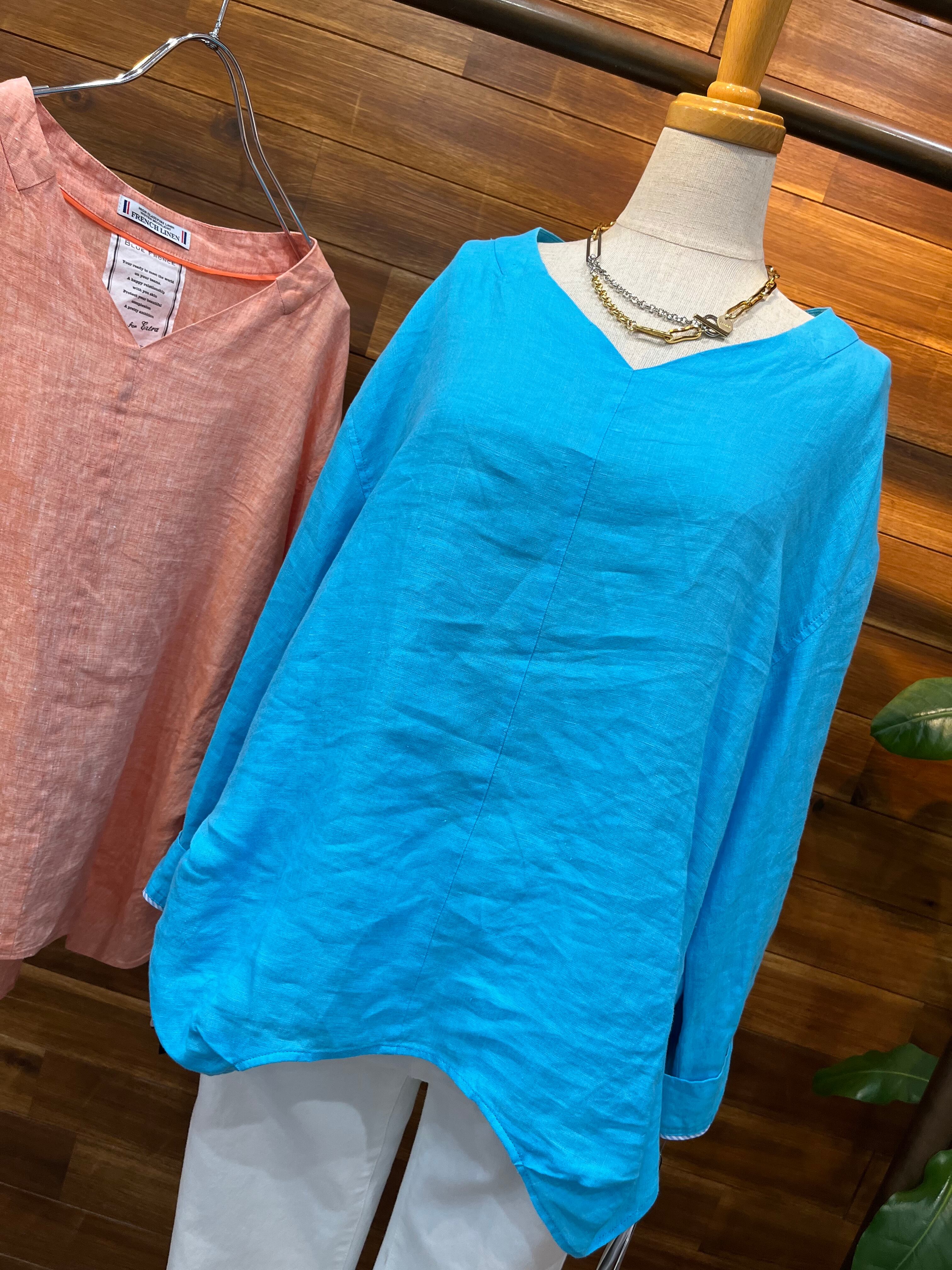 フレンチリネンのサラッとした着心地と、細部にまでこだわったデザインが、大人好みのVネックシャツ♡