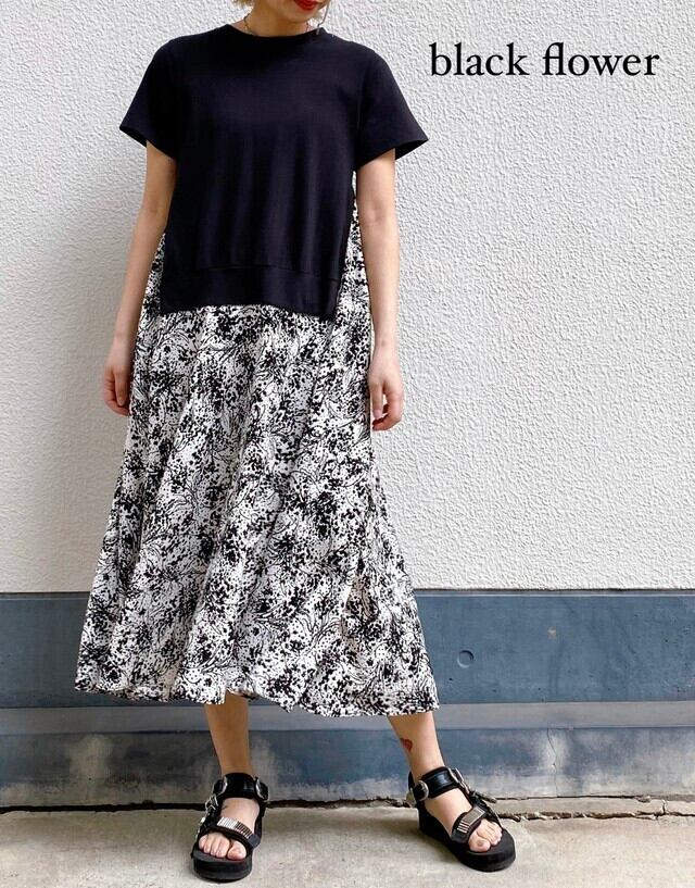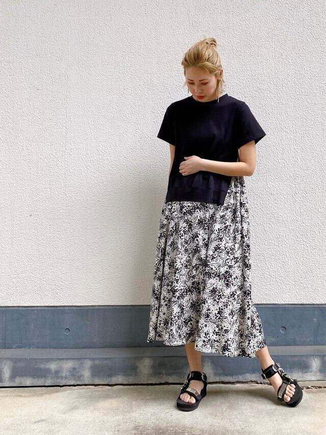 プリント柄のスカート部分は、サラッとしたとっても軽い素材感で、歩く度に揺らいで綺麗です!