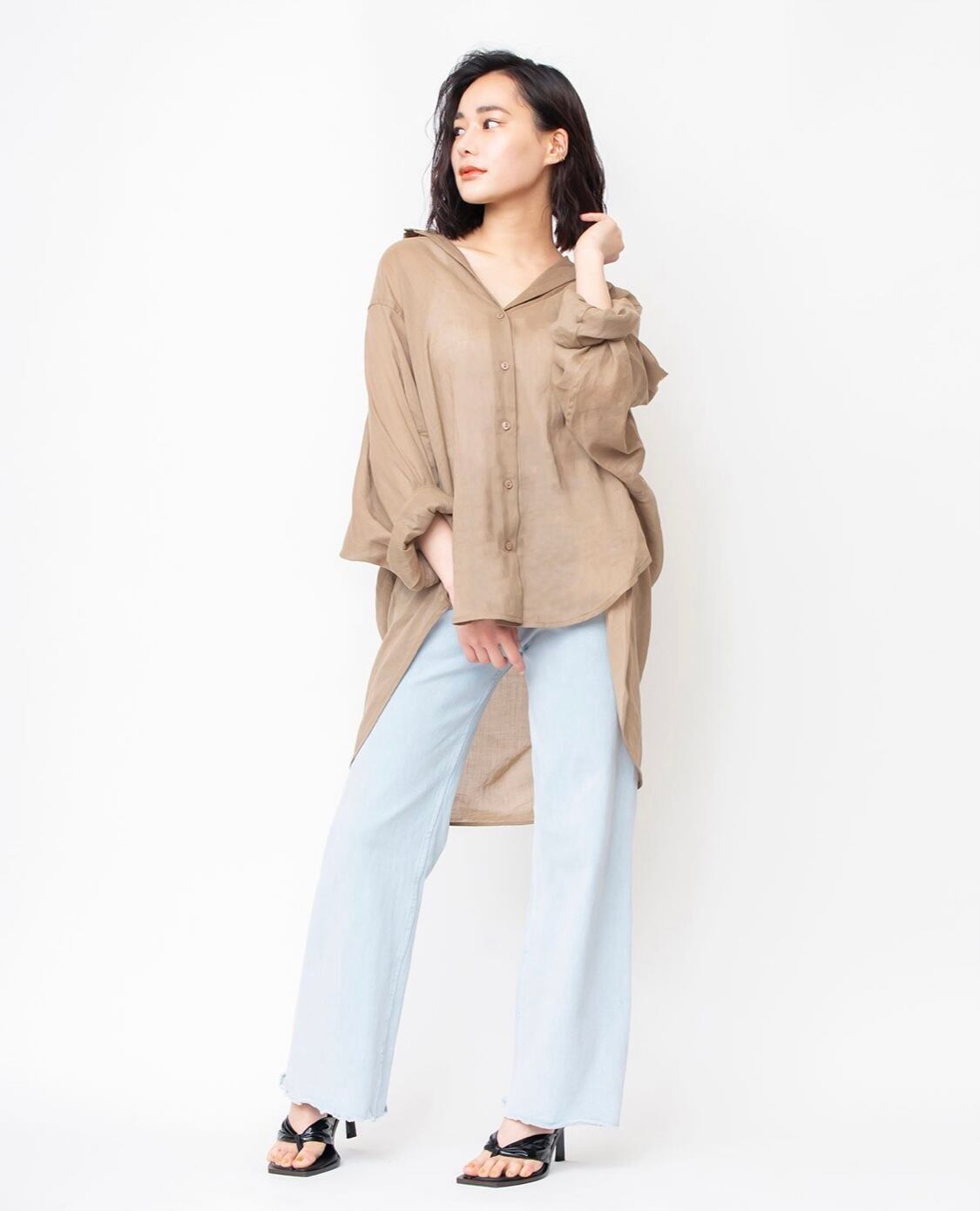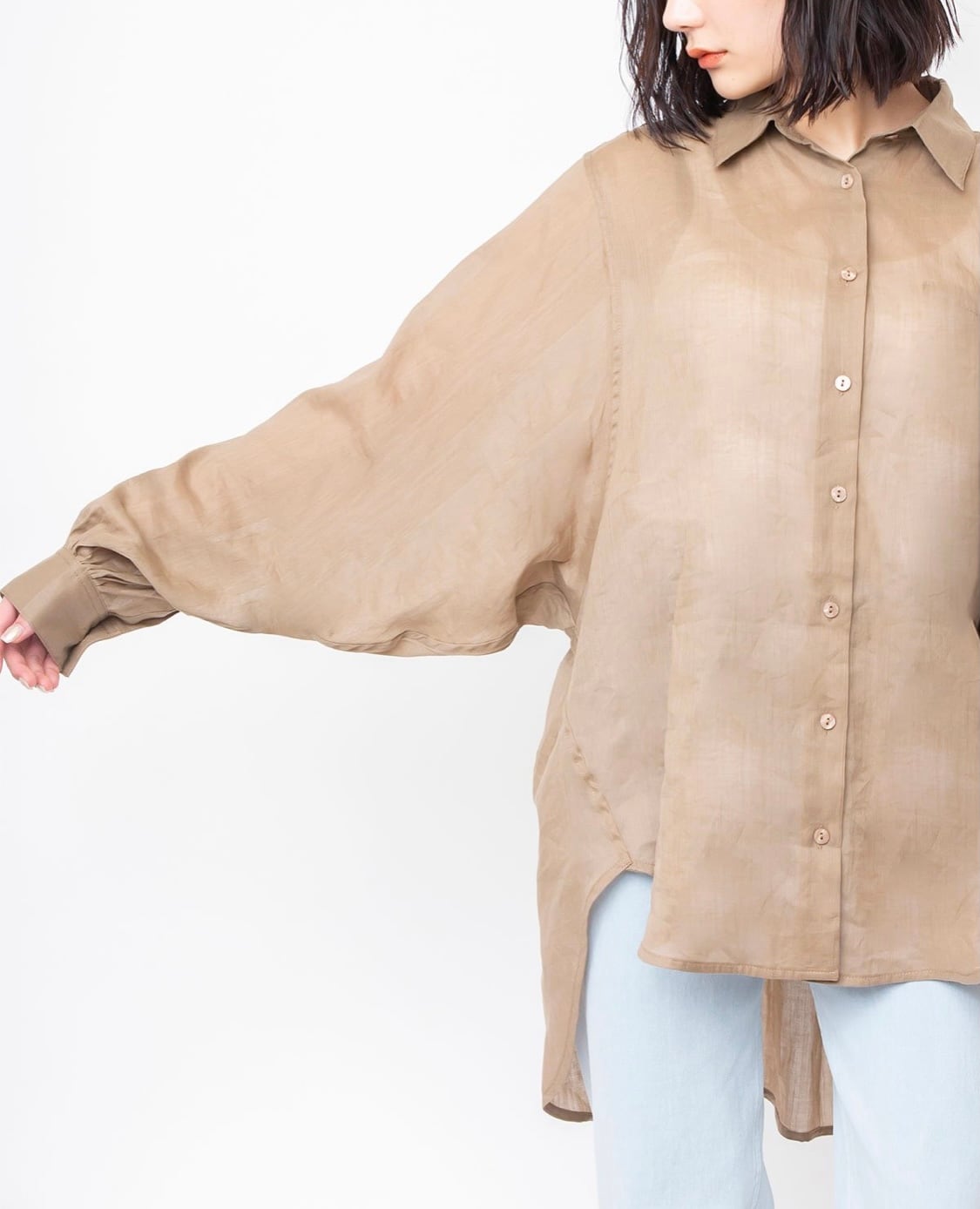 透け感のあるオーバーサイズシャツは、