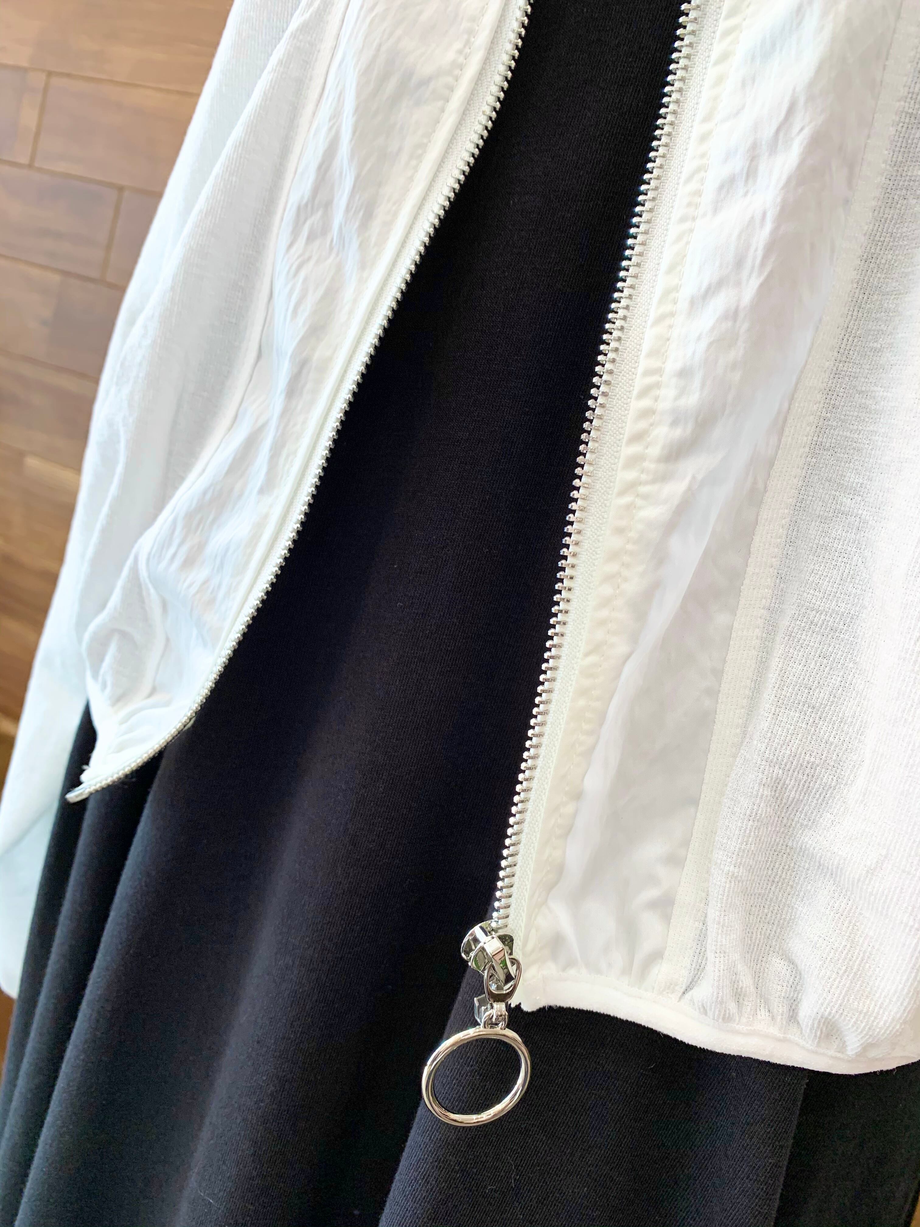 パーカー部分のスピンドルやリングファスナー、 そして生地の切り替えと、とても丁寧な作りです。