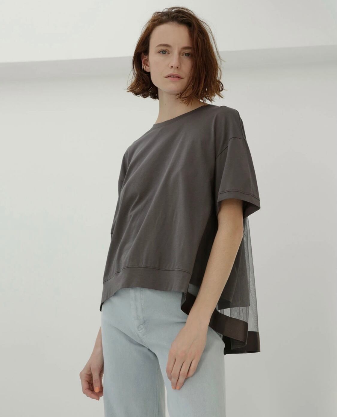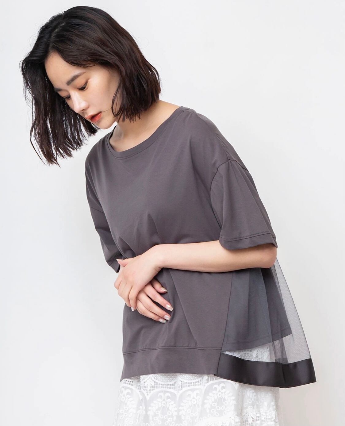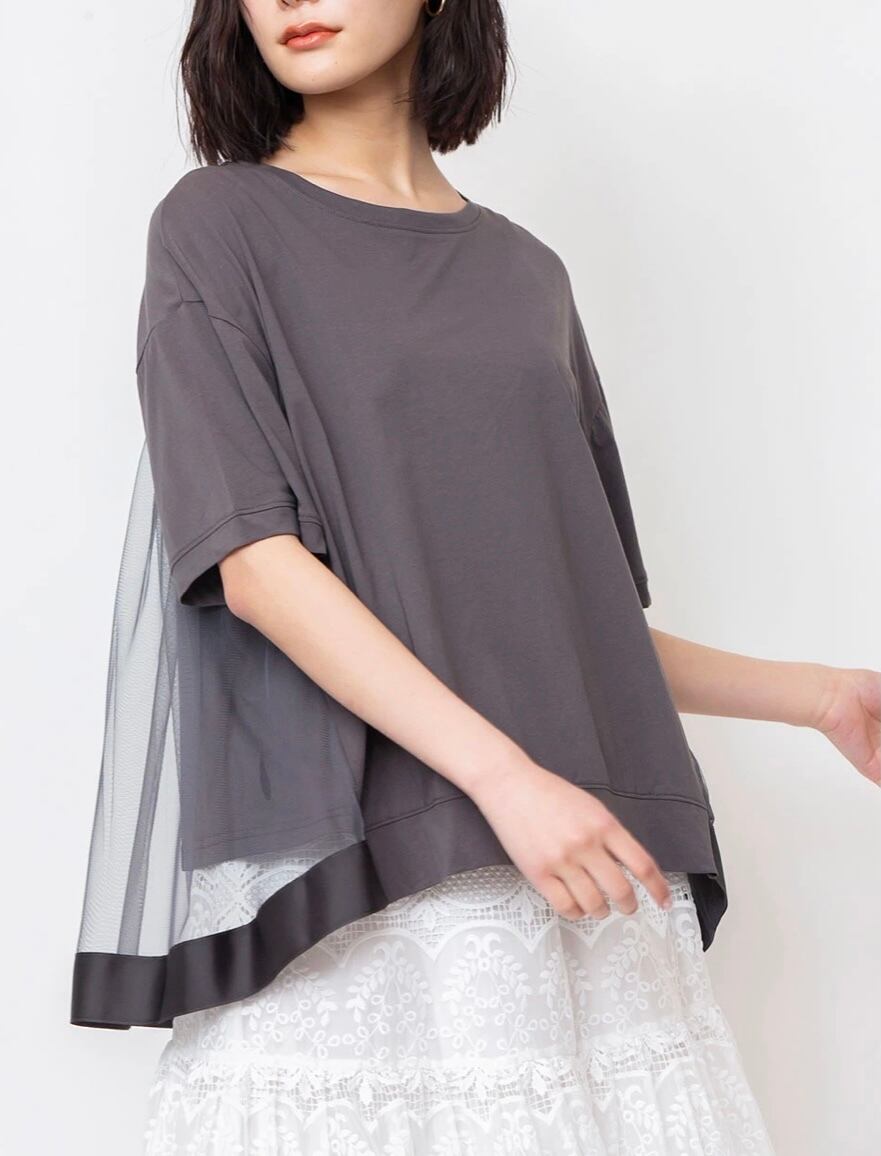バックギャザーチュールカットソー