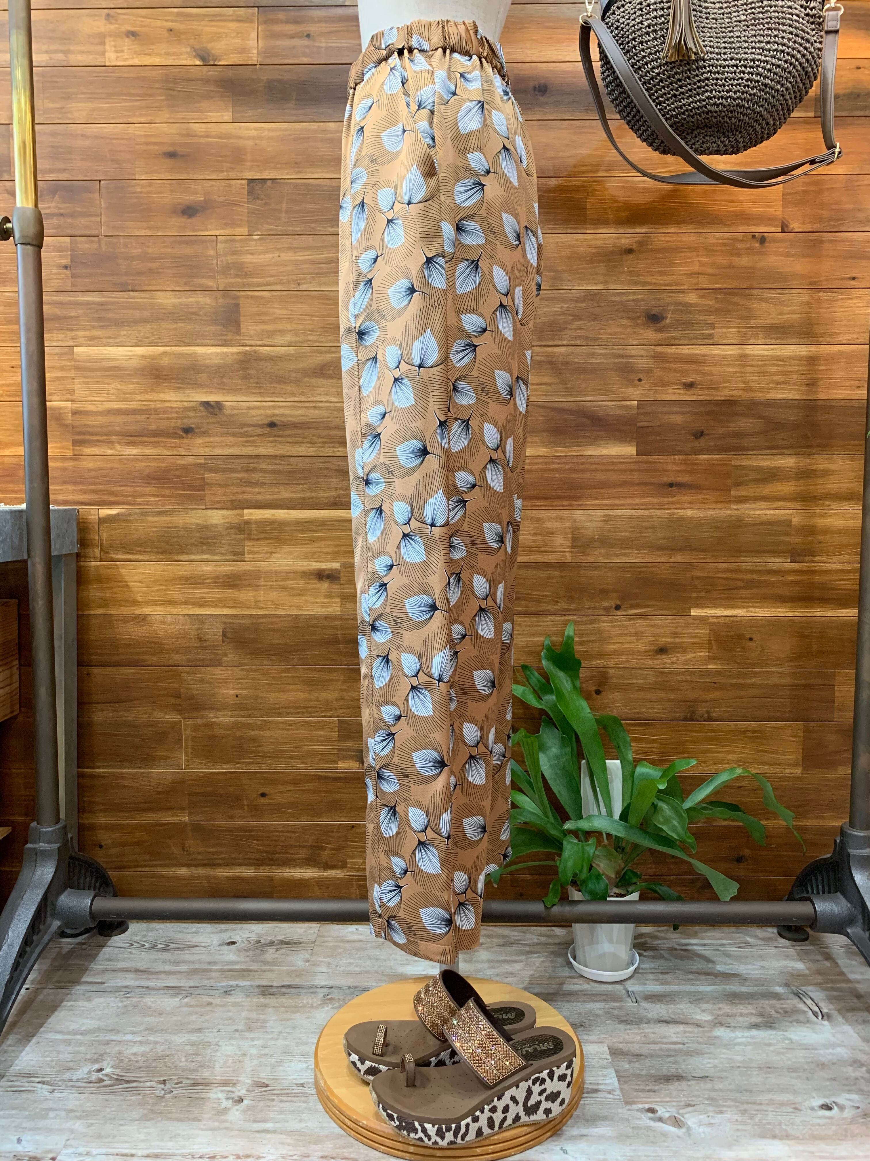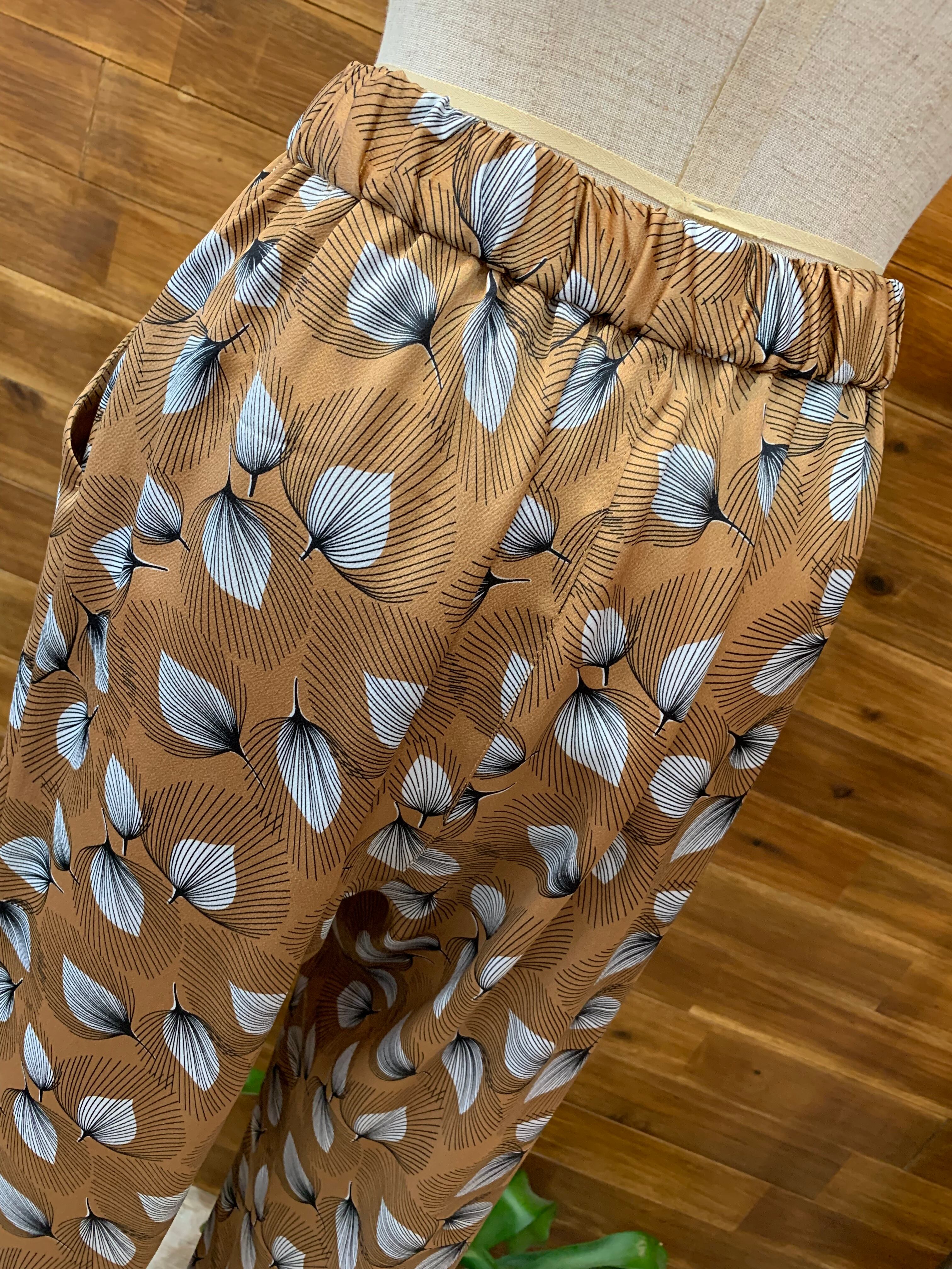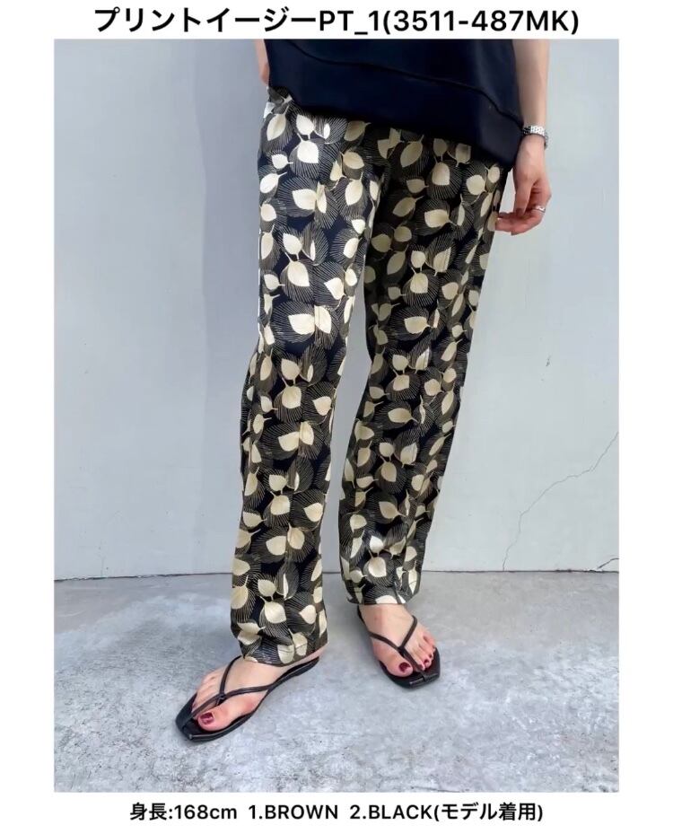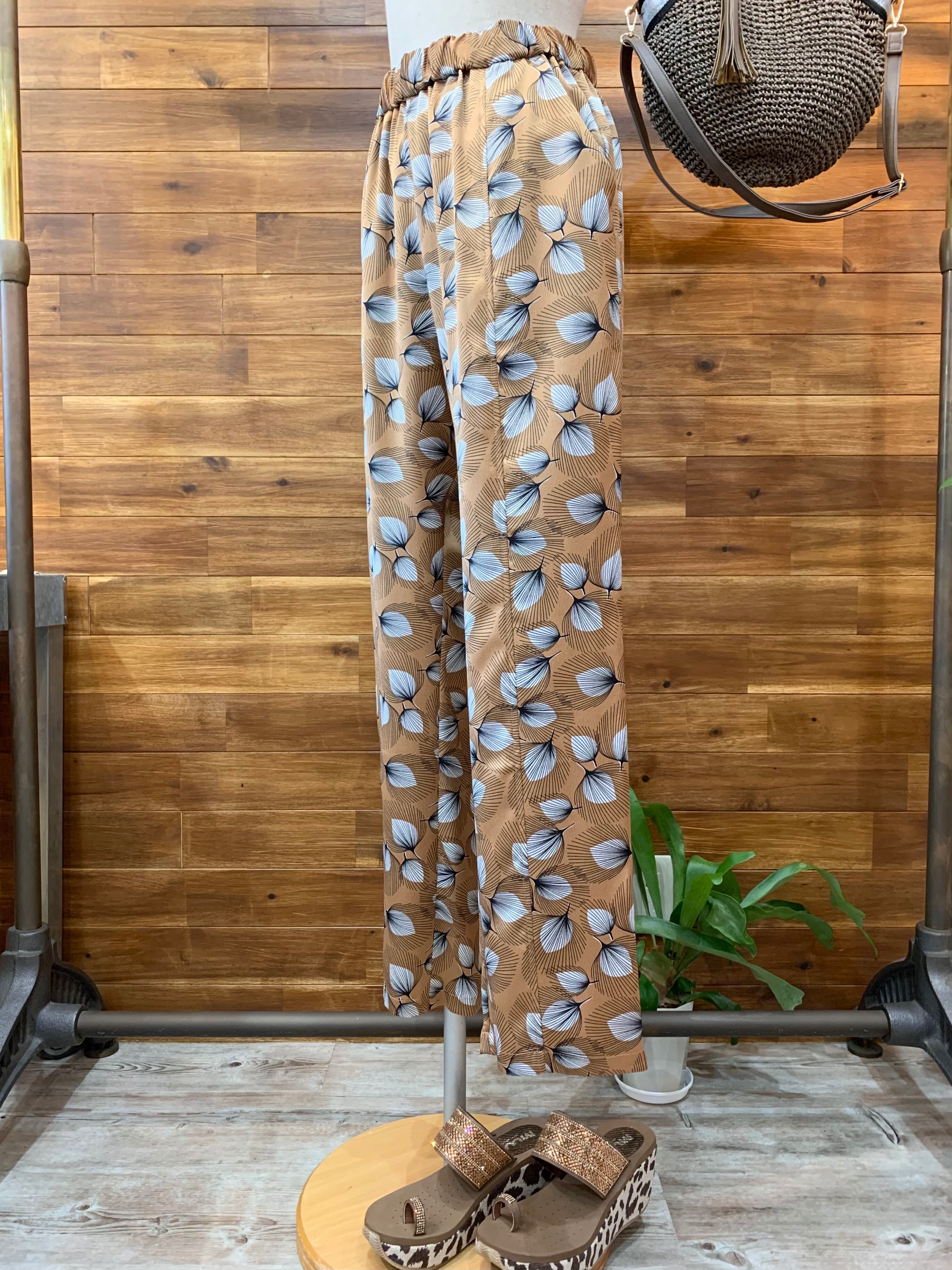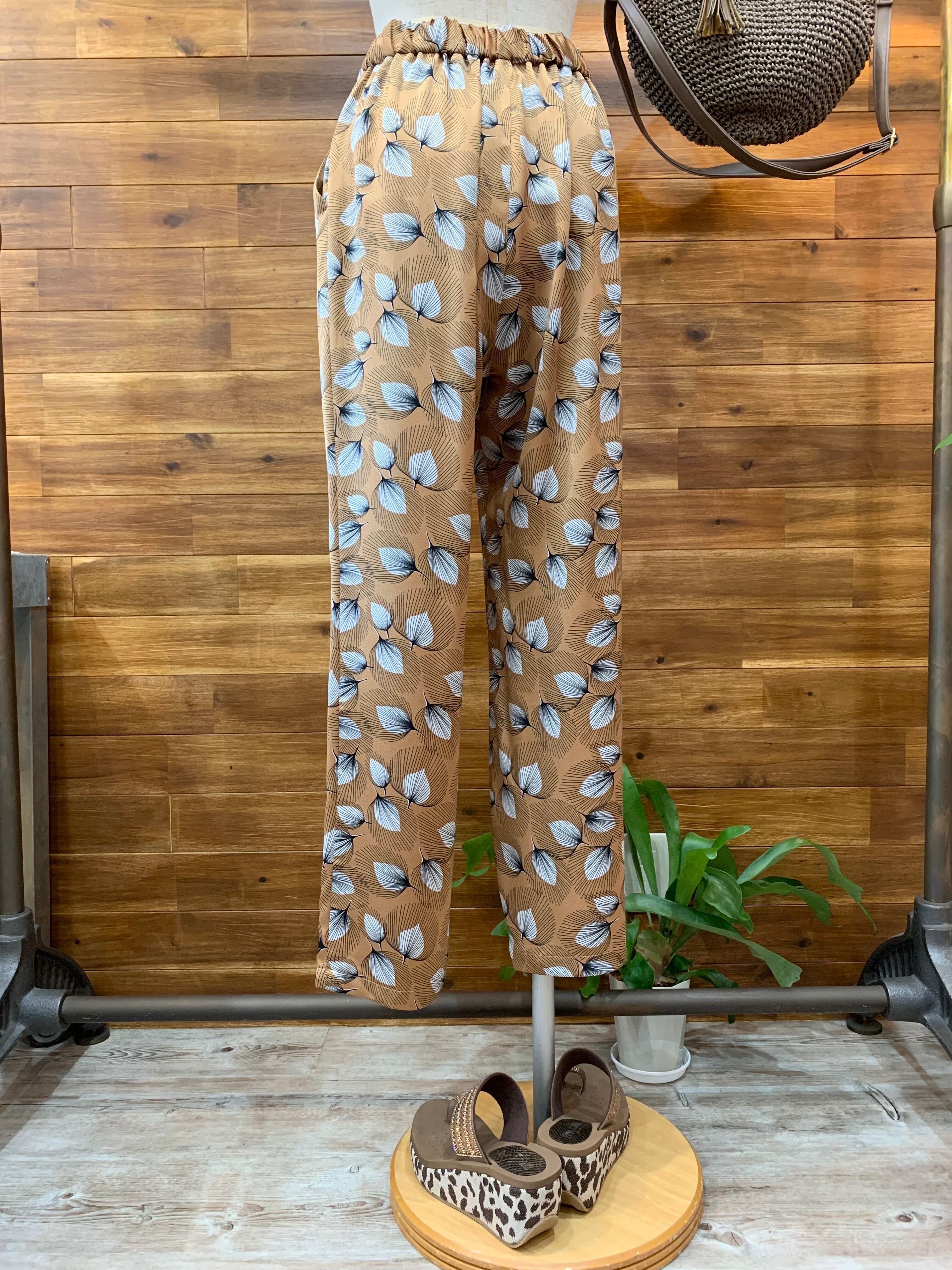 フェザー柄 プリントイージーパンツ