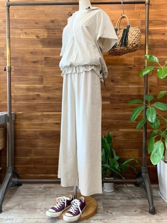 麻55% 綿45% の柔らかくてとっても涼しい素材、さらりとした履き心地でこれからのシーズン大活躍間違いなしです◎