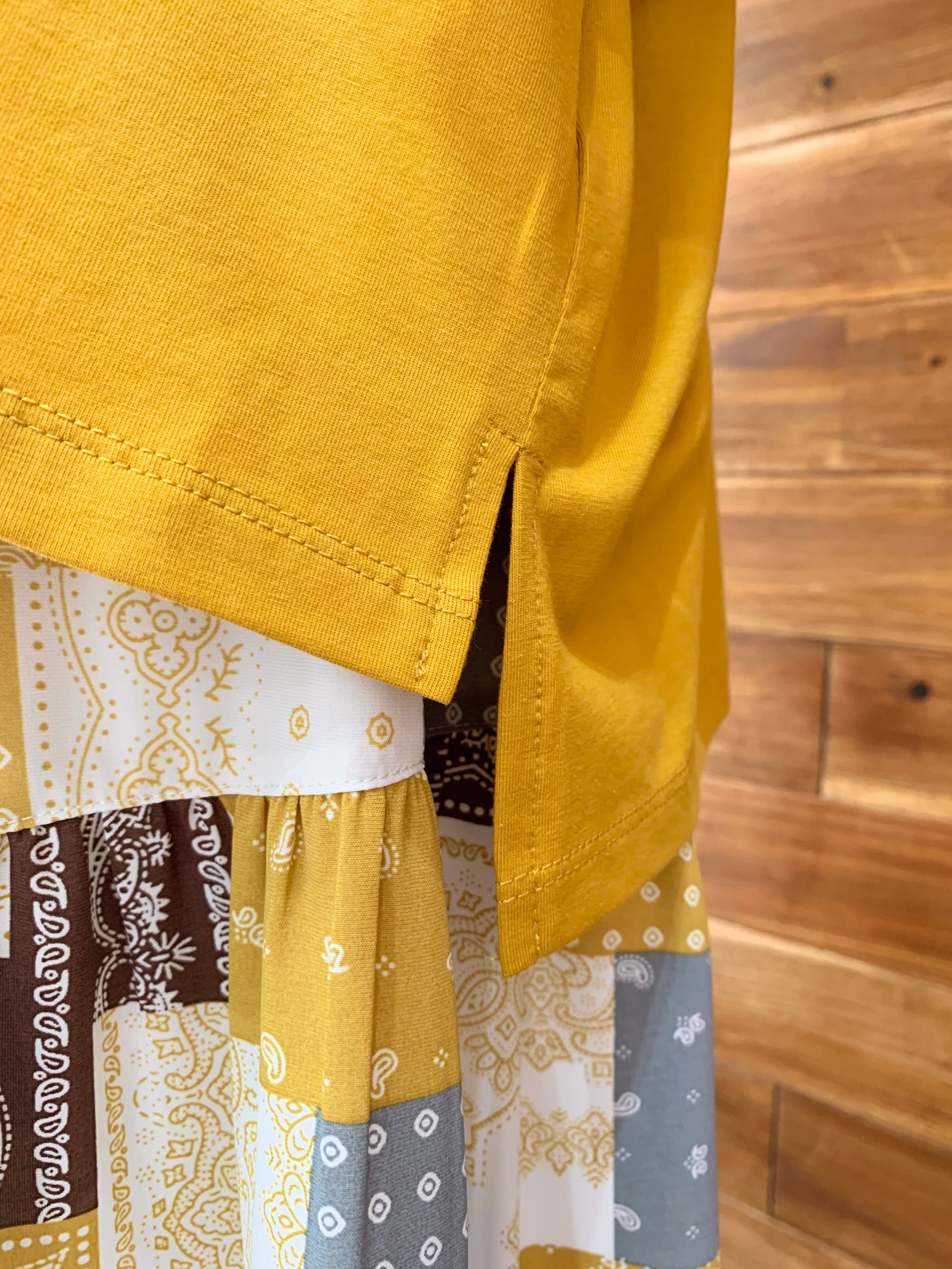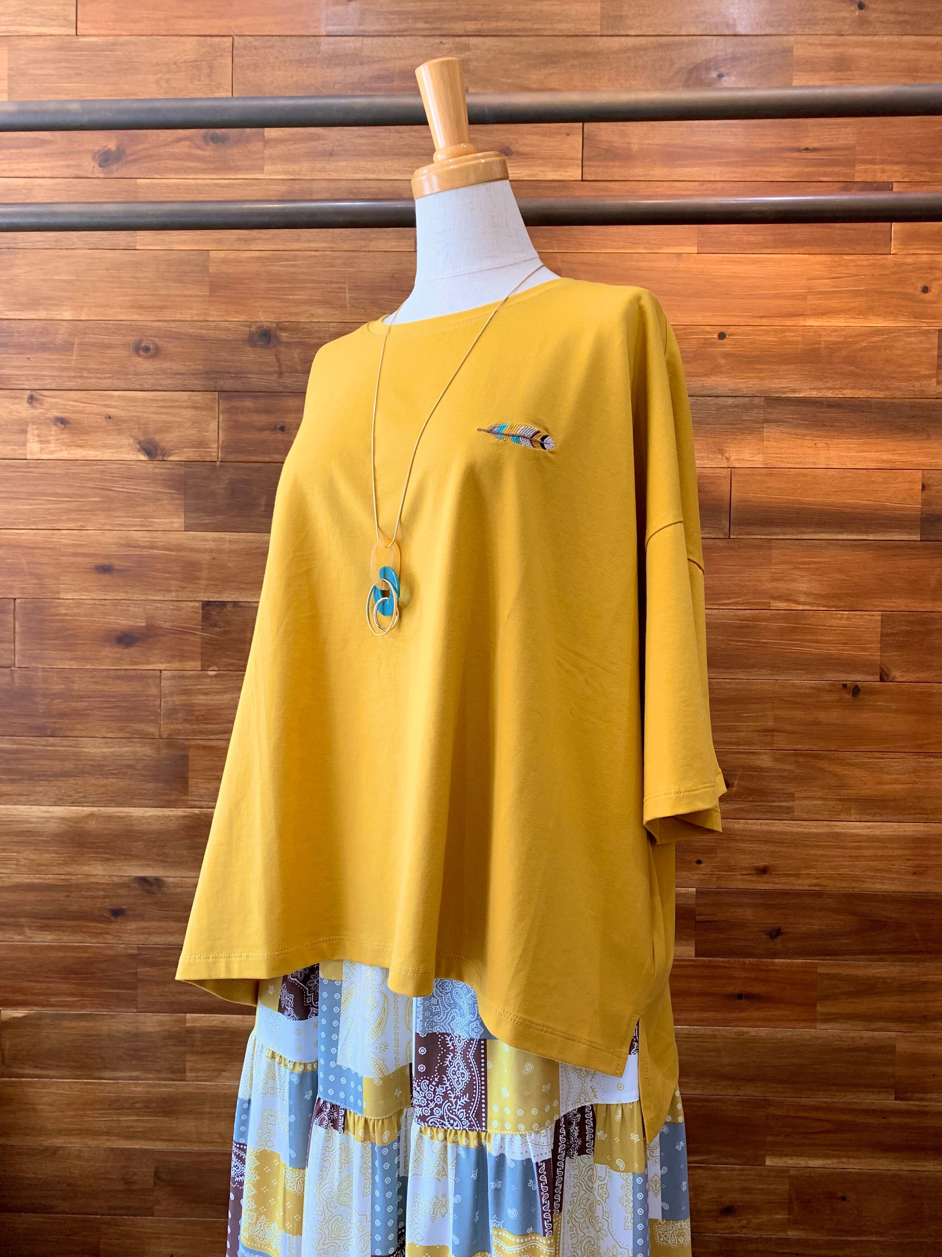 ゆったりとした着心地がGOOD!ドロップショルダーで袖の長さは肘までの丈になっております。