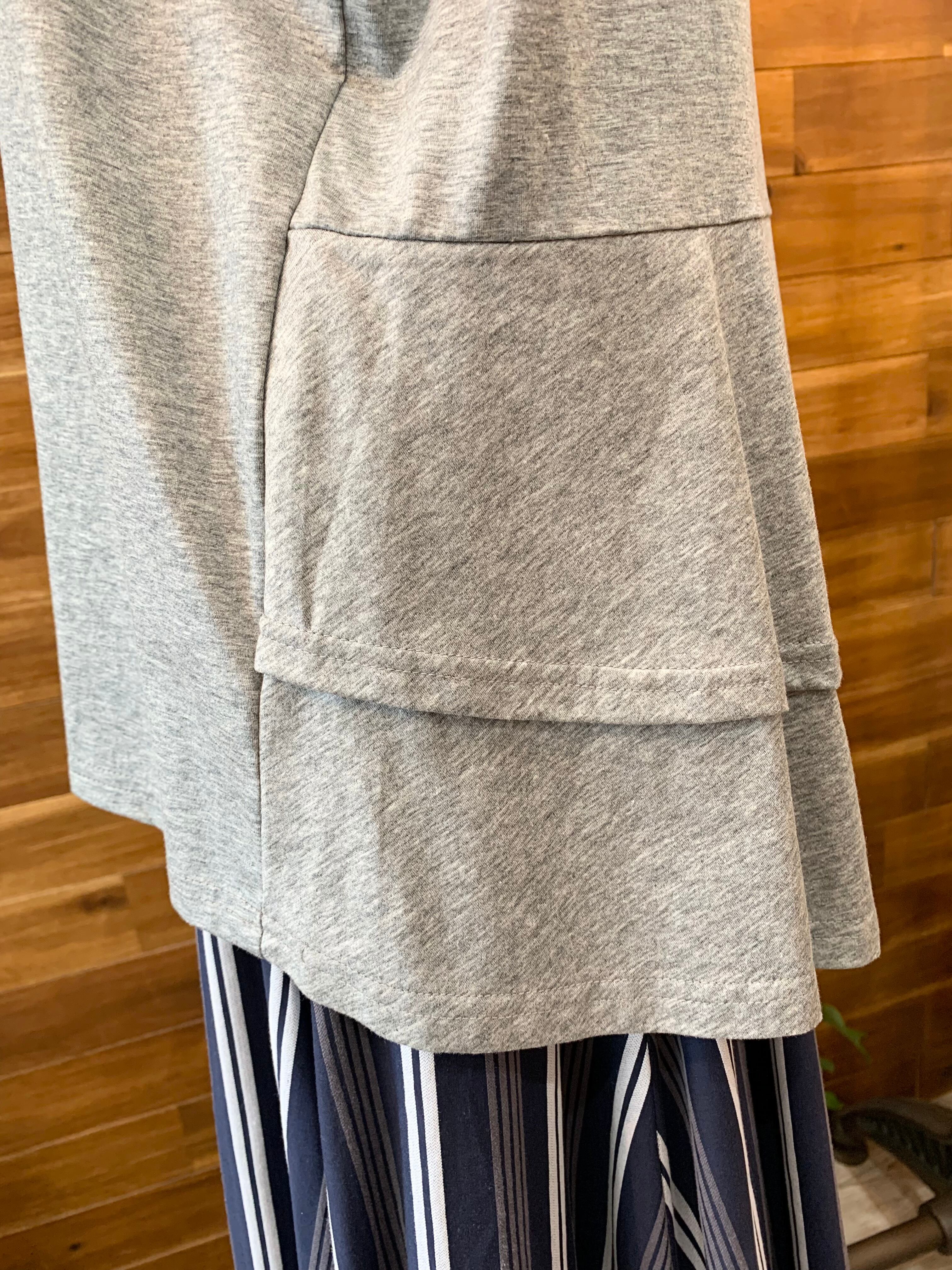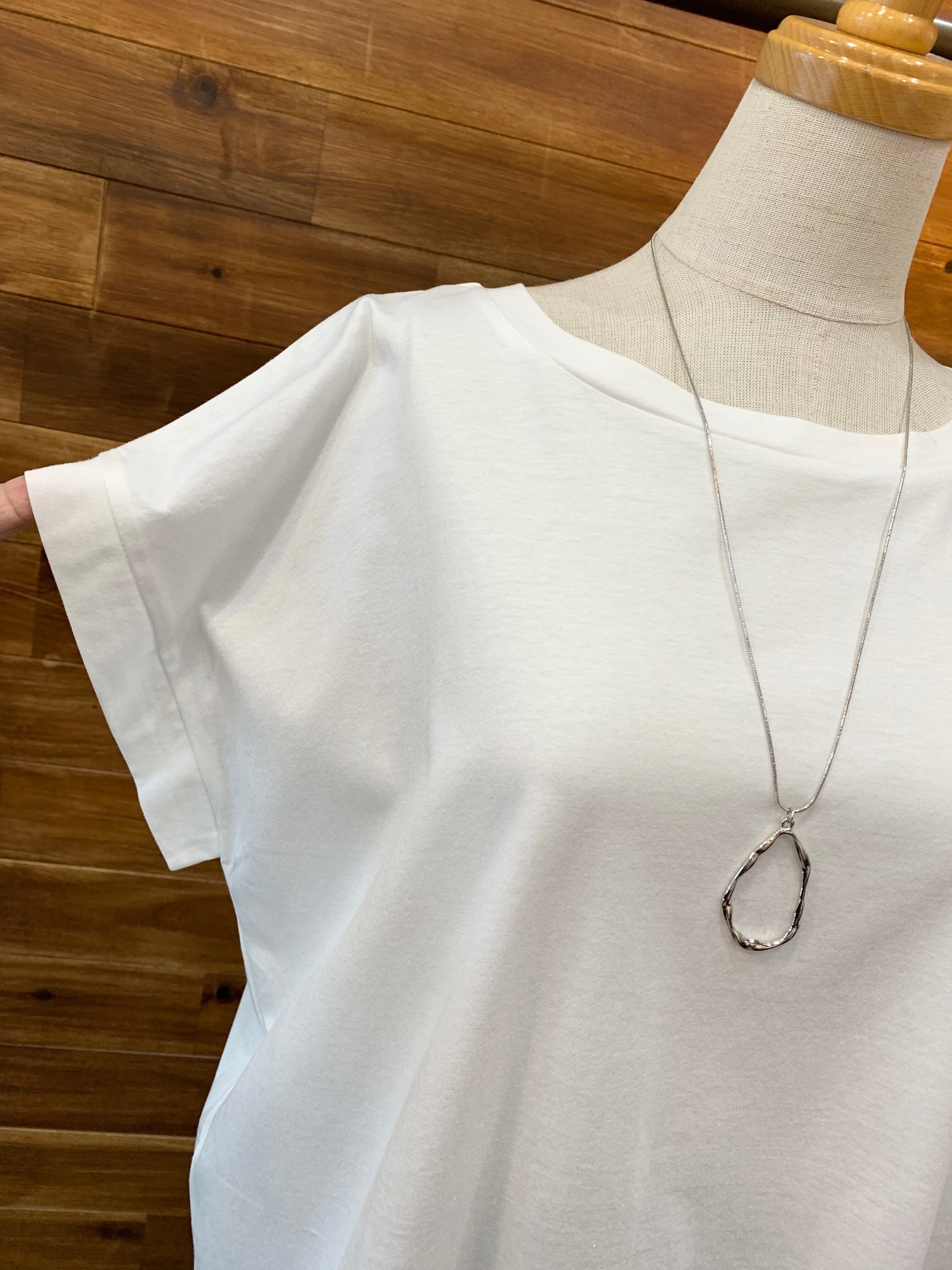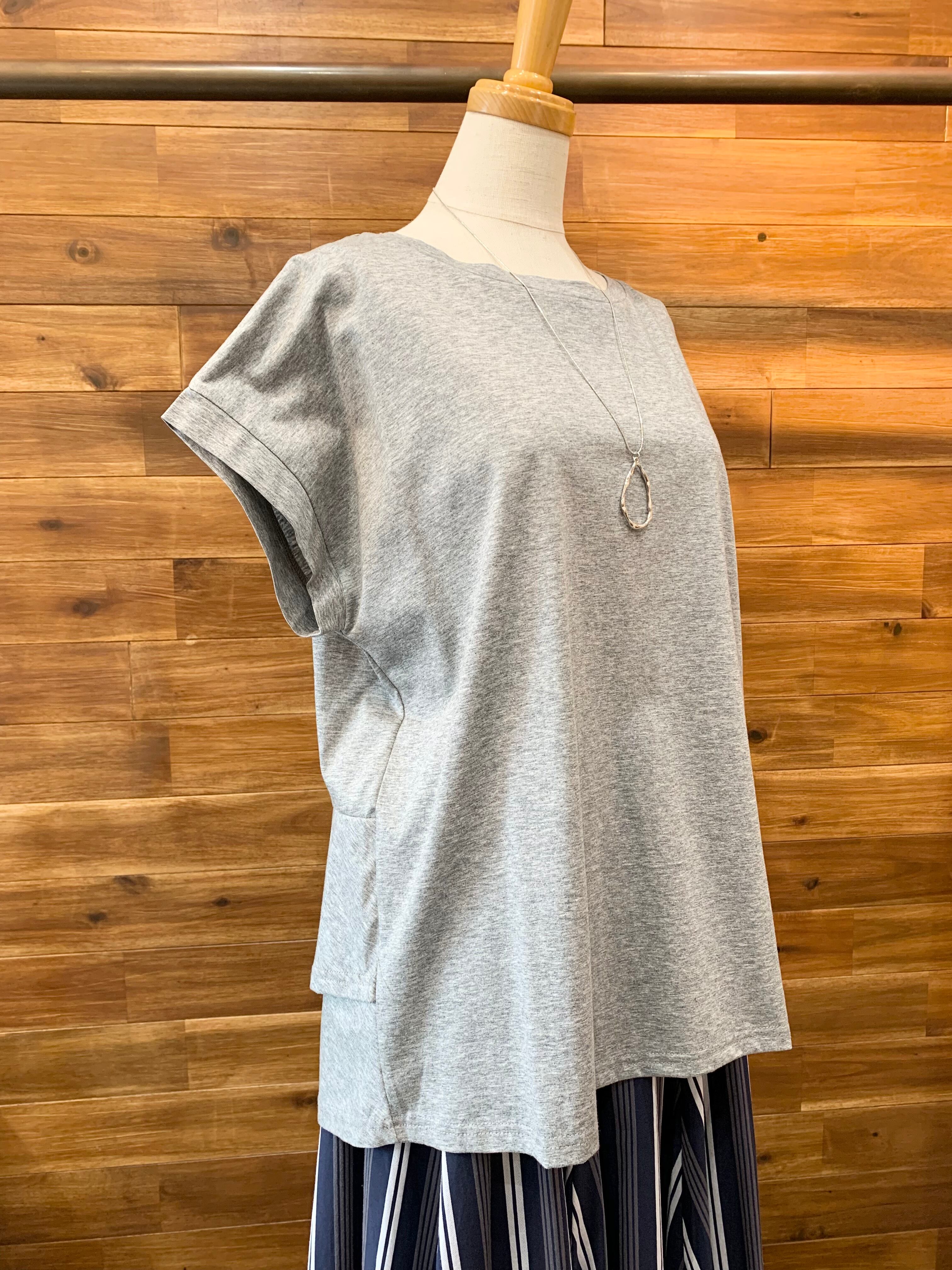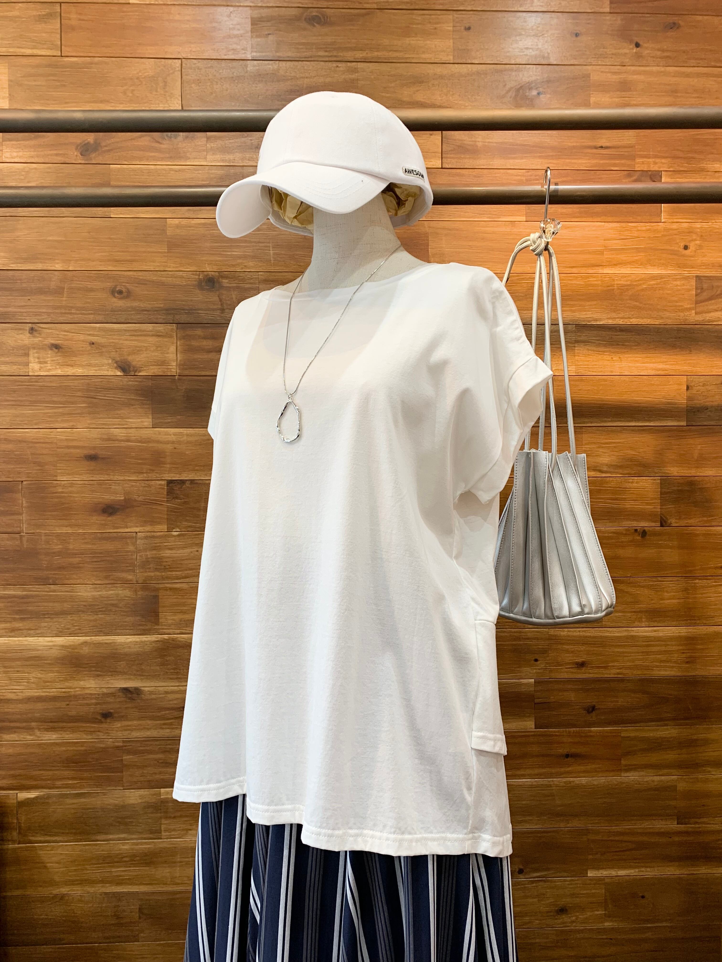 前後差のあるデザインでサッと着るだけでコーディネートが完成します。