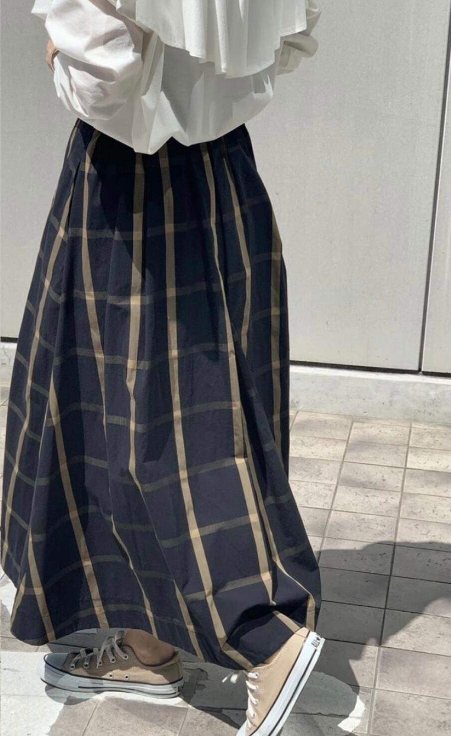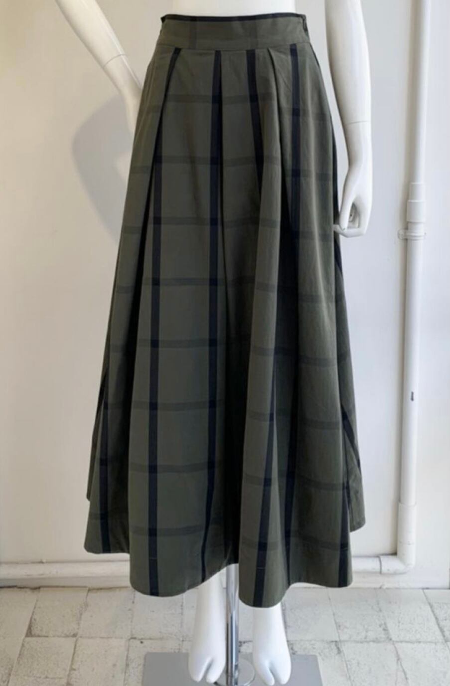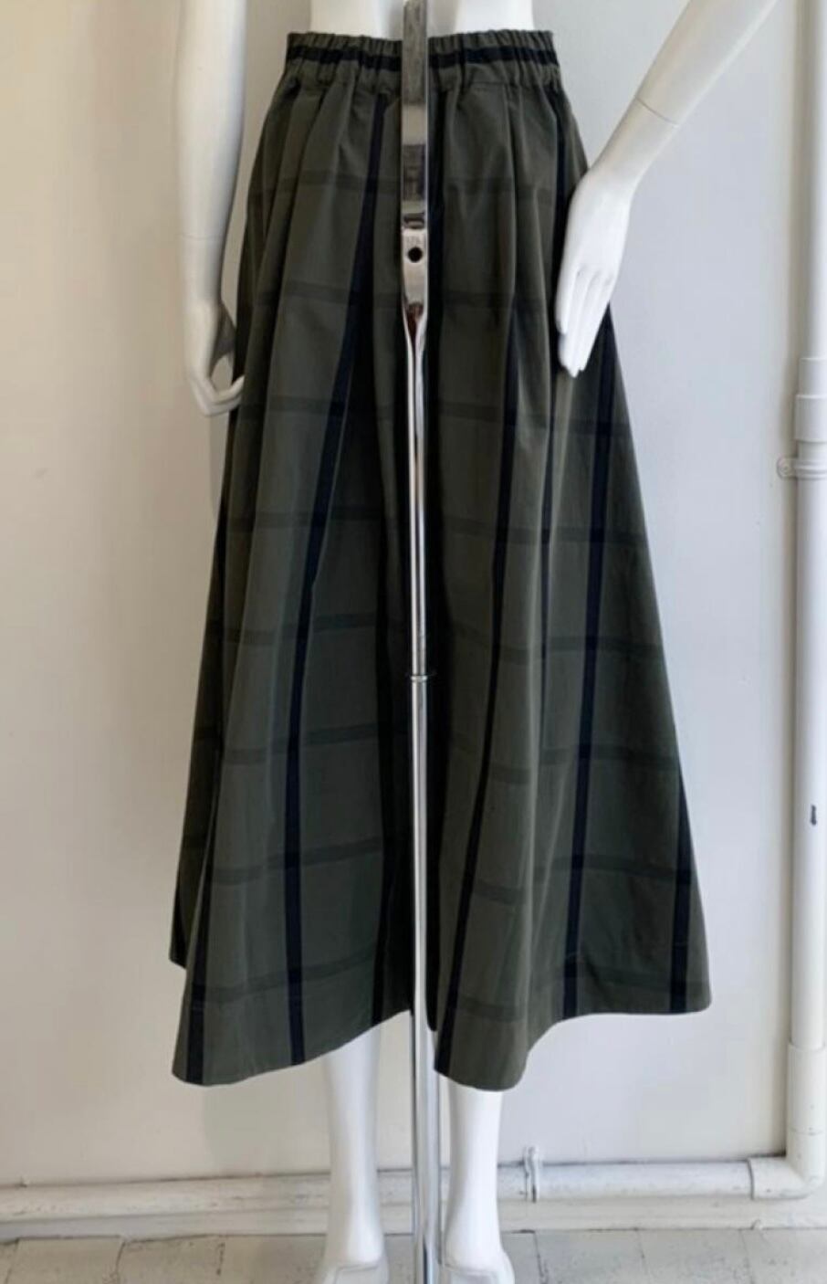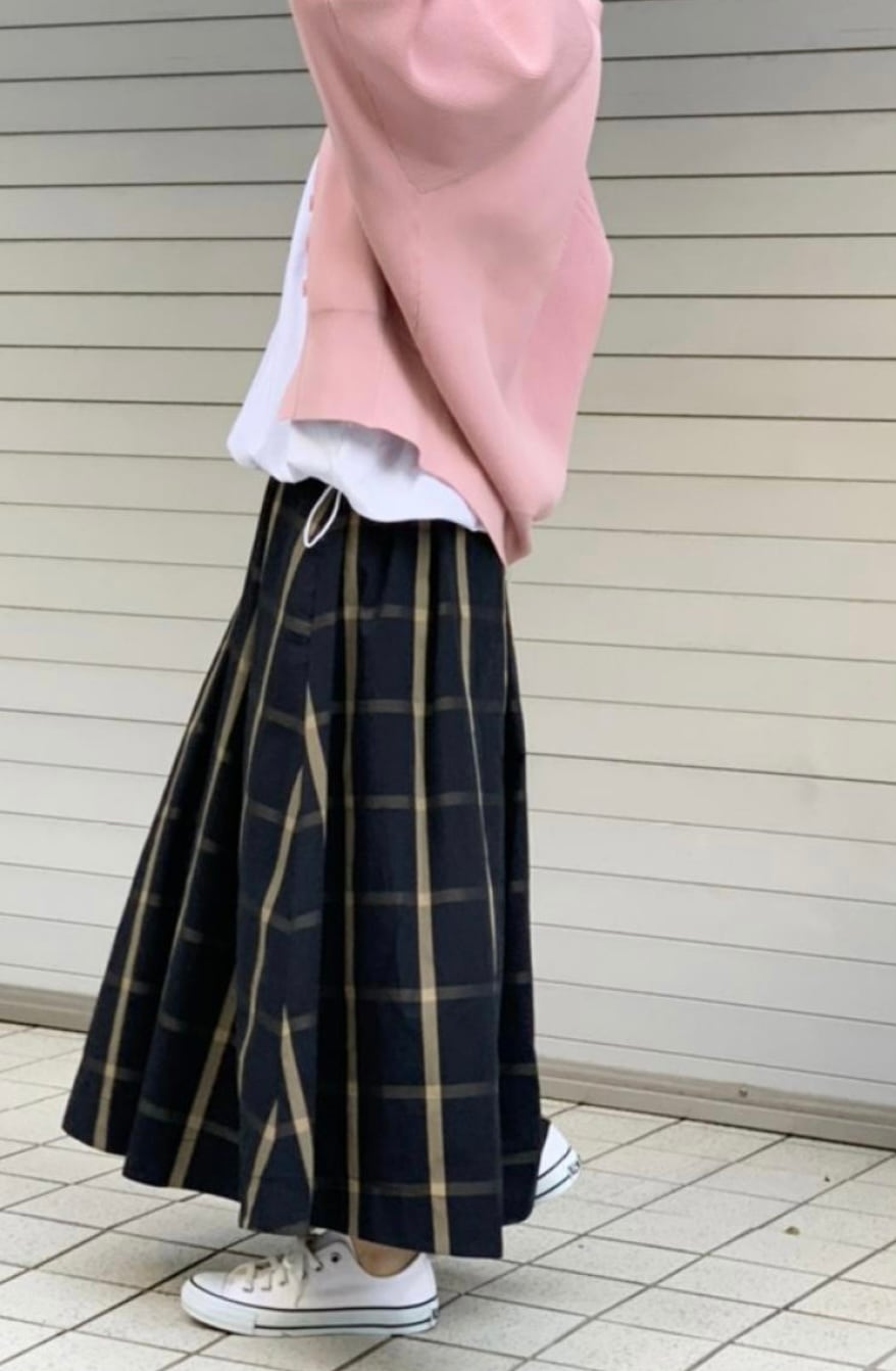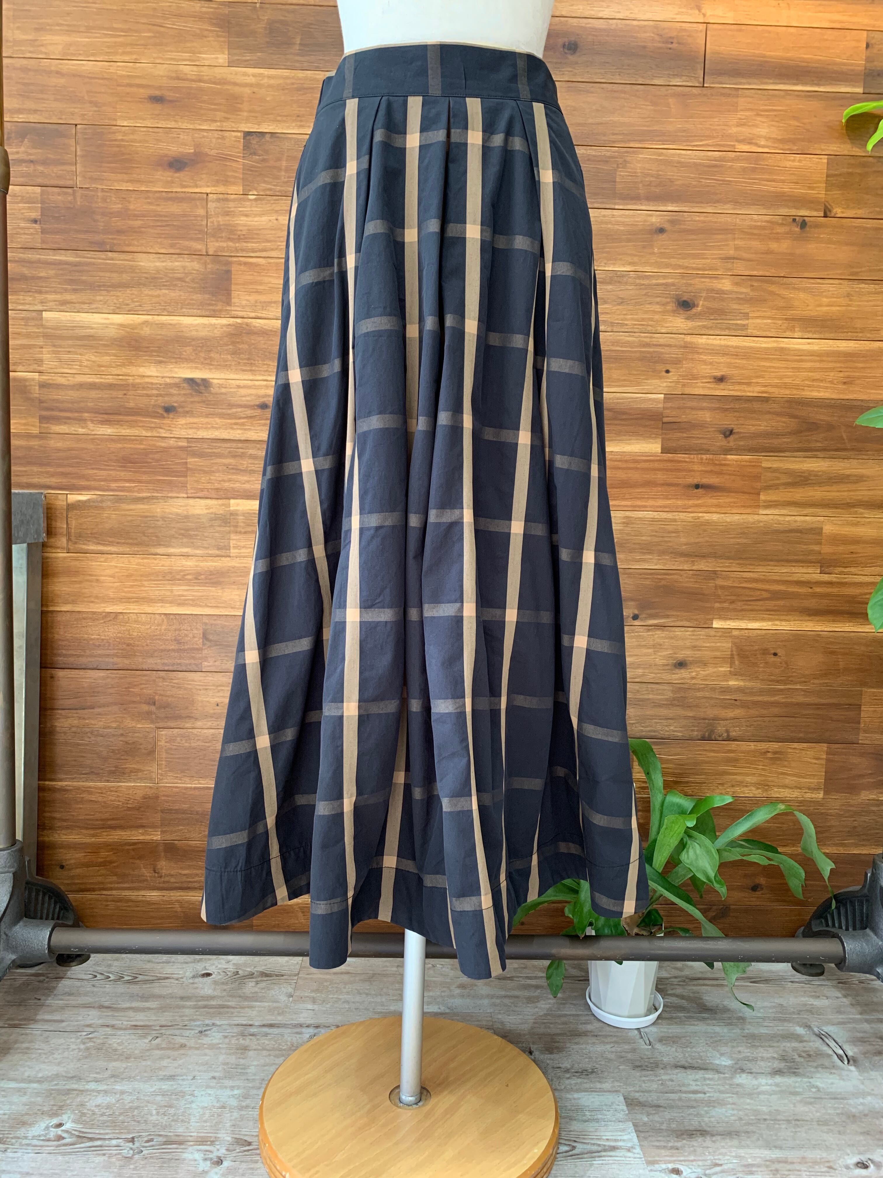 コットン混のメモリー素材を使用したチェック柄フレアスカート♫