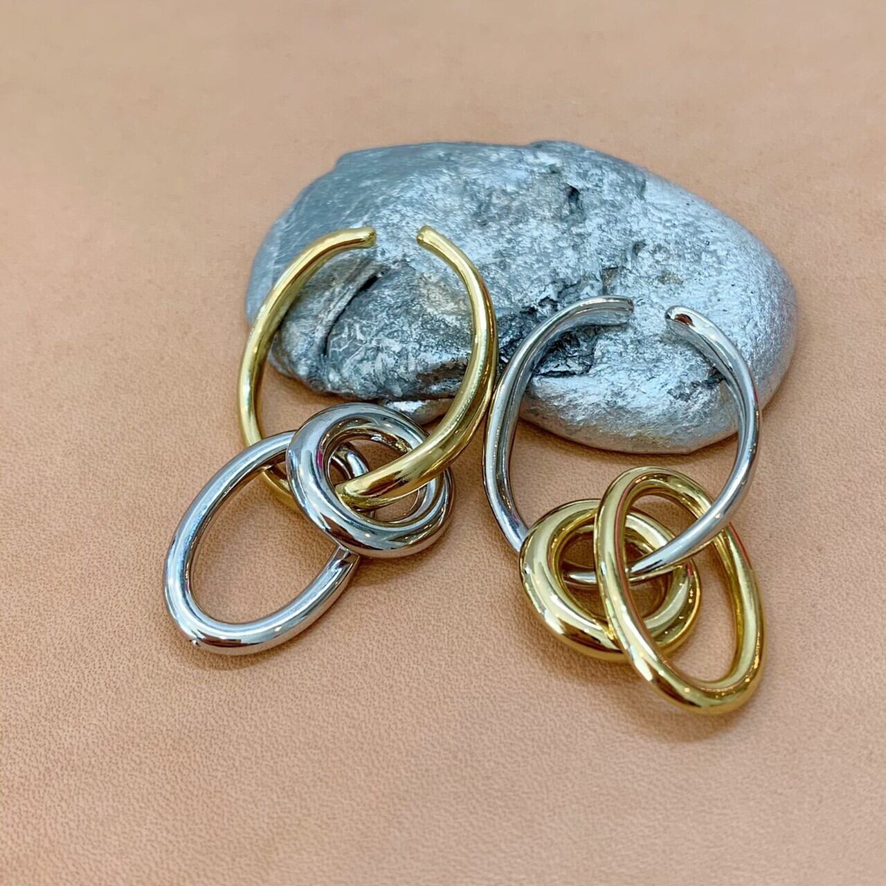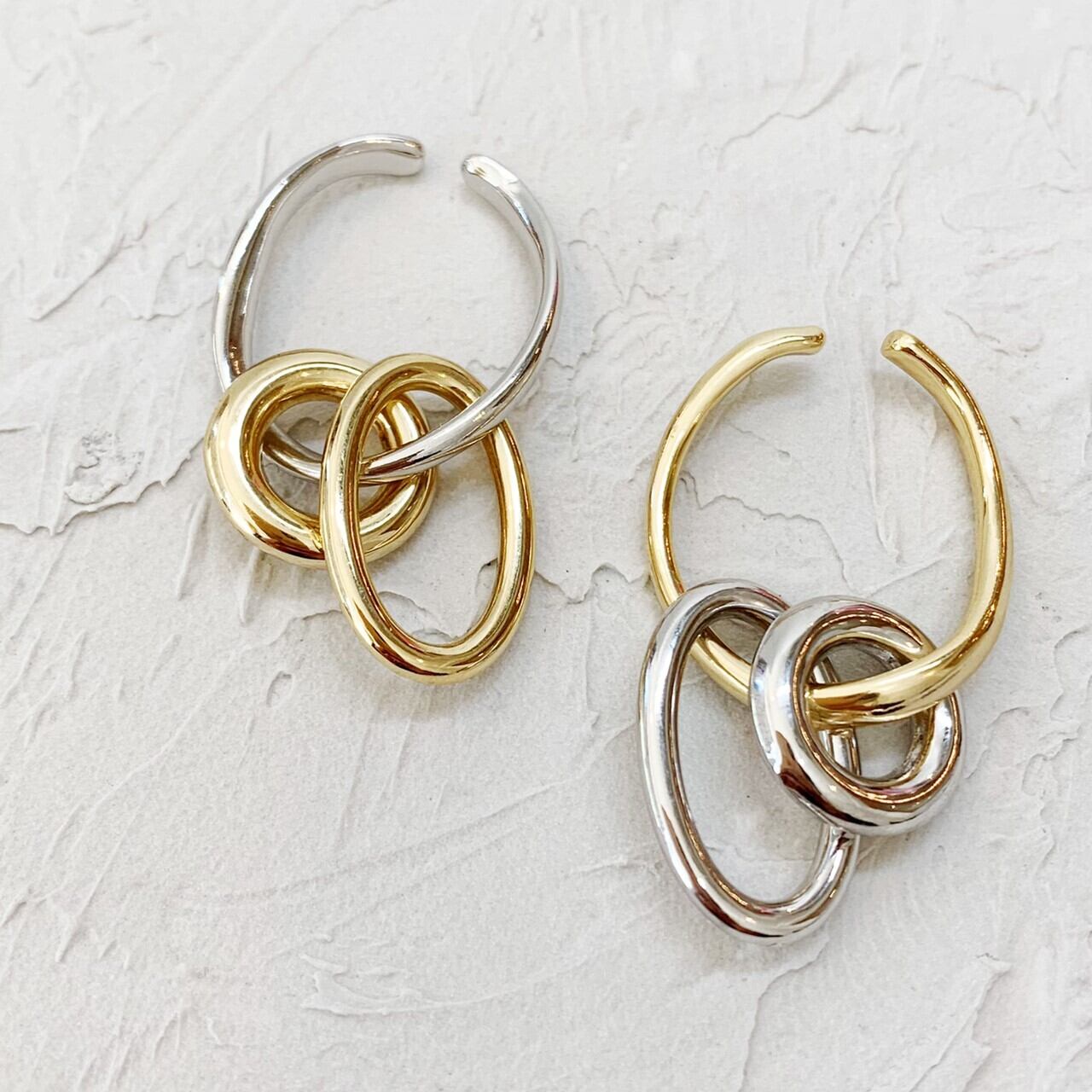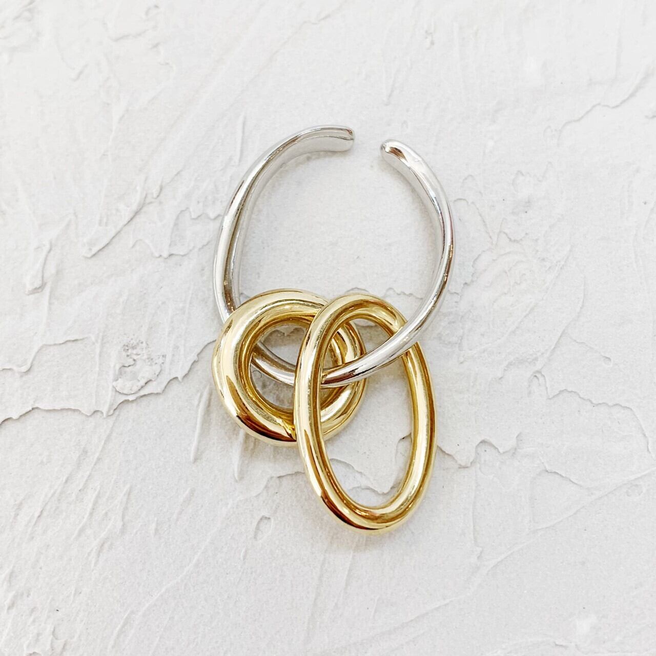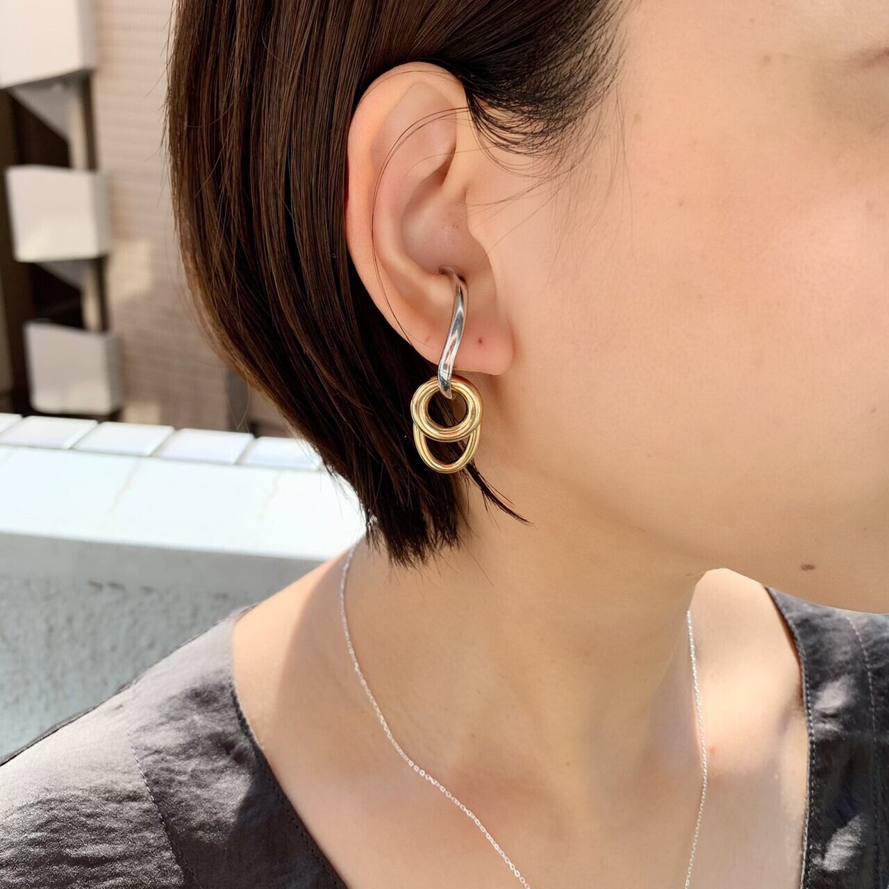2種のリングを取り外し、単品のイヤーカフだけで合わせたり、それぞれ形の違うリングを1つ付けしてモチーフ風にしたりなど、様々なスタイリングでお楽しみいただけます。
