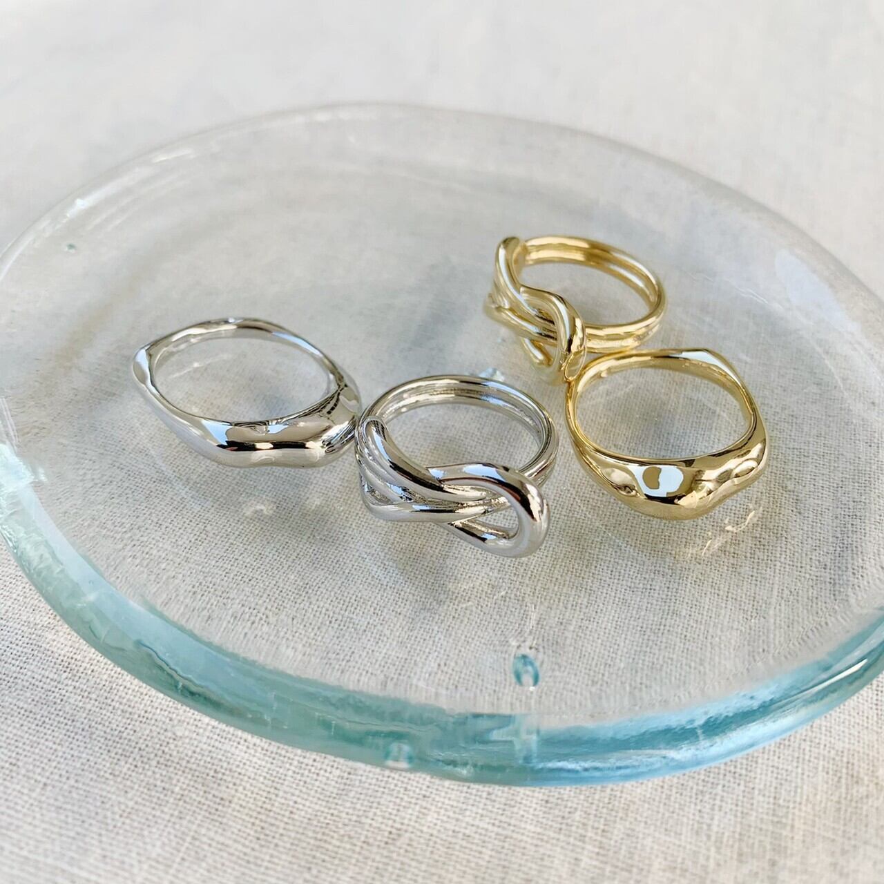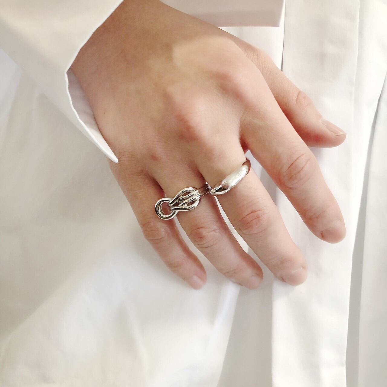 アクセントの効いたそれぞれデザイン性の違うシルエットが、指元に映えるスタイリッシュなリングです。