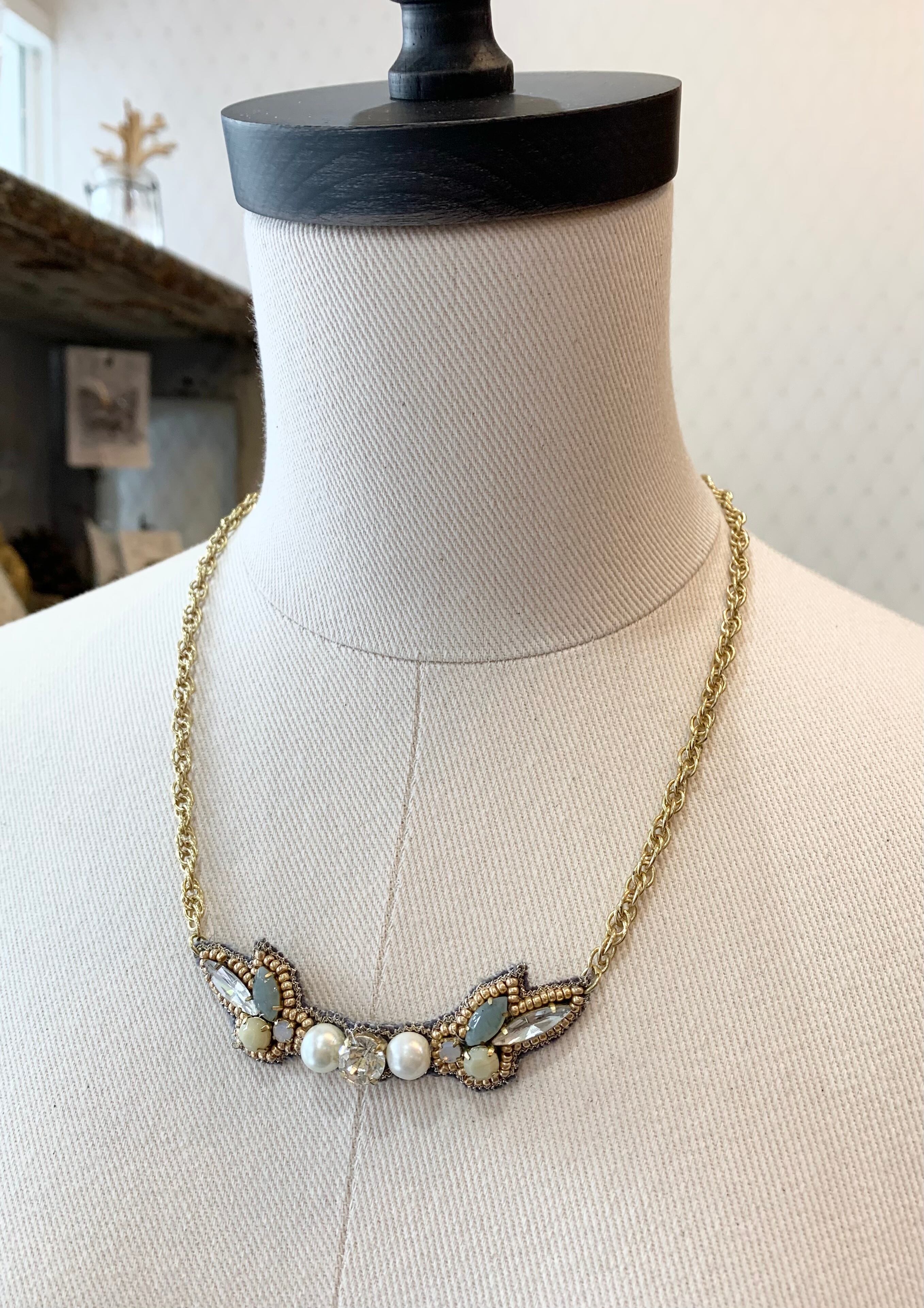MAYGLOBE by Tribaluxe (メイグローブバイトライバラクス)のビジュー刺繍モチーフのネックレスです。