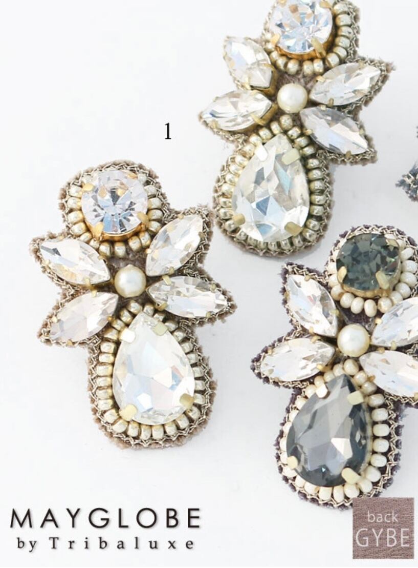 MAYGLOBE by Tribaluxe (メイグローブバイトライバラクス)のビジュー刺繍モチーフのイヤリングです。