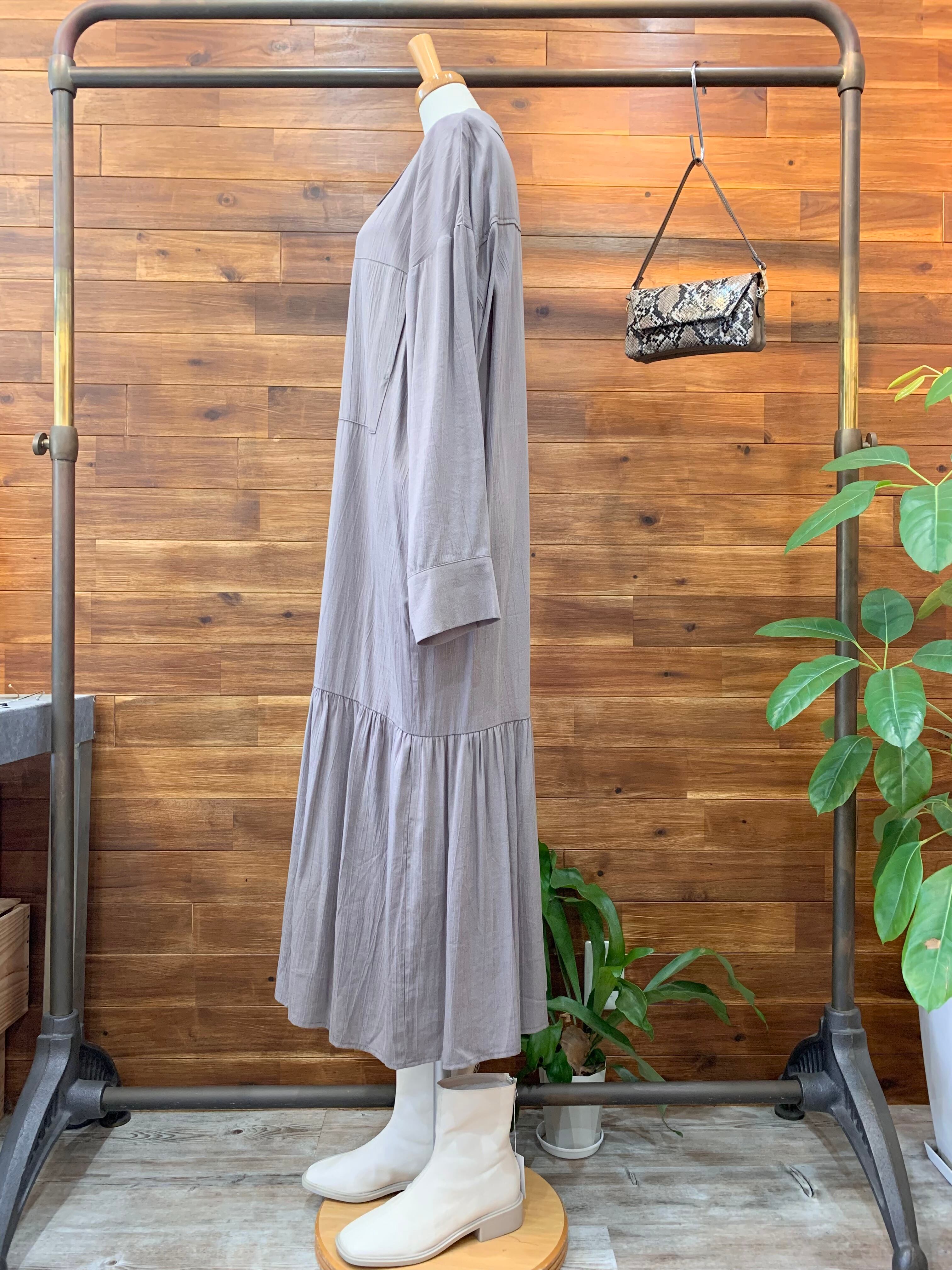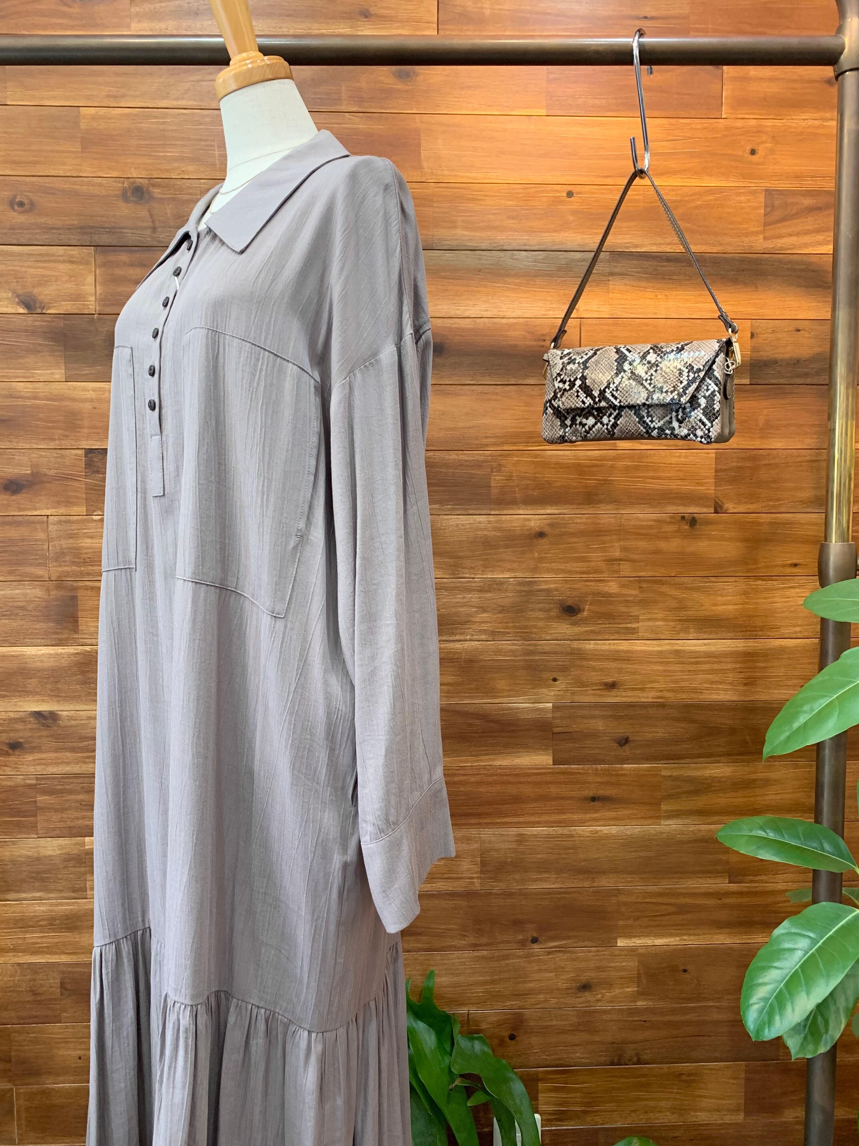 ポロ衿 ローウエストシャツワンピース