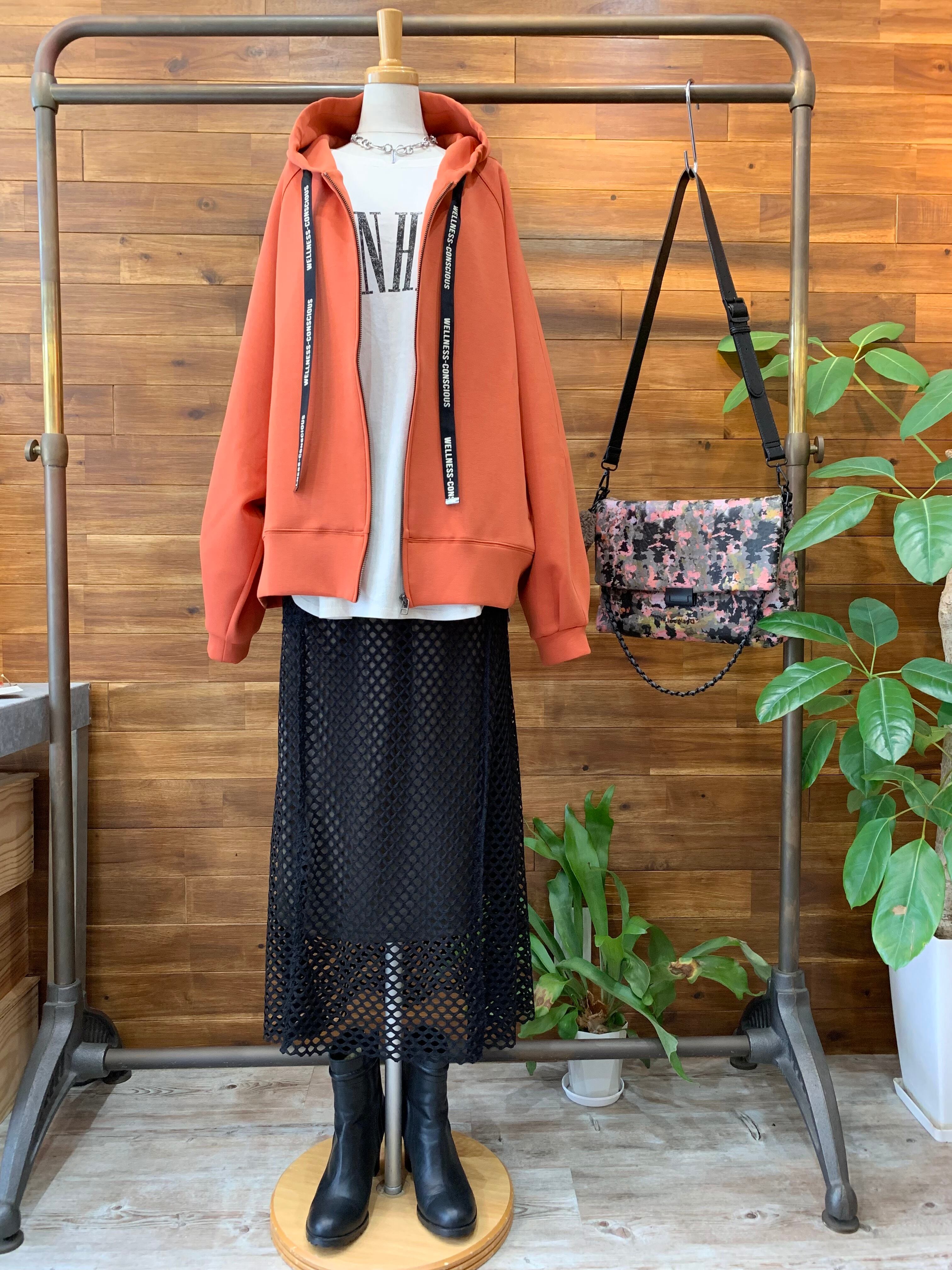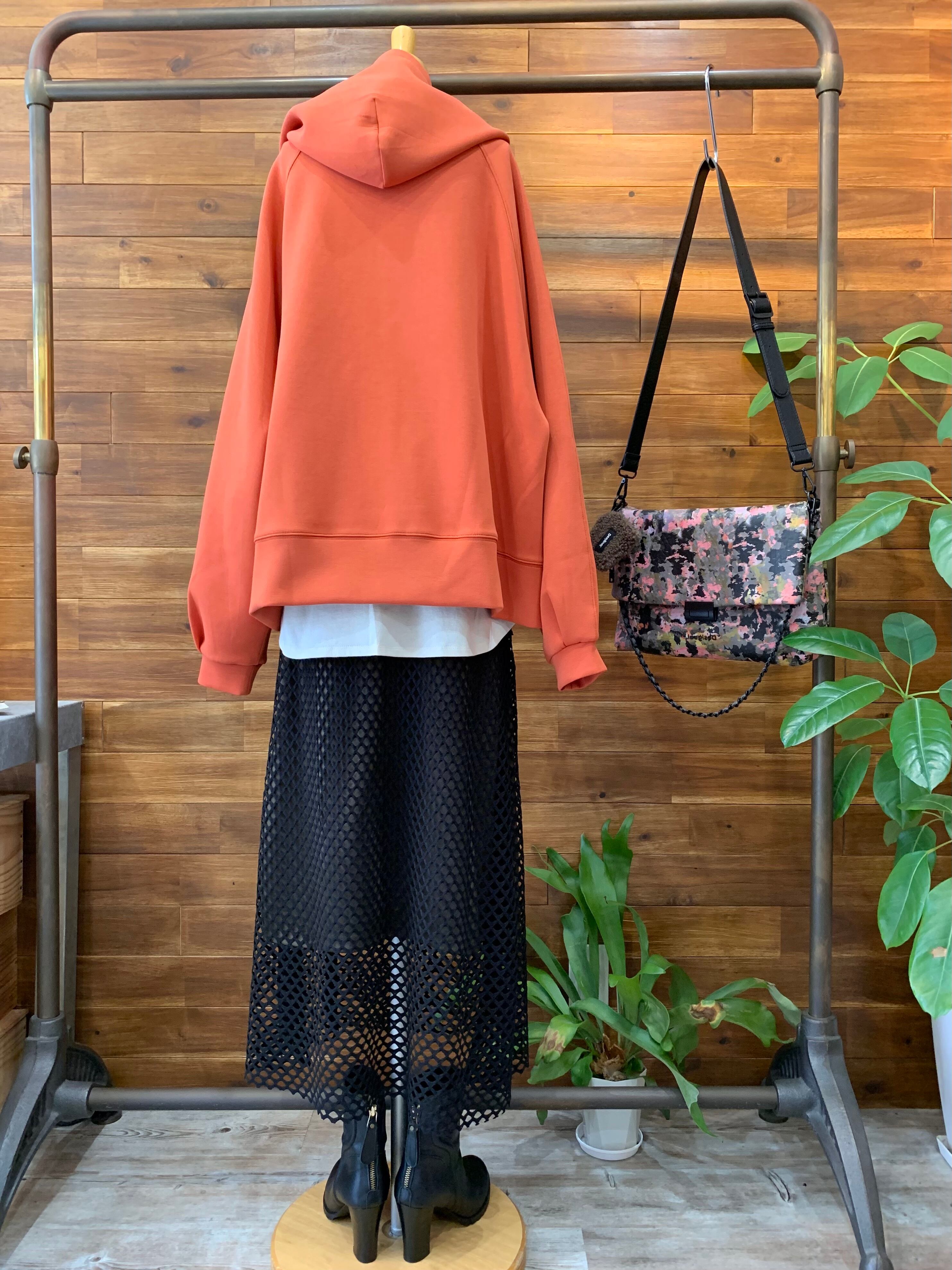 ロゴテープがアクセントになった一味違ったオシャレなパーカー、たっぷりとした身幅にアームも広めなので、インにも着込めて長いシーズン着用して頂けます◎