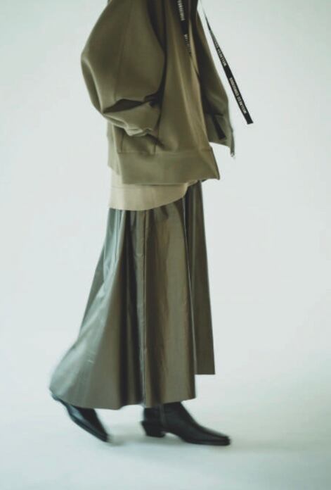 大きめのサイズ感と、袖のボリュームがポイントで、インに着る物を選びません。