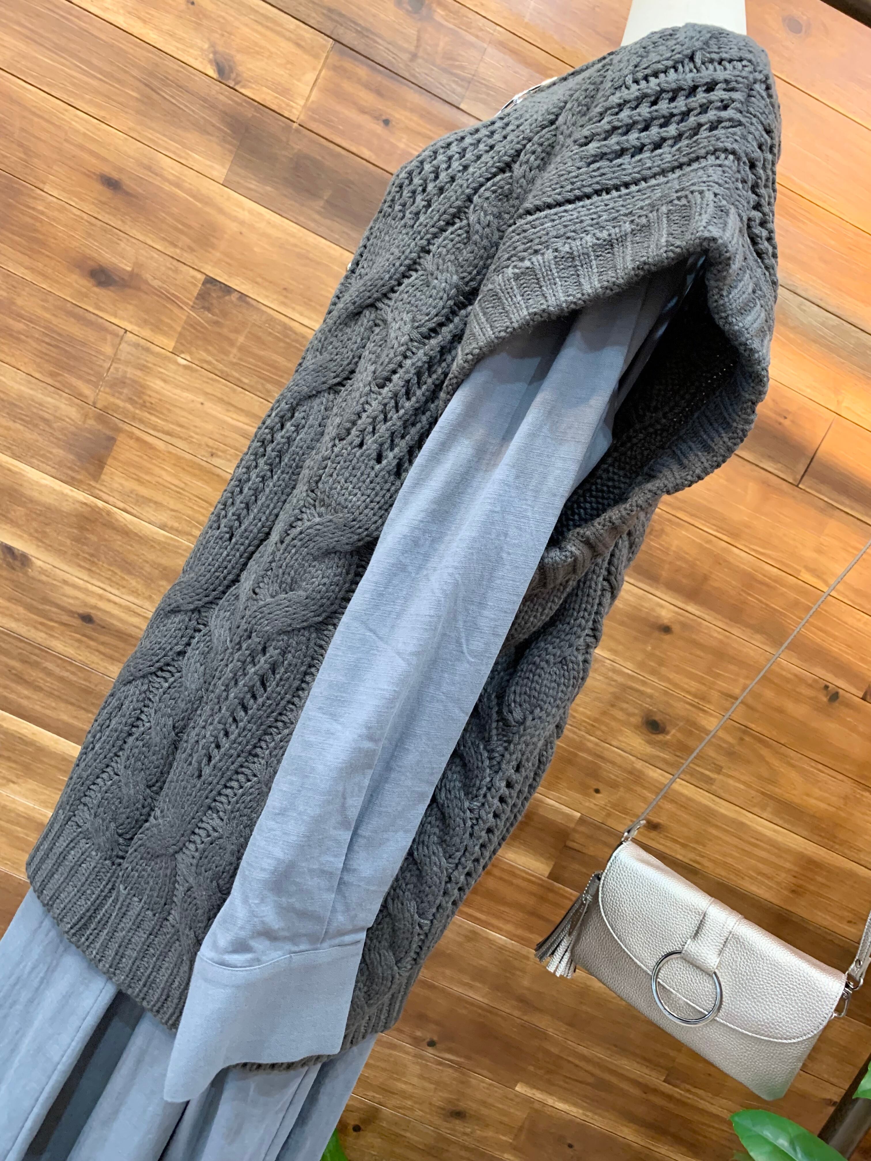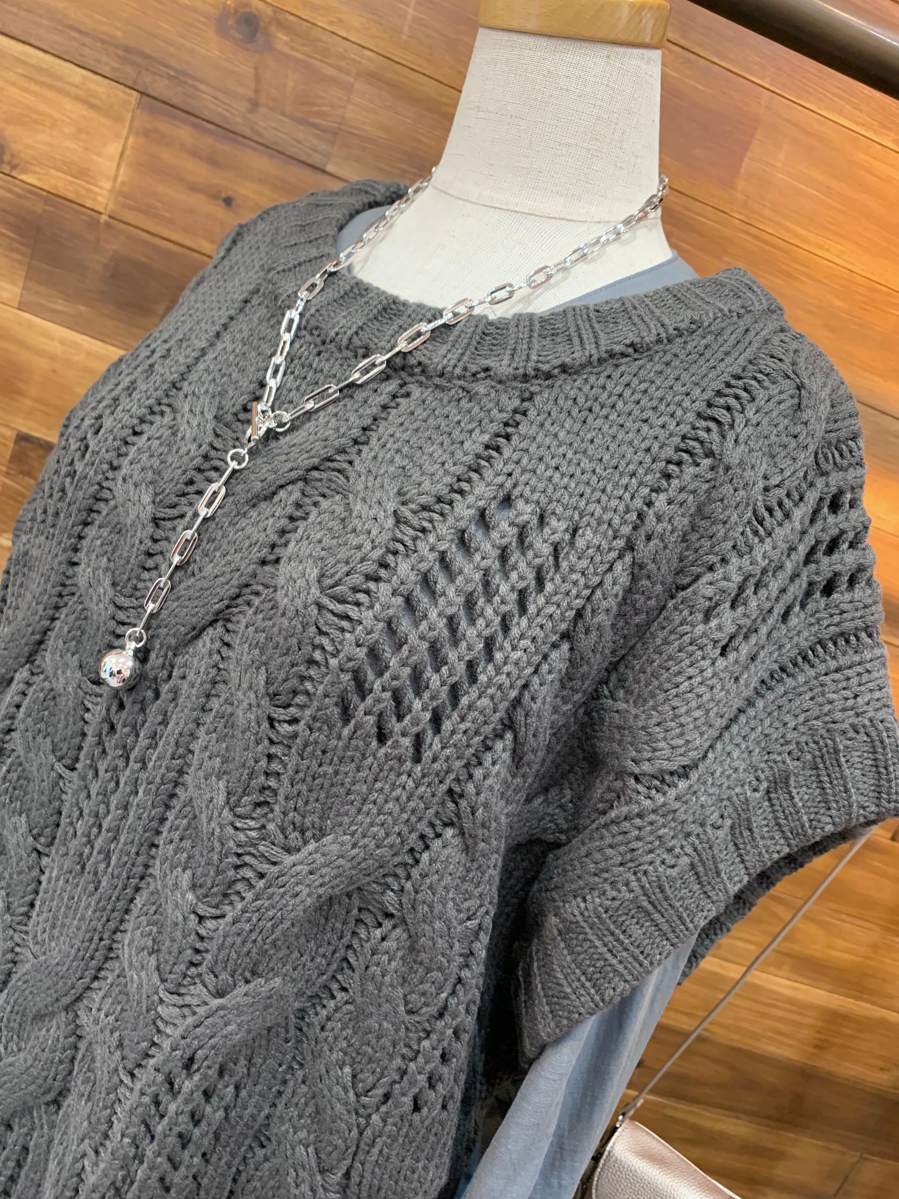 ふんわりと軽い素材感のザックリとしたケーブル編みと、フレンチスリーブのゆったりシルエットのバランスがとっても可愛いです♡