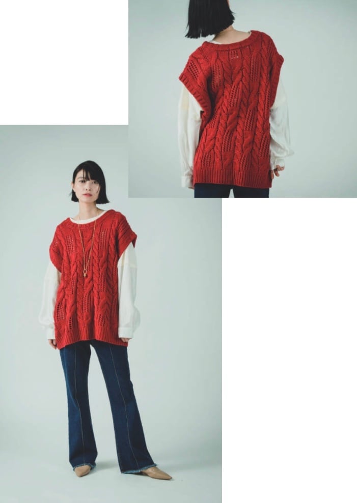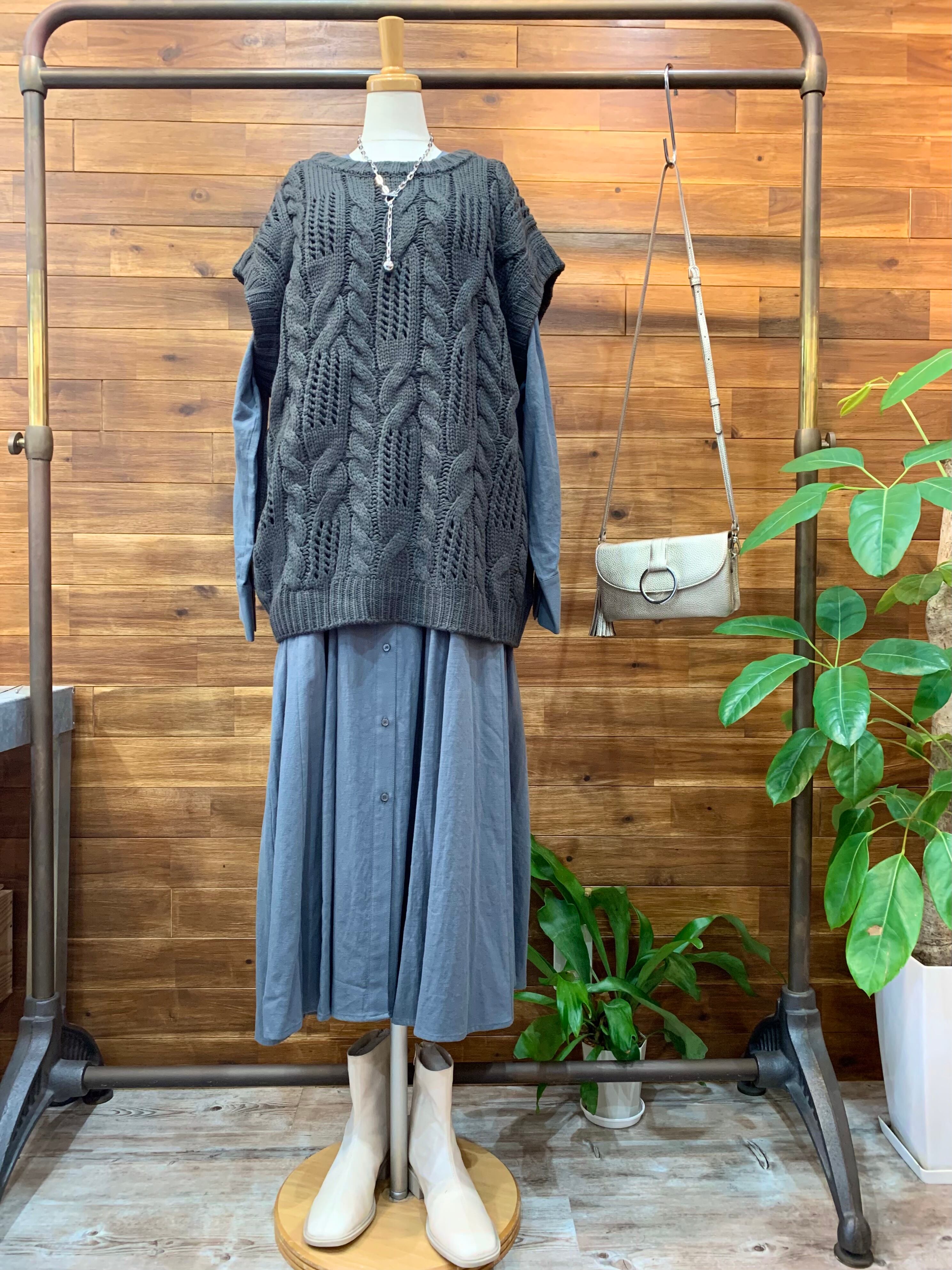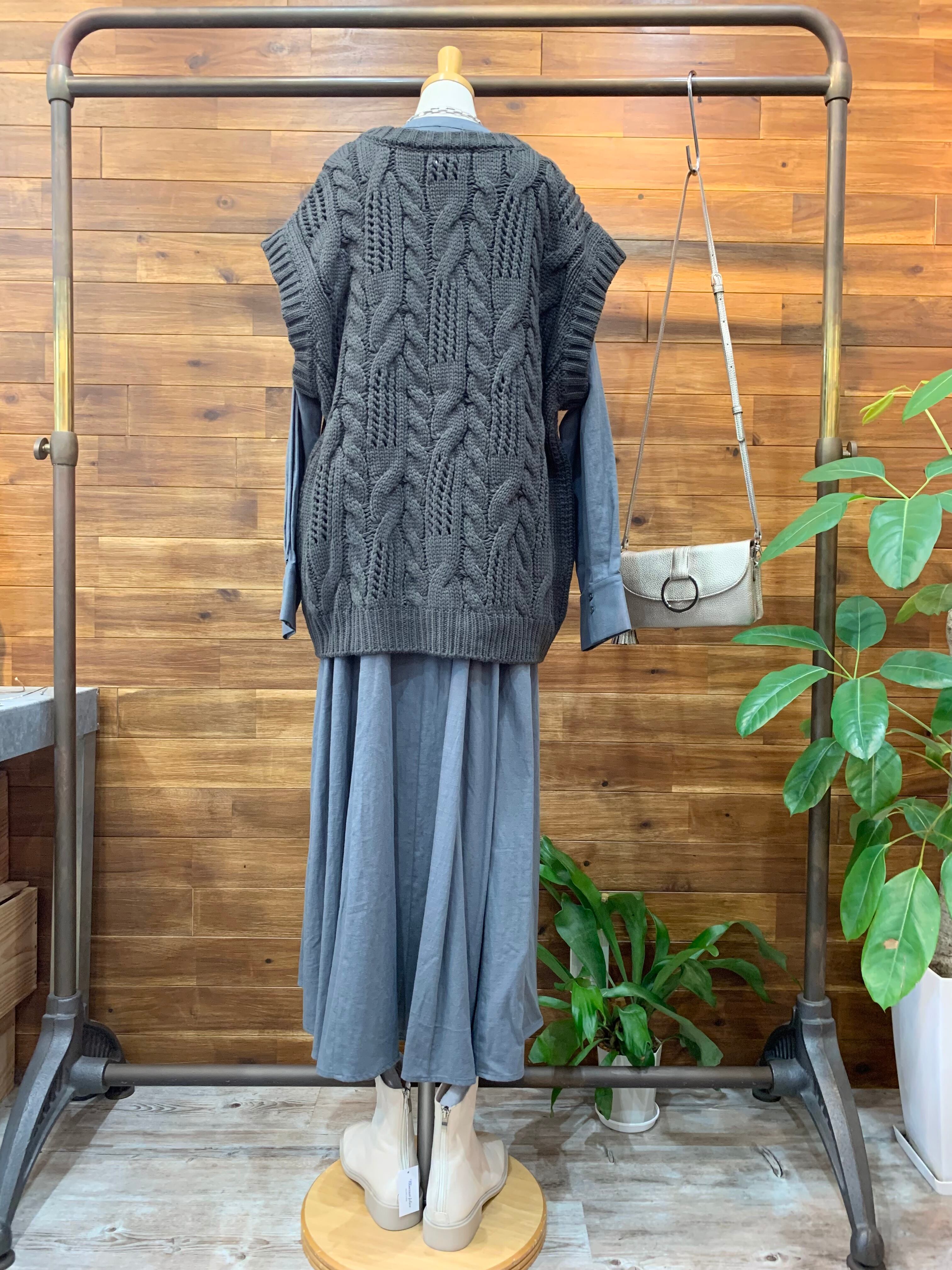 晩夏はニットベストだけで、寒くなったらシャツやワンピースとのレイヤードスタイルにも活躍してくれそうです◎