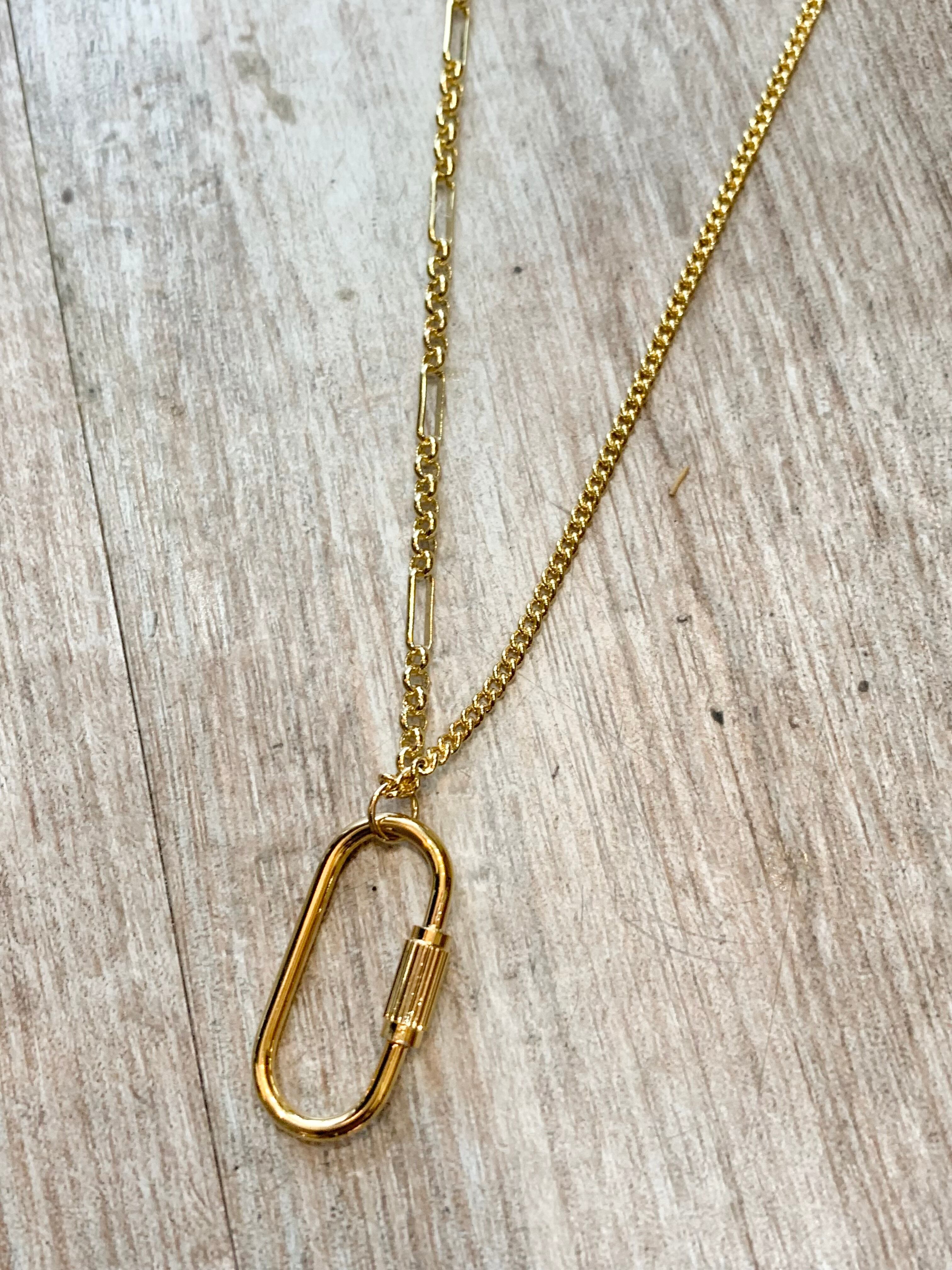 フロントのカラビナチャームがポイントのチェーンネックレス♪