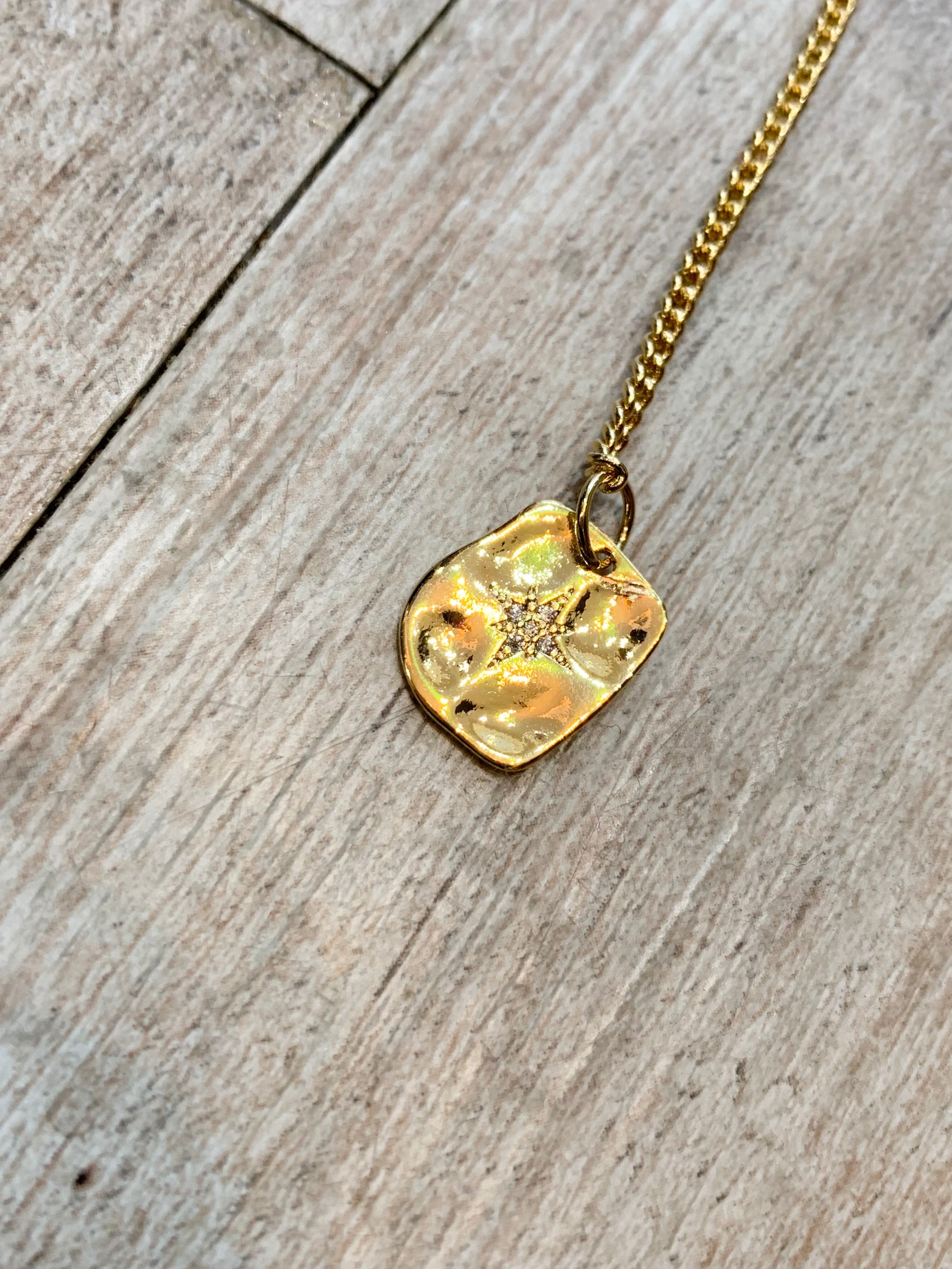 バックは、長めのチェーンに星がデザインされたスクエアなチャームが付いていて、後ろ姿もオシャレです♡