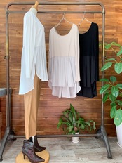 前後差のある長めのレングスにサイドスリット、ラウンドした裾のデザインで、レイヤードした時に柔らかな女性らしい雰囲気になりますよ♡