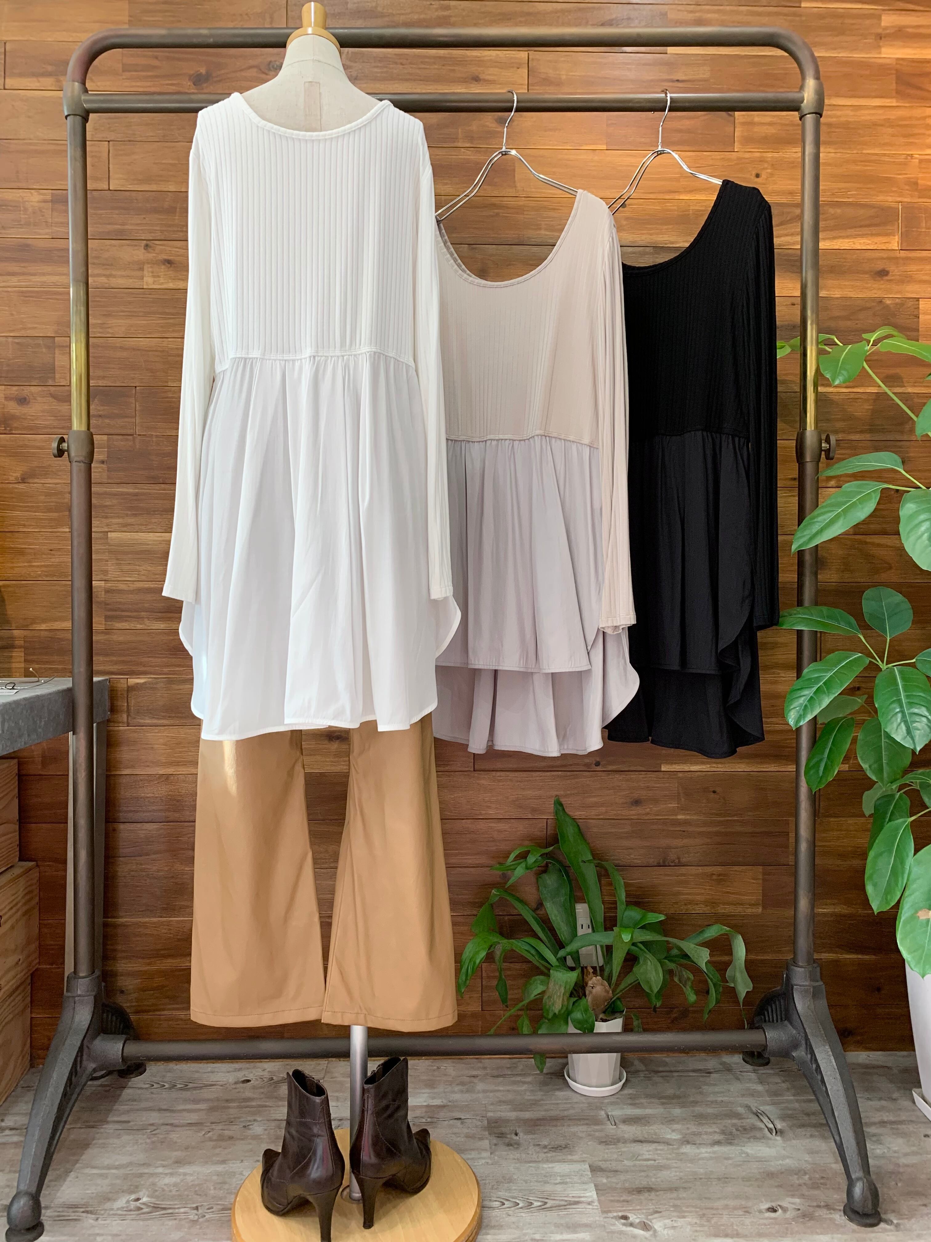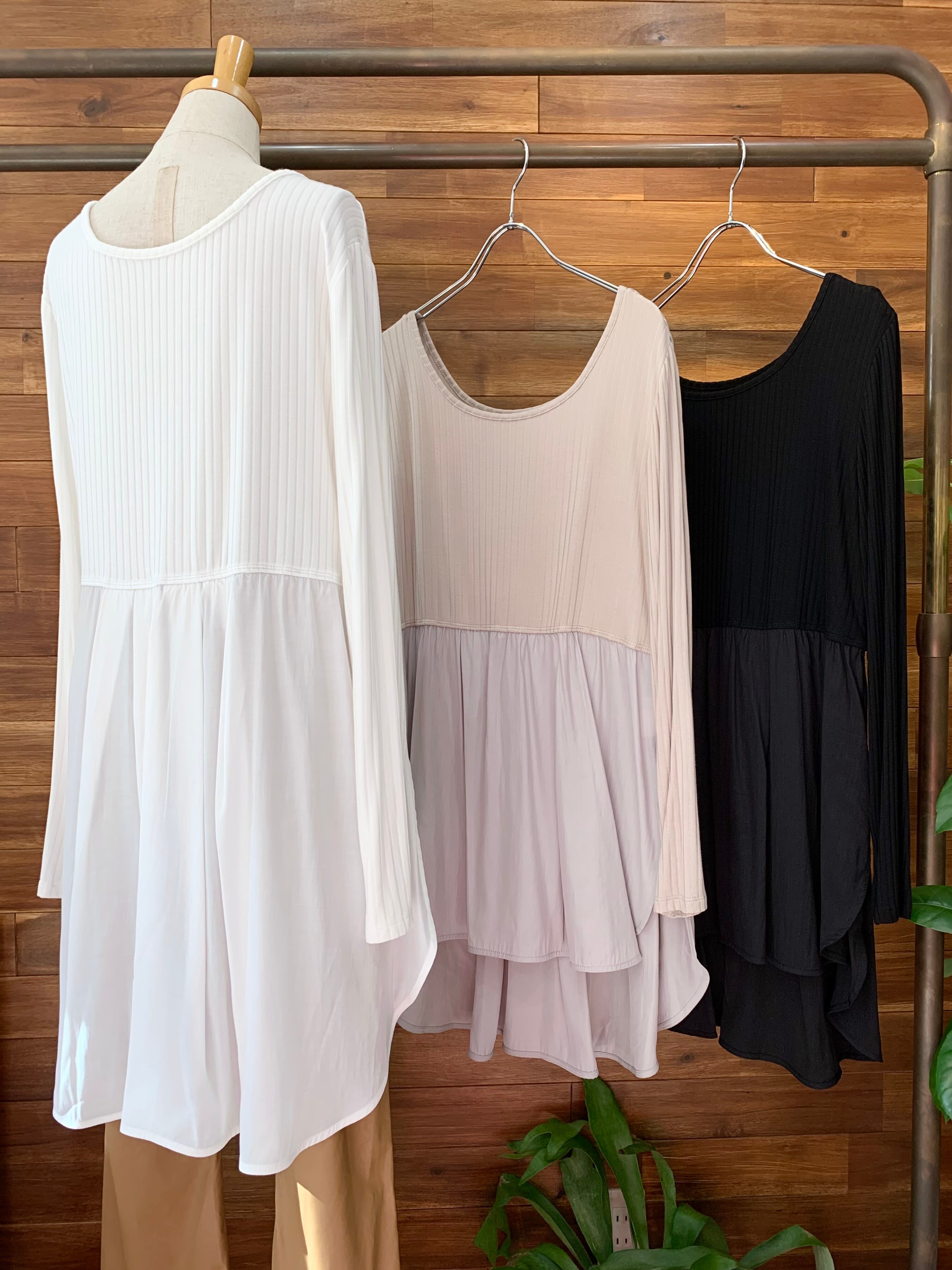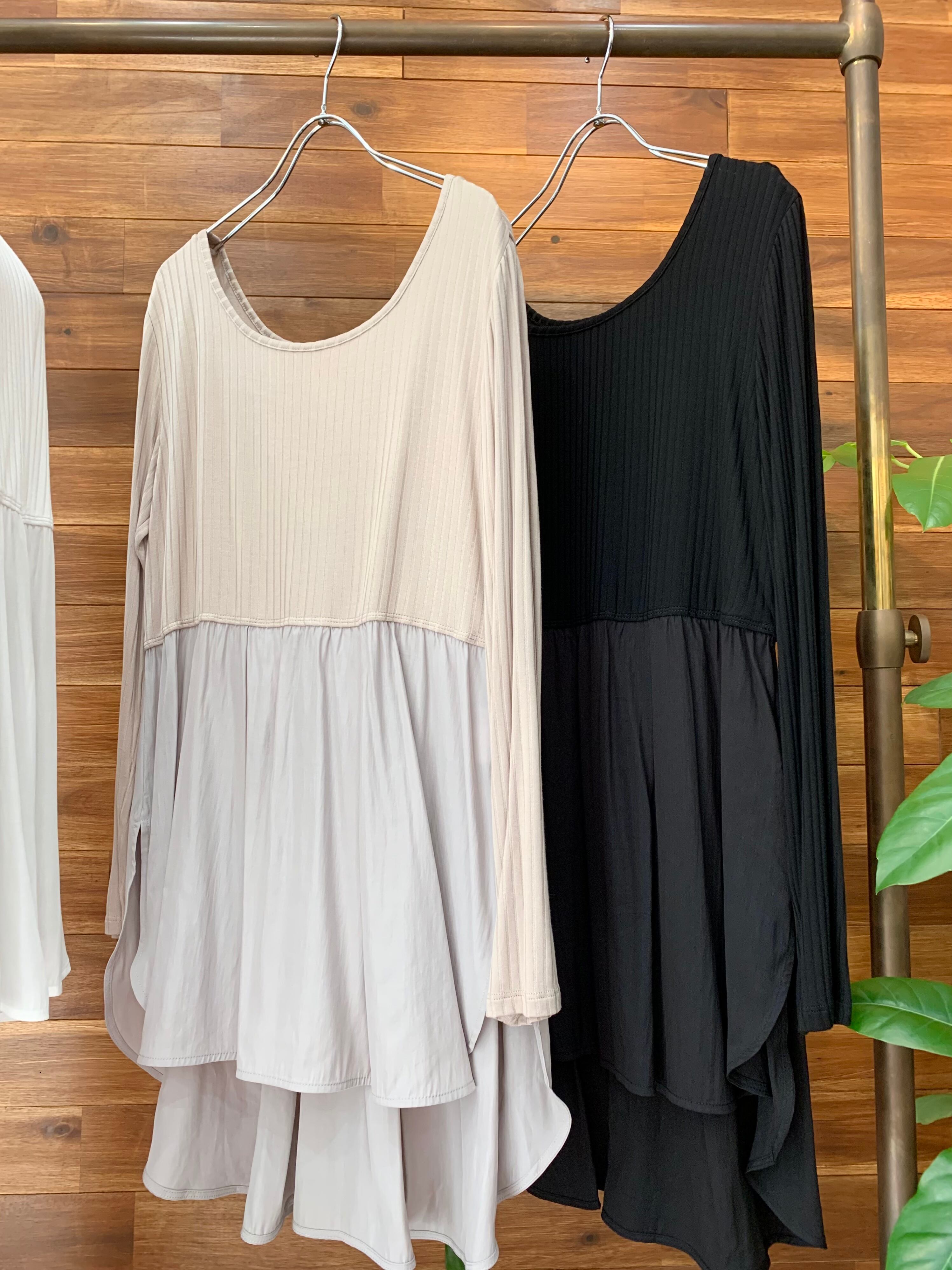 とっても柔らかなリブ風ロンTに、しなやかなレーヨン×ポリエステルの布帛が切り替えになったインナーカットソー♪
