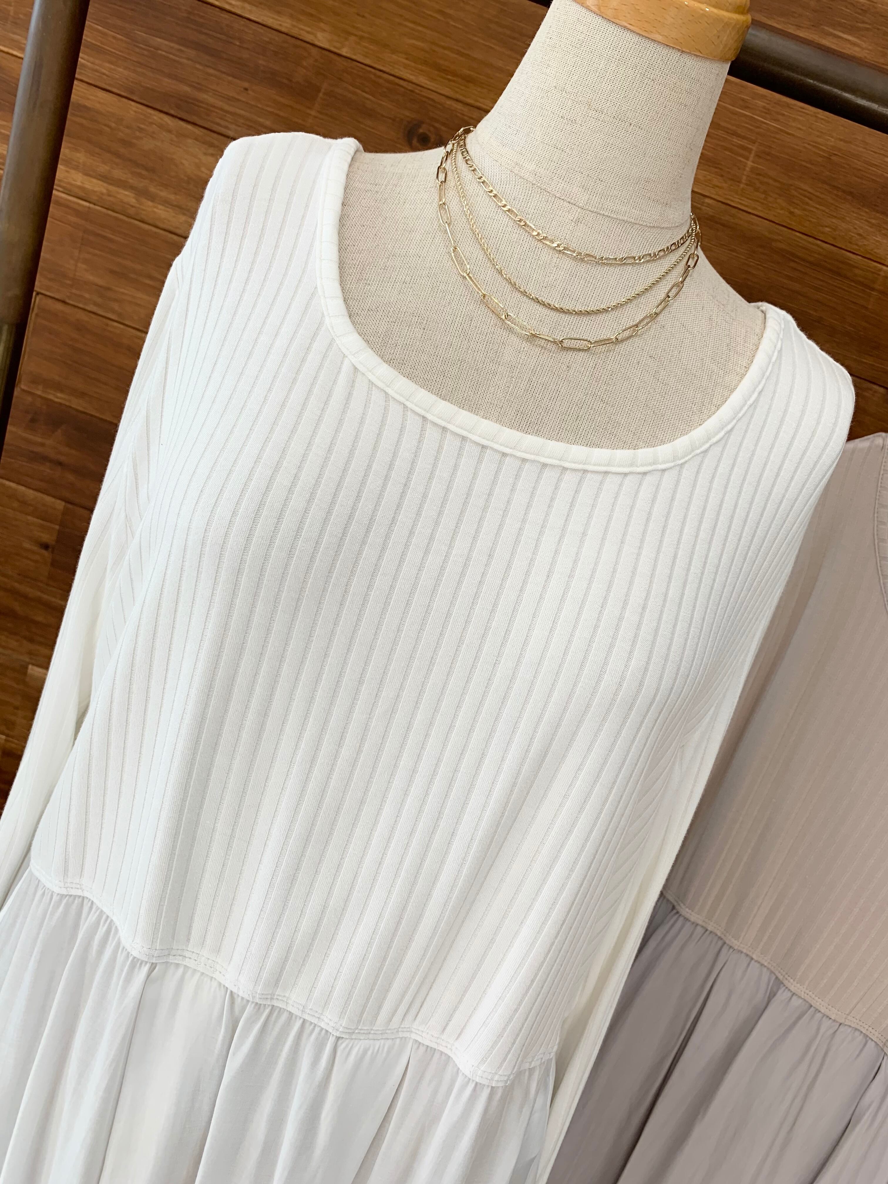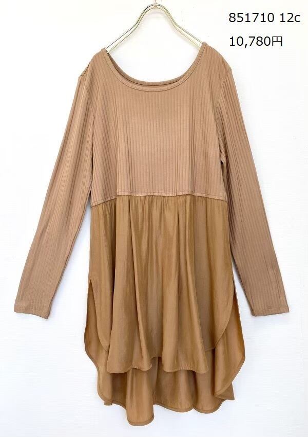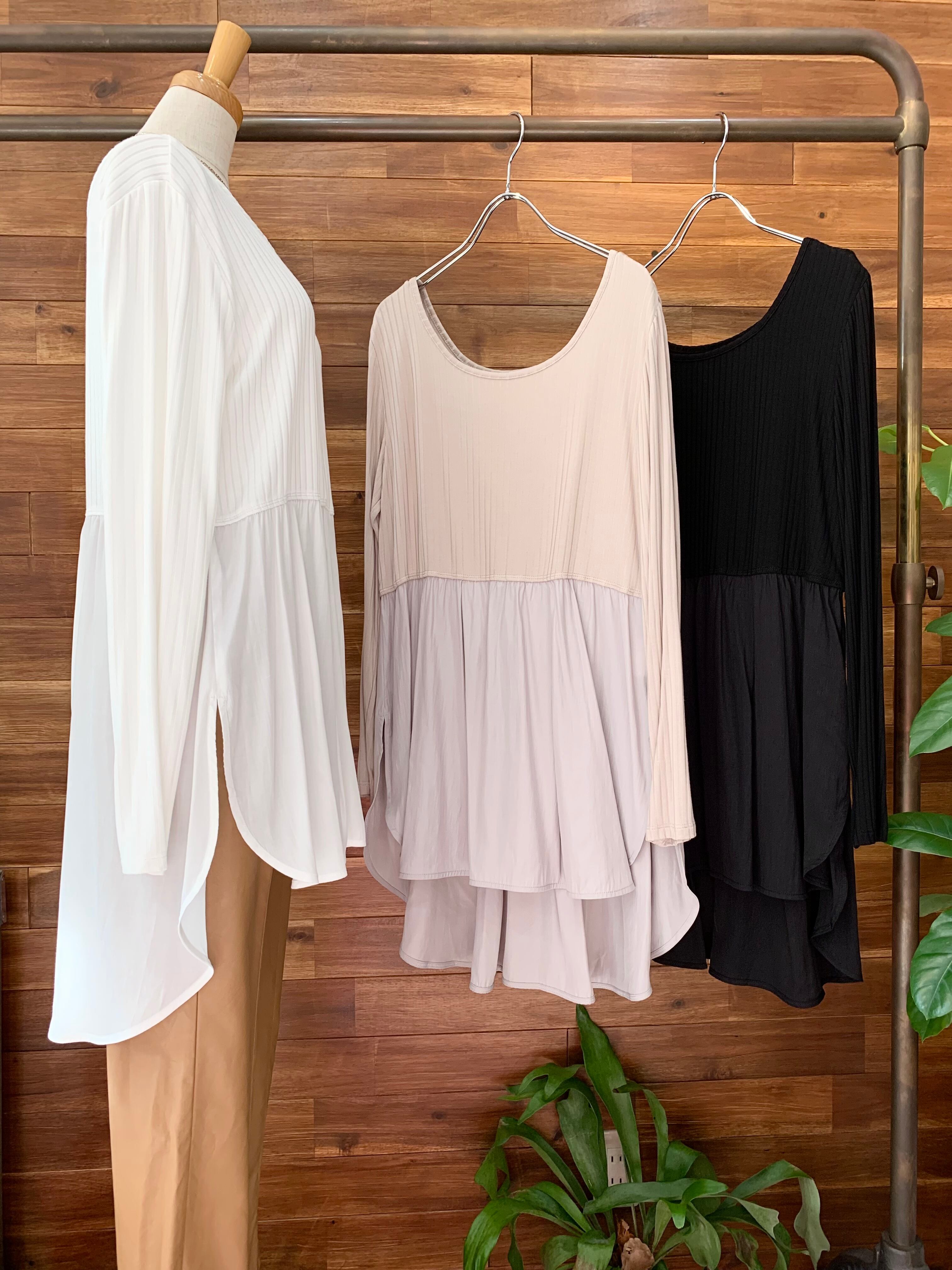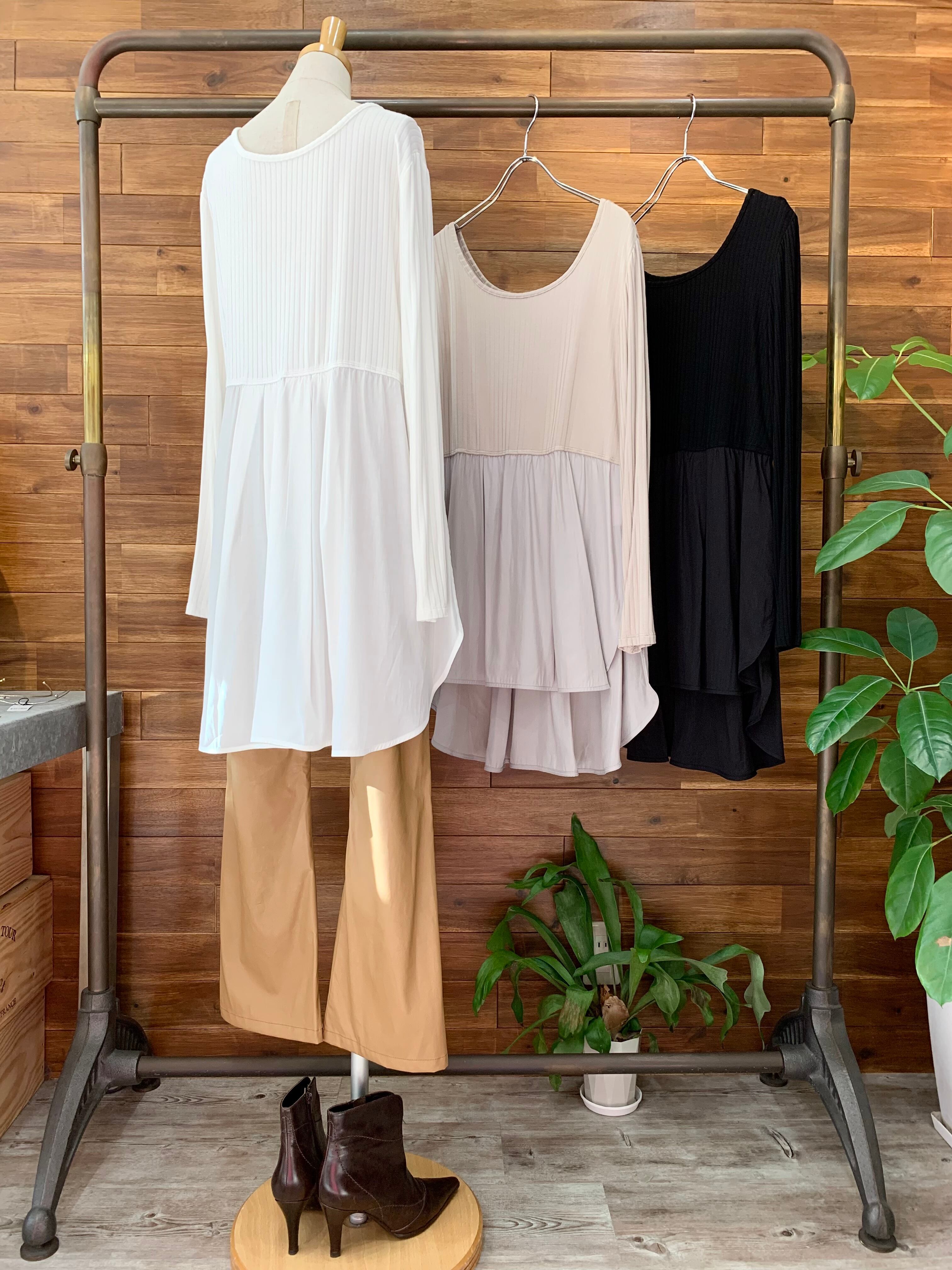 とっても柔らかなリブ風ロンTに、しなやかなレーヨン×ポリエステルの布帛が切り替えになったインナーカットソー♪