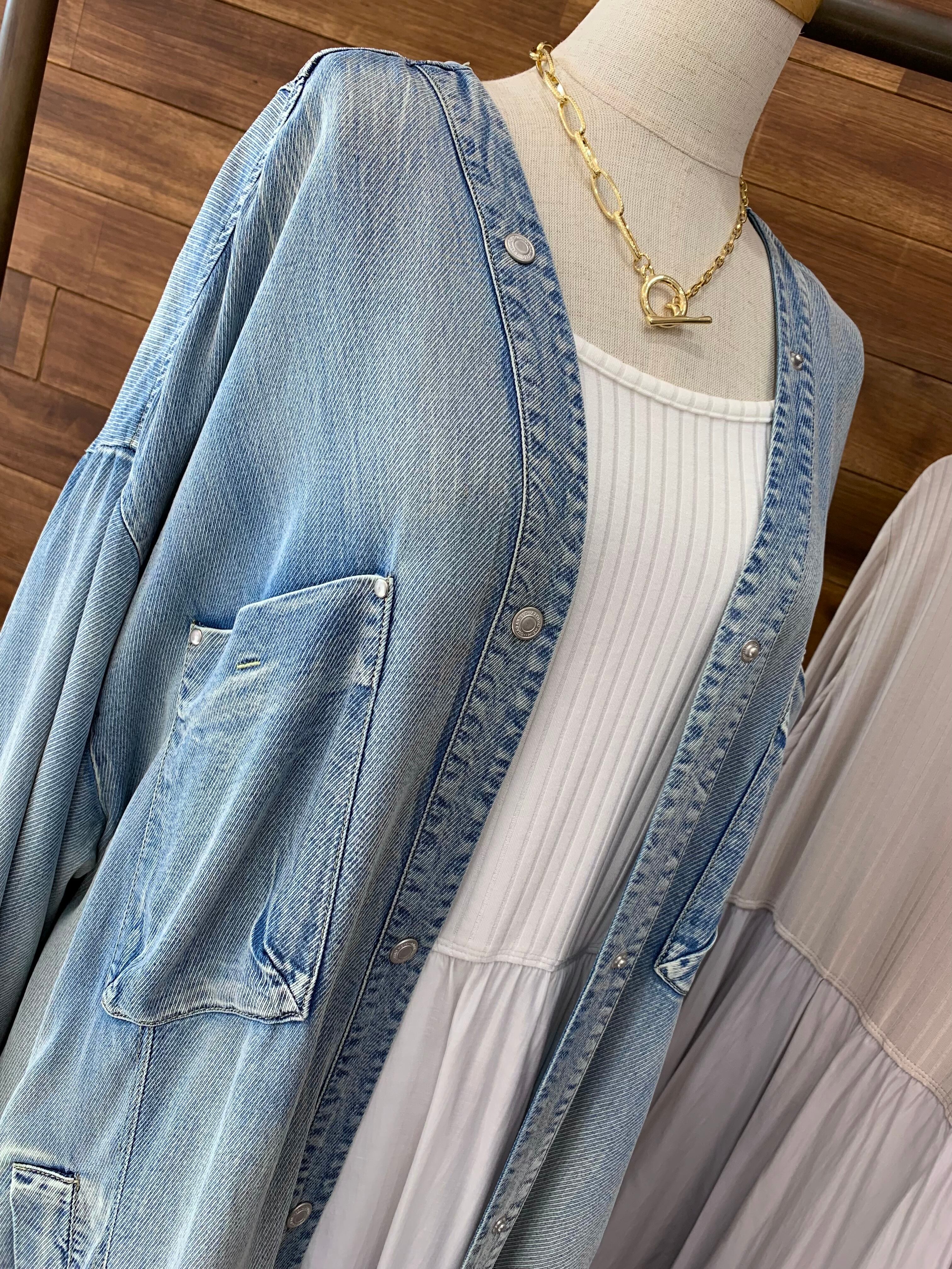 テンセルデニムの柔らかな素材で、着心地抜群のロングシャツ♫