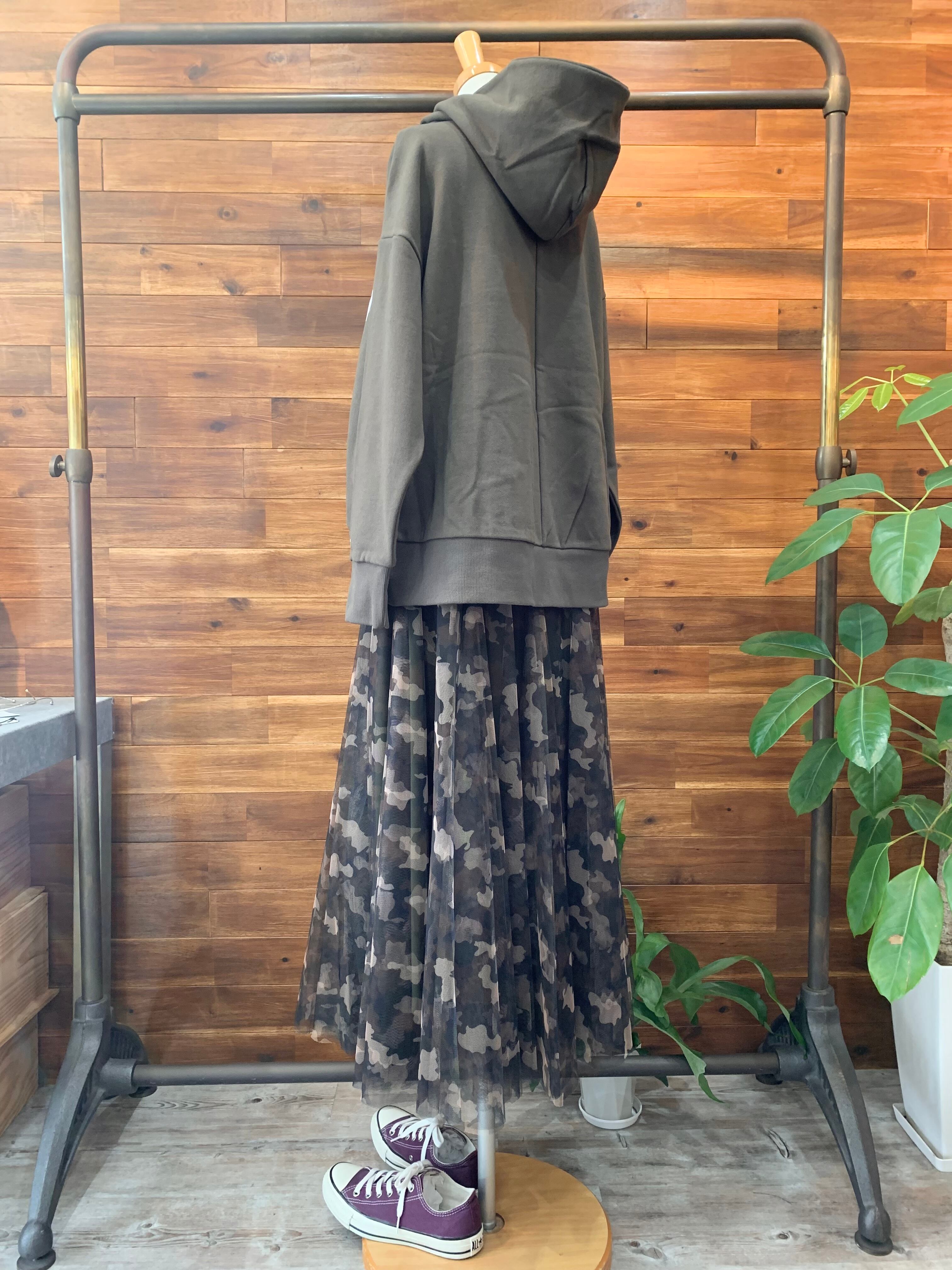 程良いレングスとストンとした裾のデザインで、パンツ・スカートどちらにも相性が良く、使えるパーカーです♪