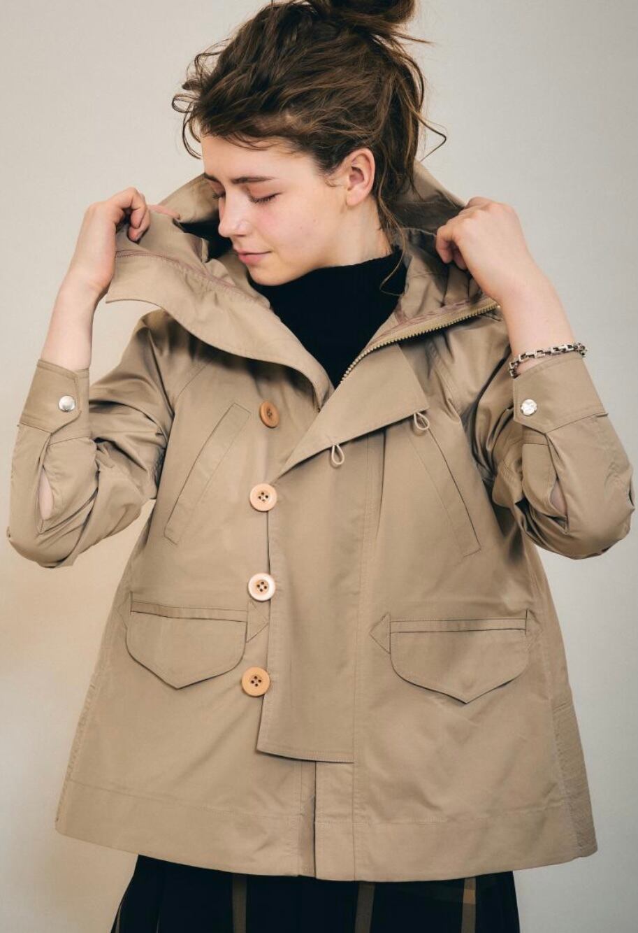 ハリ感のある素材を使用しフードも立体的に決まります。