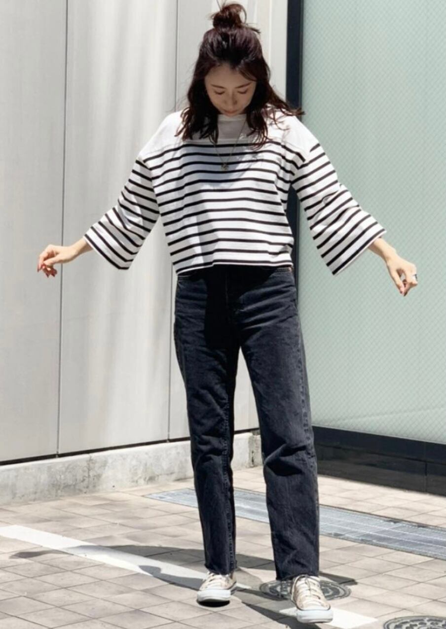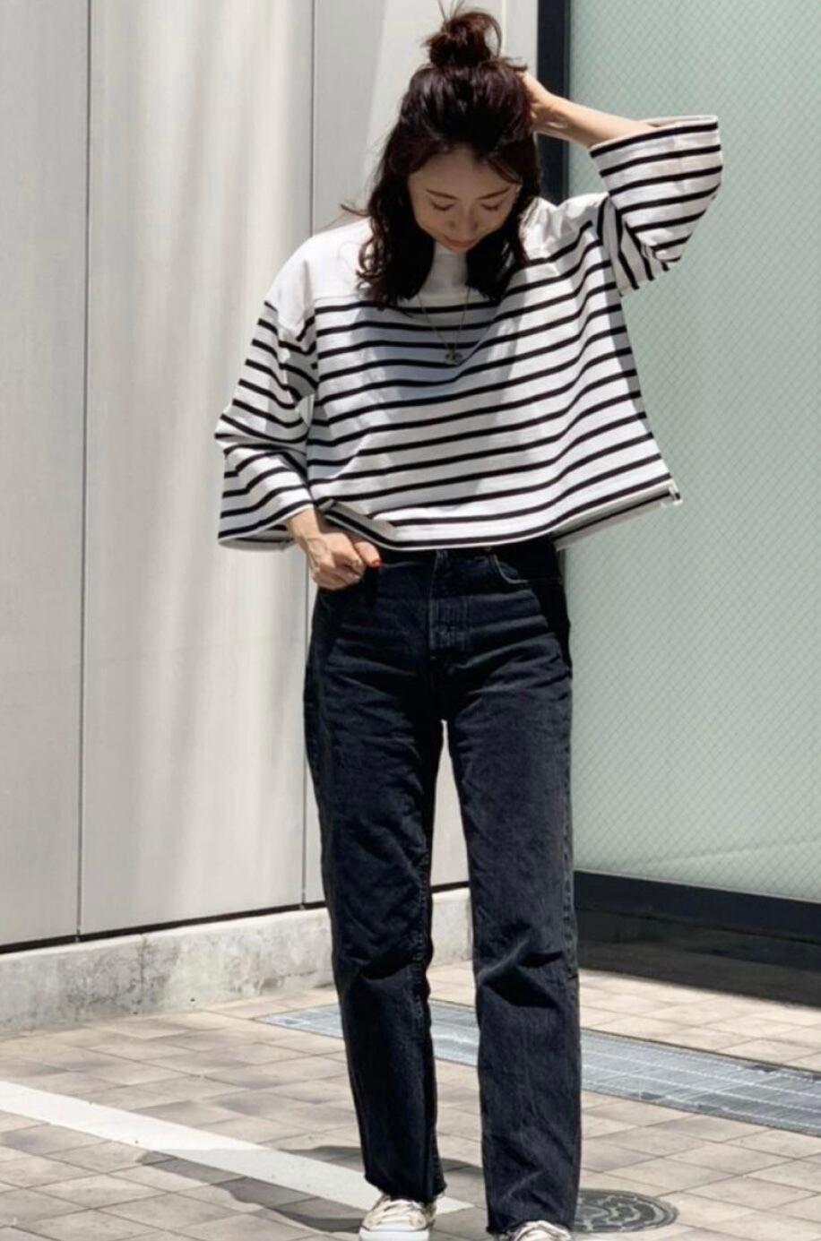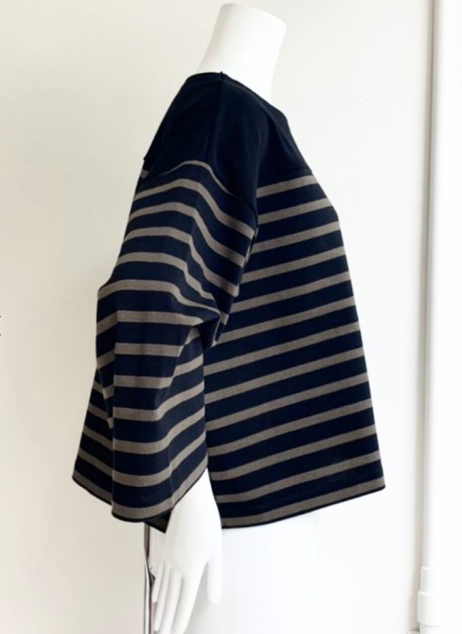 大人カジュアル定番の着回し力抜群☆ボーダーショート丈カットソーです♪