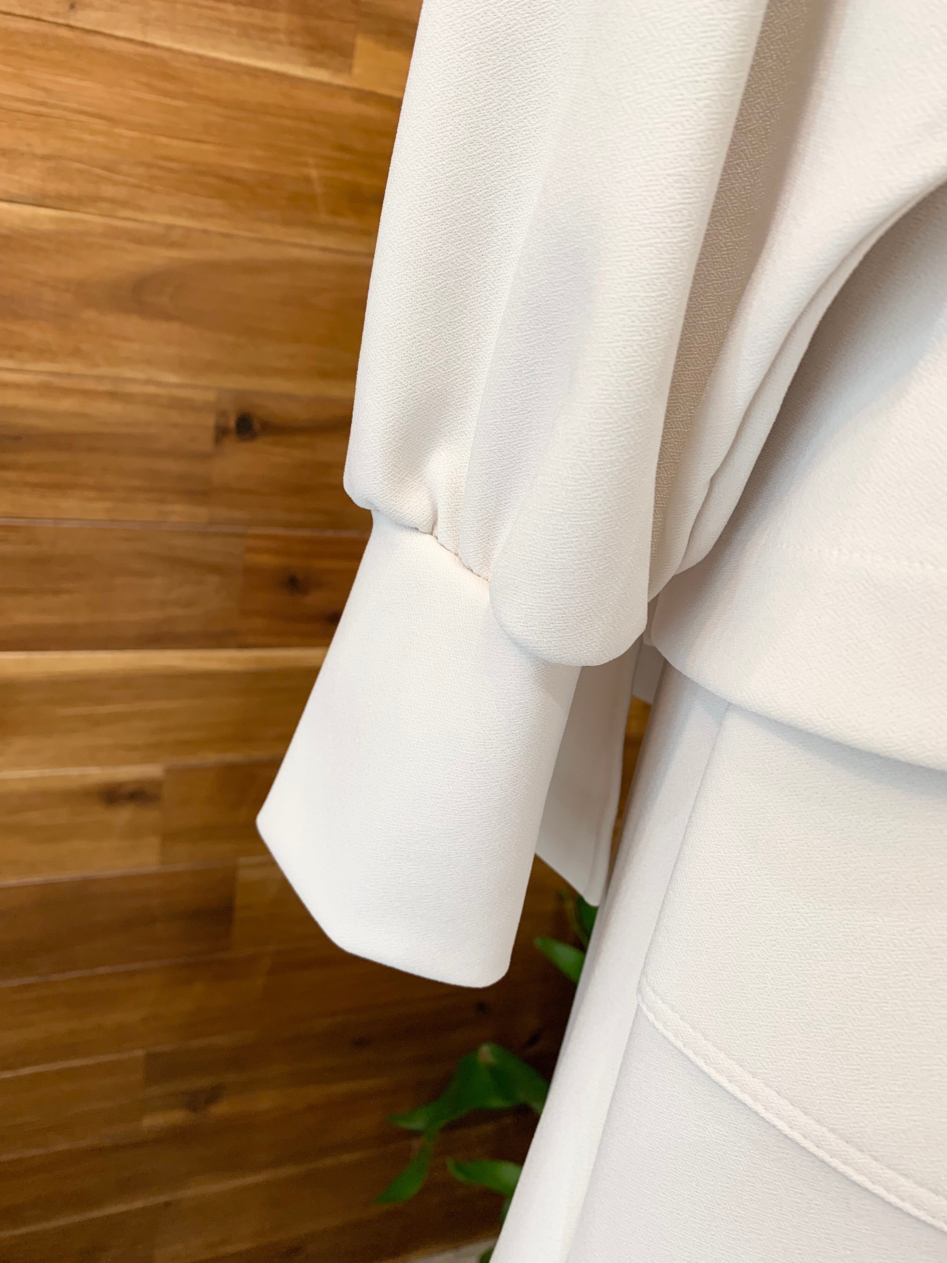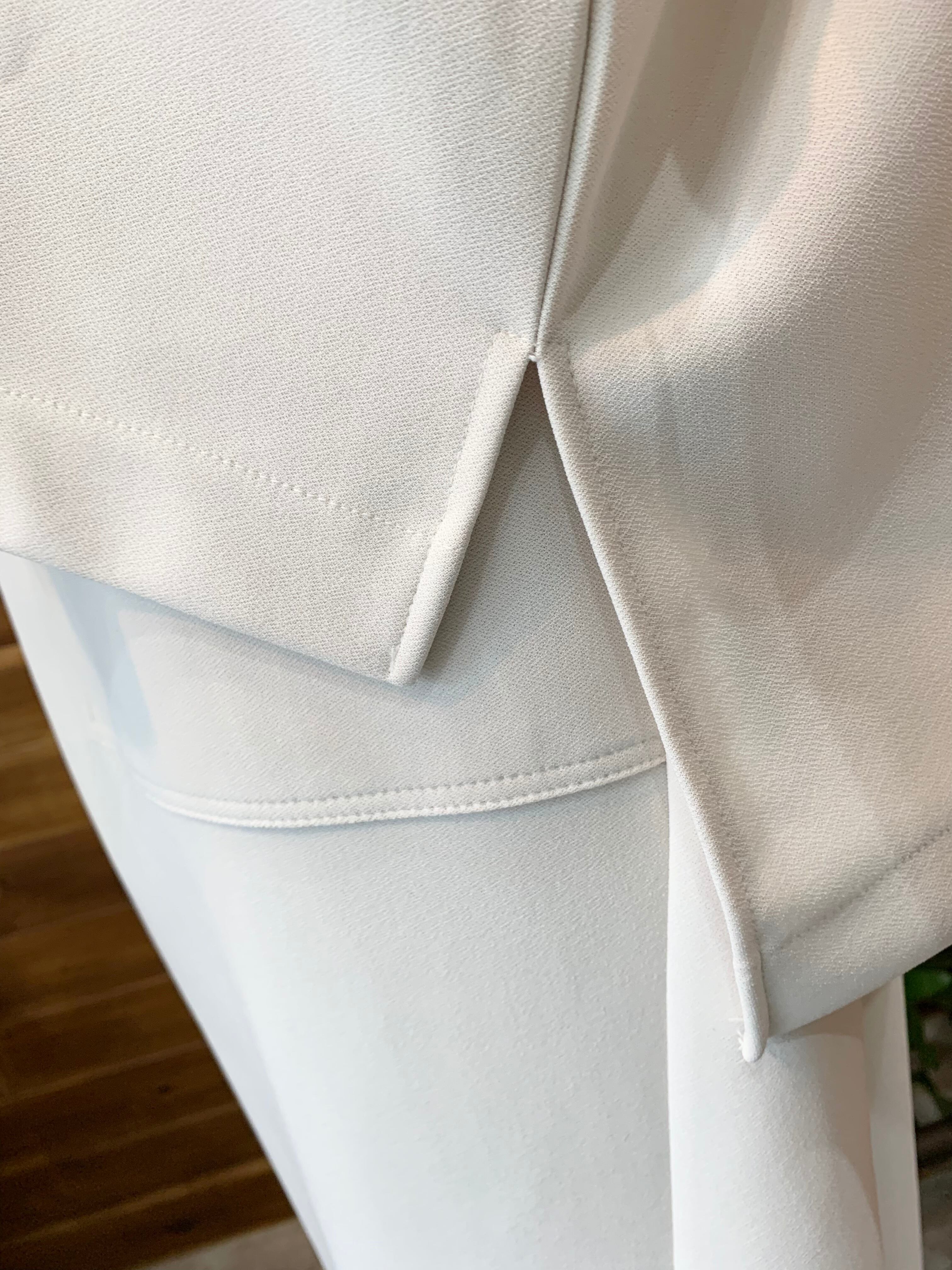 セットアップ可能なスカートに合わせるときちっと感が出て、セレモニースタイルにも対応可♡