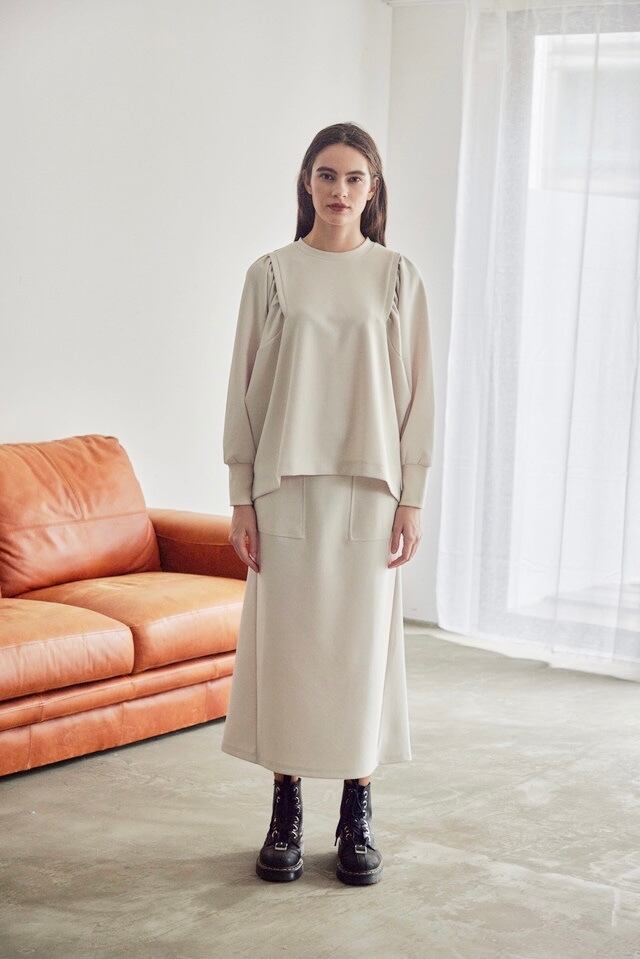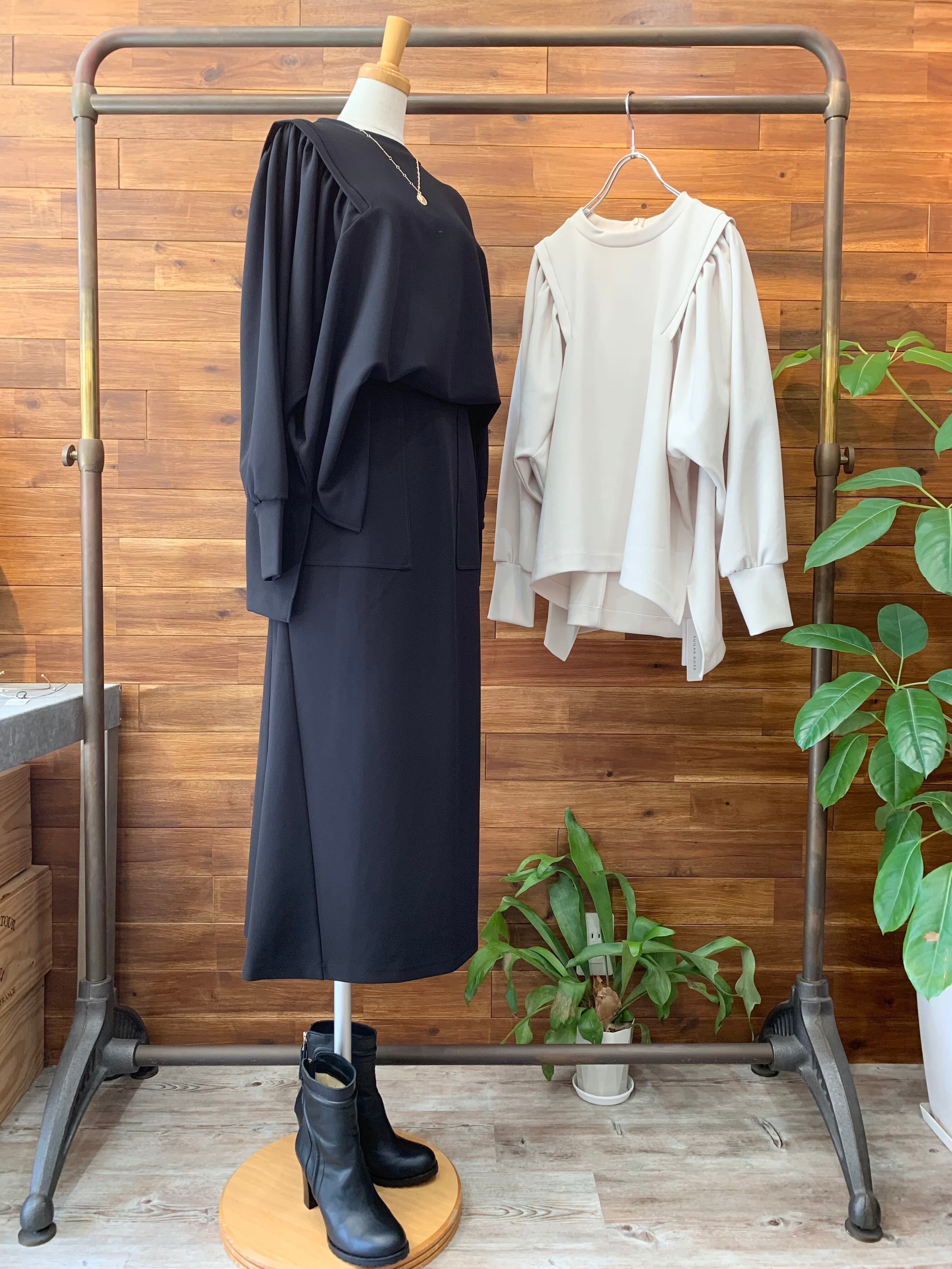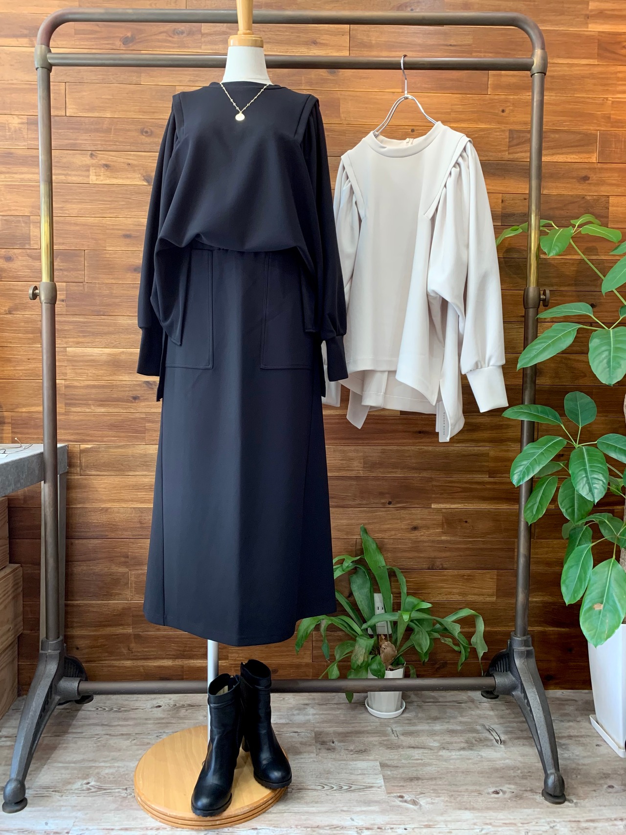 程良い丈感と、Aラインのシルエットで、すっきりと着て頂けます◎