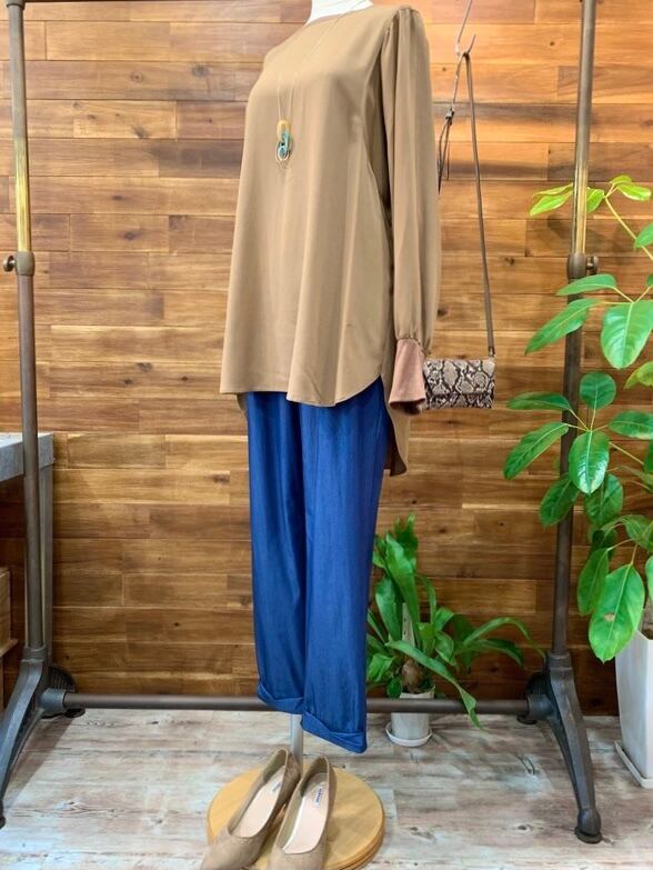 袖付けがゆったりな、少し長め丈のブラウス♡