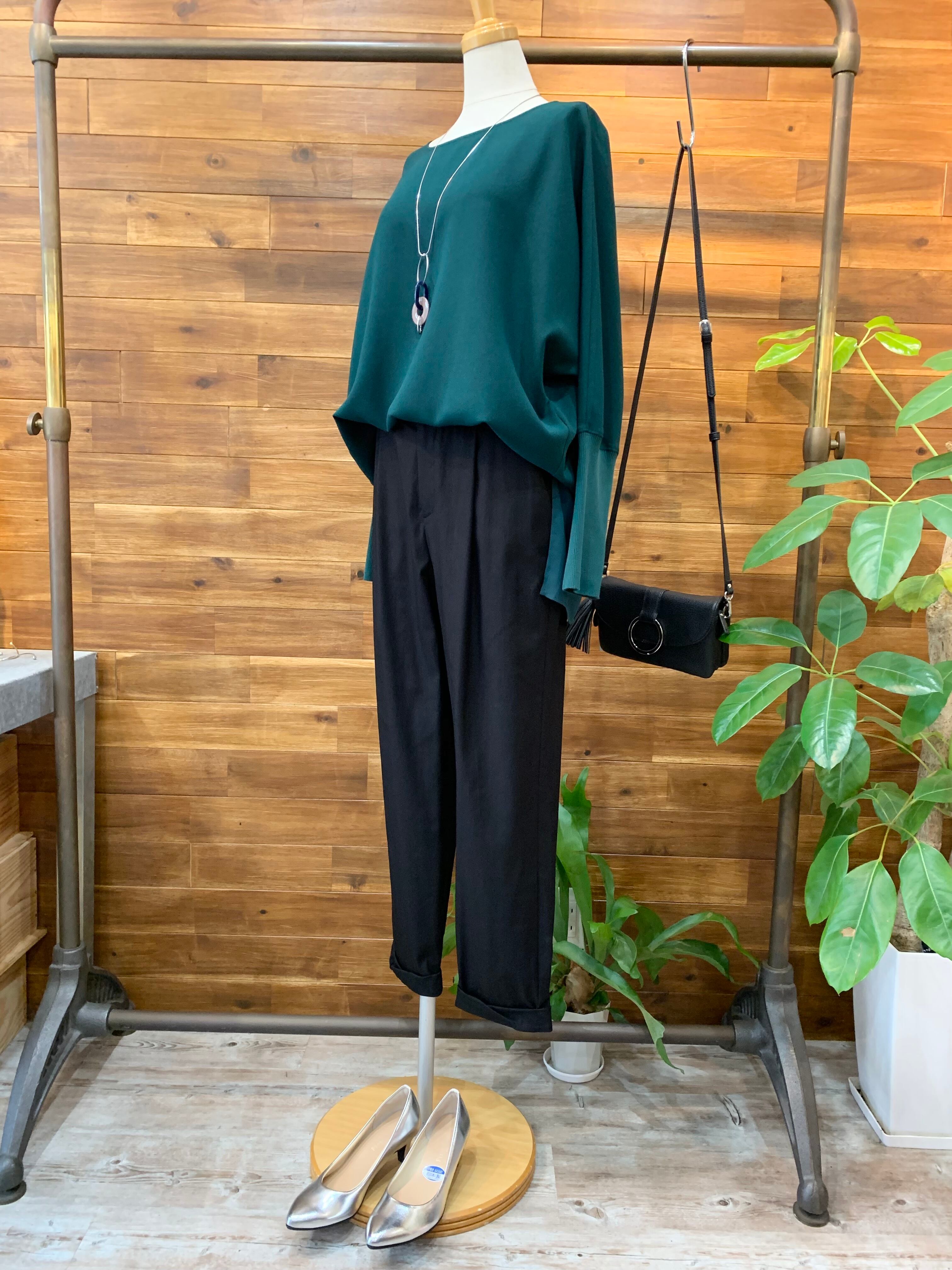 袖口に長めのリブをあしらったドルマンスリーブのブラウス♡