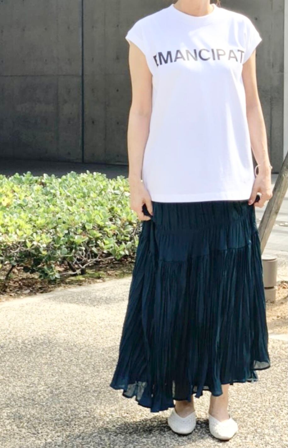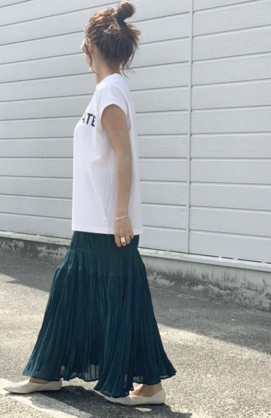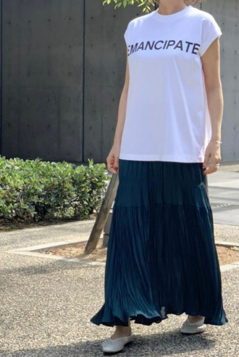 落ち感のある素材を使用しているので、生地の分量感がありながらも肌に密着せず女性らしい印象を与えてくれます◎