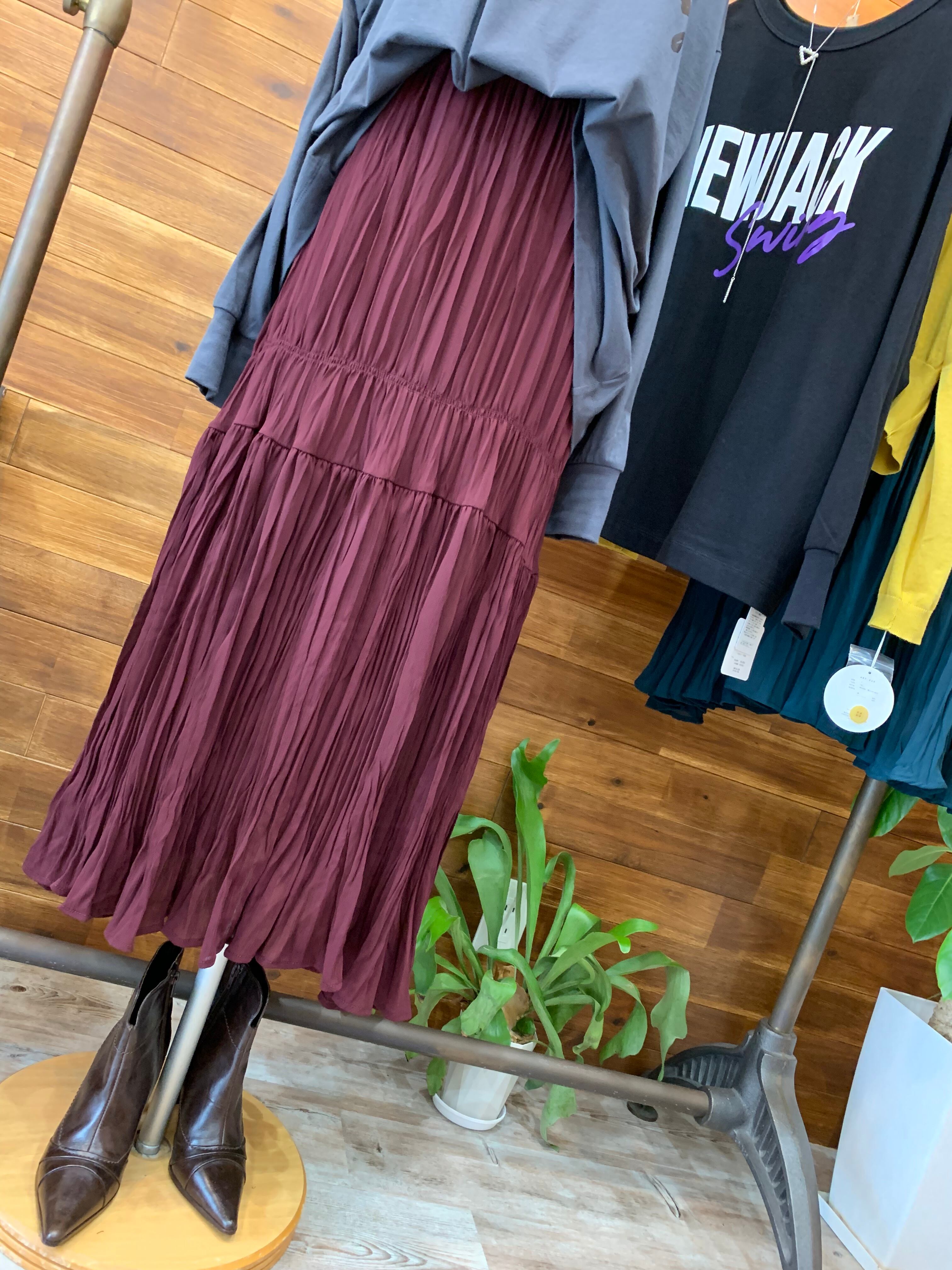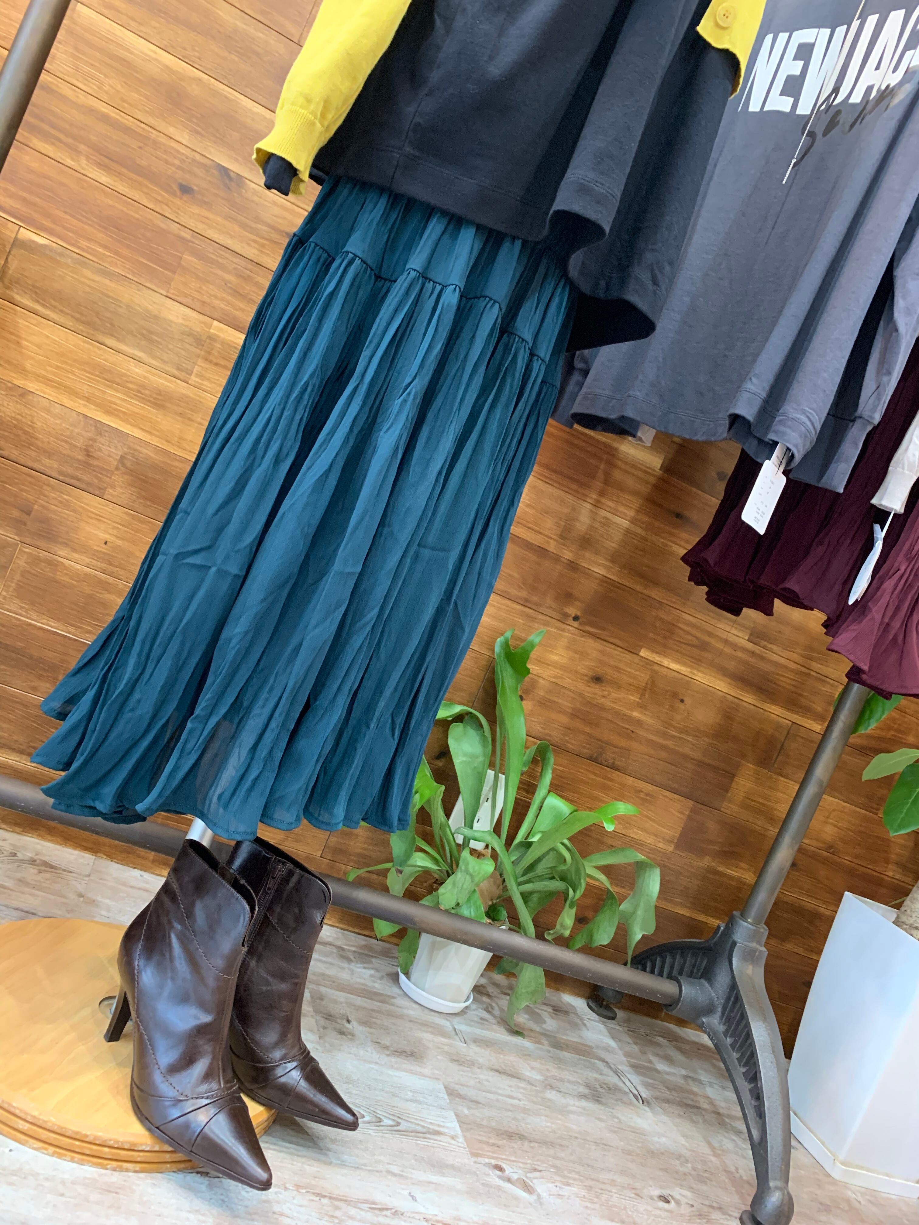 エフォートレスな大人の魅力、透け感のある楊柳素材を使用したシフォンスカート♪