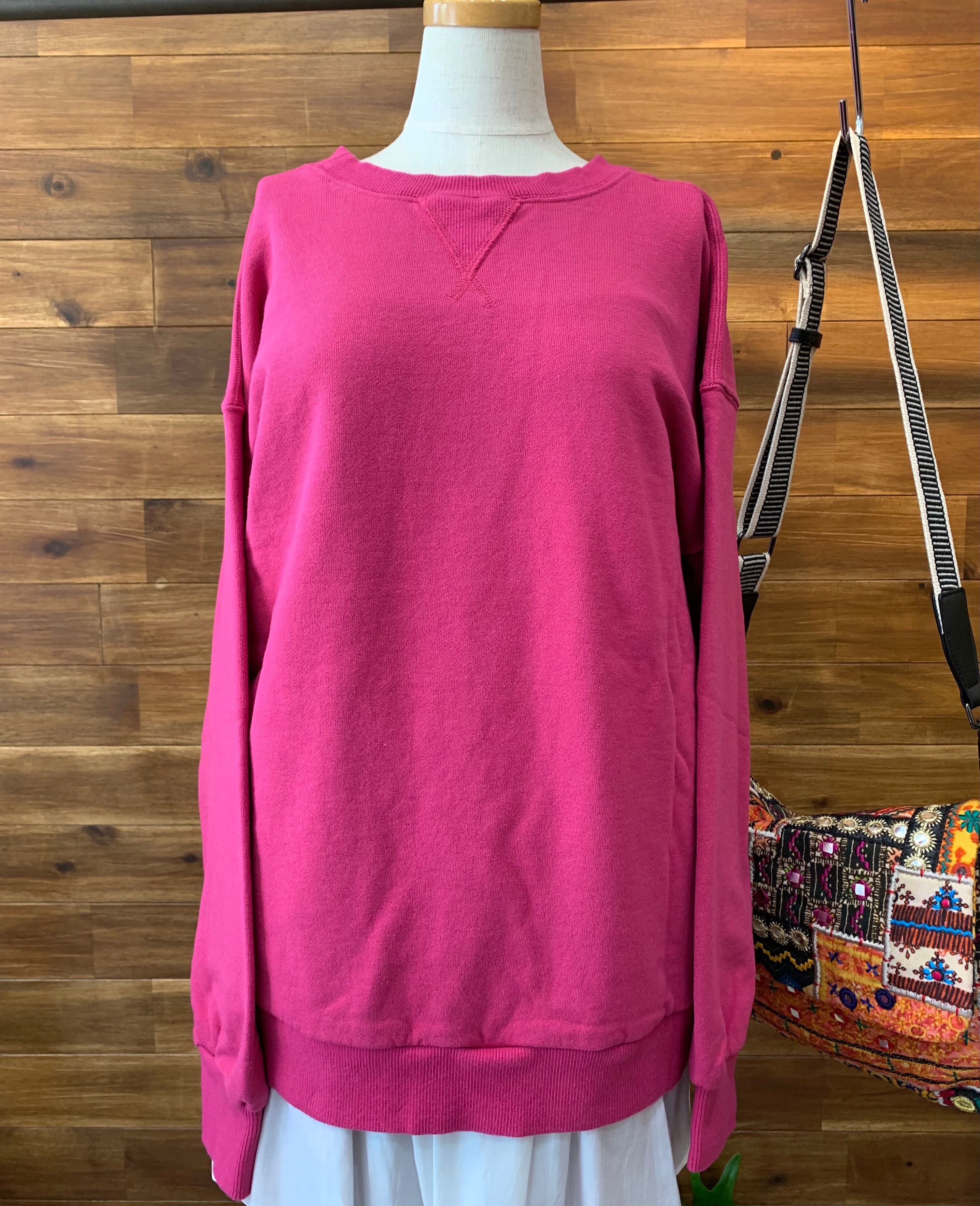 前後着用できるので、ロゴでカジュアルに、また無地でシンプルなスウェットとしても着用できる、着回し万能トップスです。
