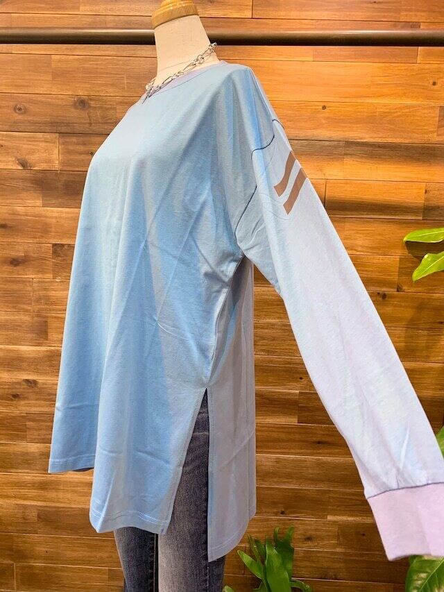 両袖にもプリントが入ってますので、トレンドのベストやジャンスカのインナーにもオススメです◎
