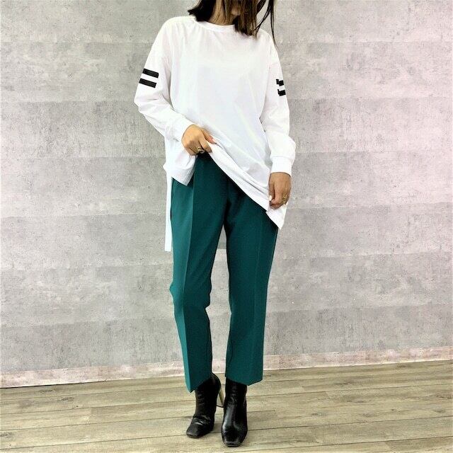 深めのサイドスリットが入っているので、前裾をインして着用したり、ニットなどの裾から長めの裾を出してみたりと、いろんなスタイルが楽しめます♪