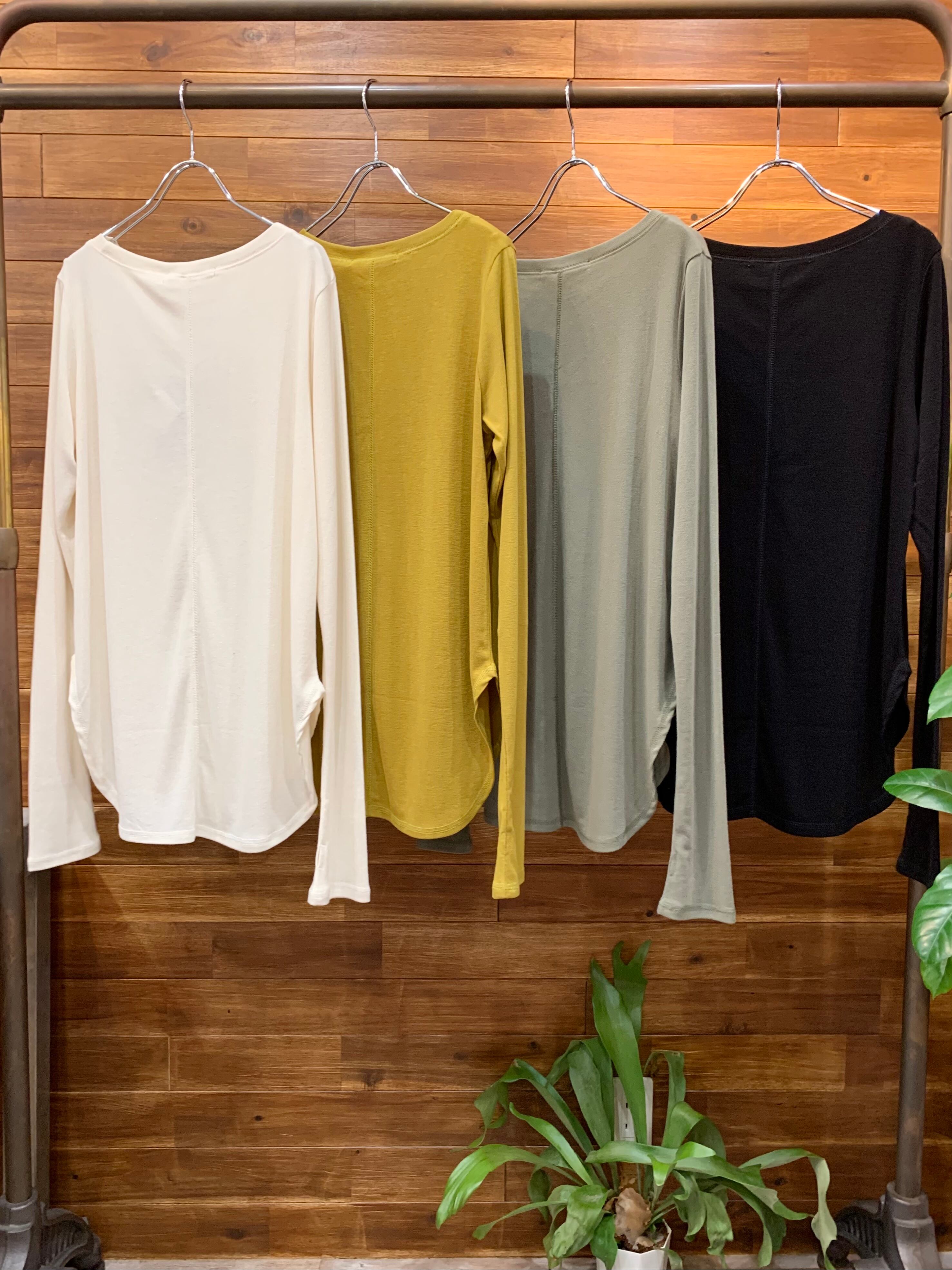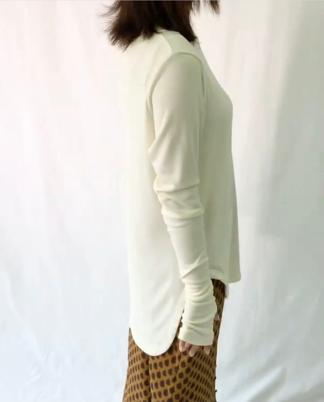 スッキリしたシルエットなので、ベストとのレイヤードやジャンスカのインナー合わせにもオススメです♪