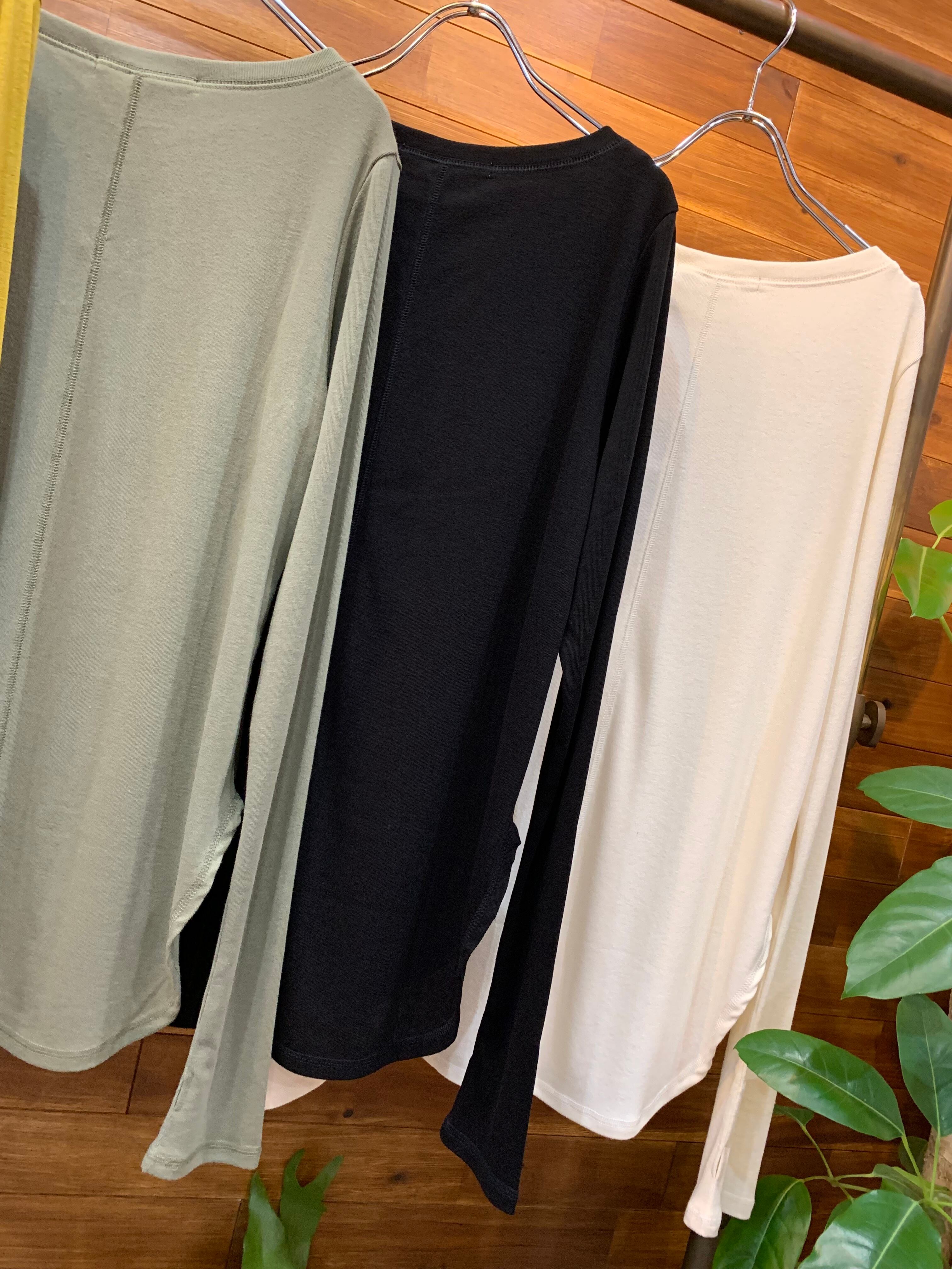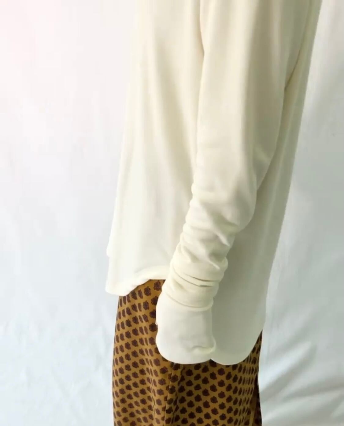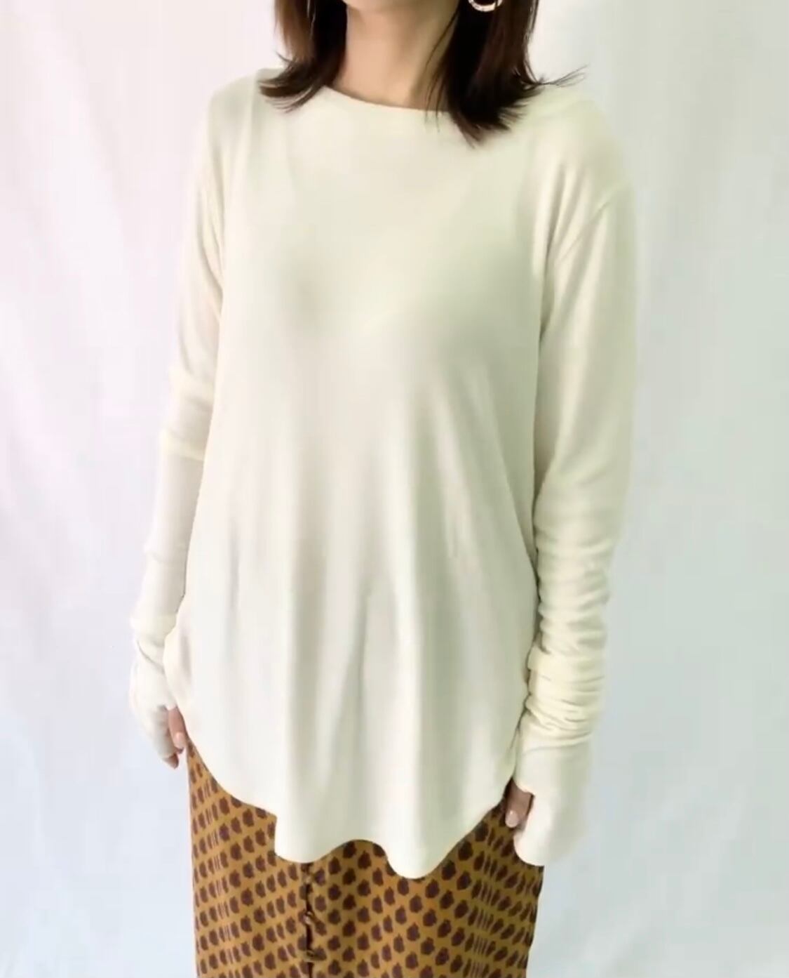 クシュクシュっとした長めの袖丈が、トレンド感たっぷりのカットソー♫