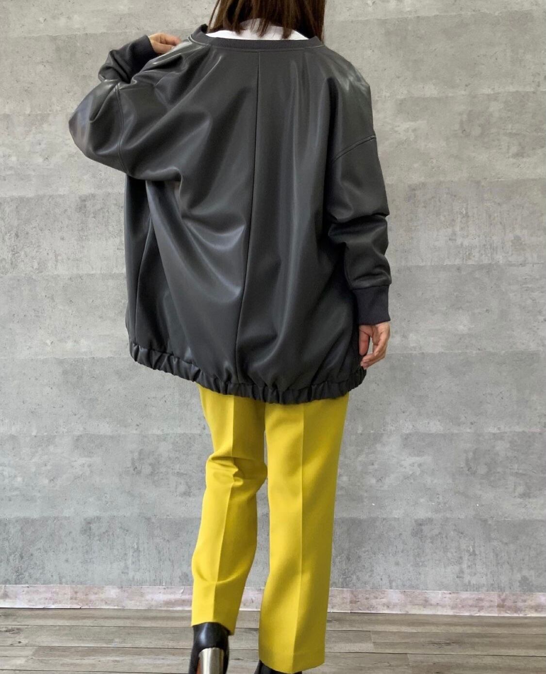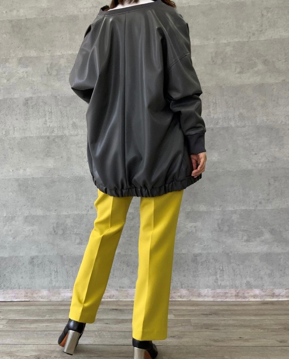 リアルレザーのような、ややマットな素材感で、とっても柔らかく着心地抜群、大人見えする一枚です。