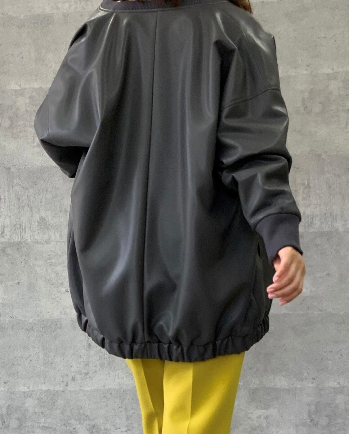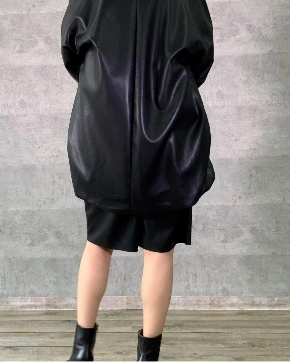 エコレザーがトレンドの今シーズンに、少しメンズライクにゆったり羽織れるシルエットがお勧めポイント。